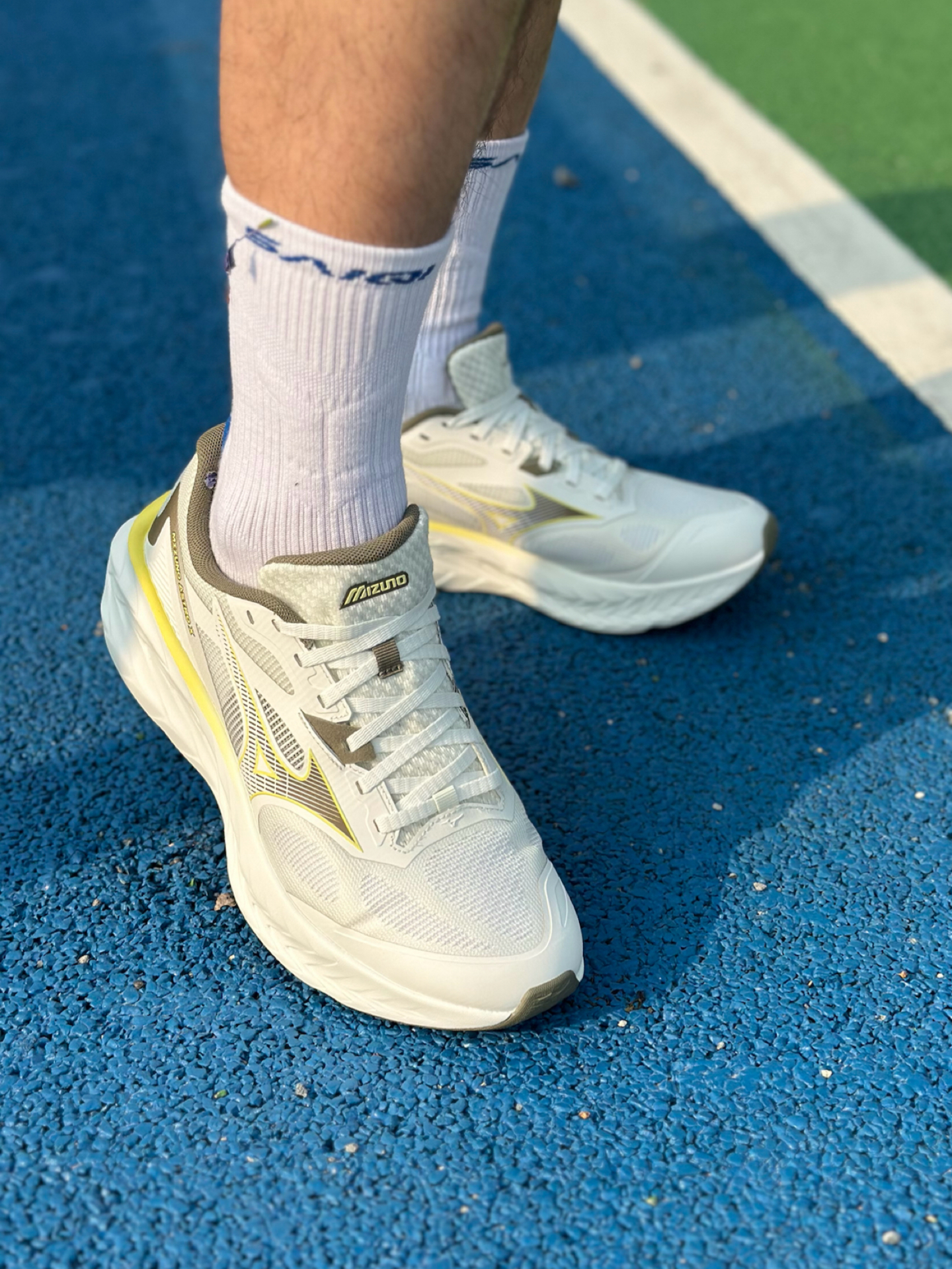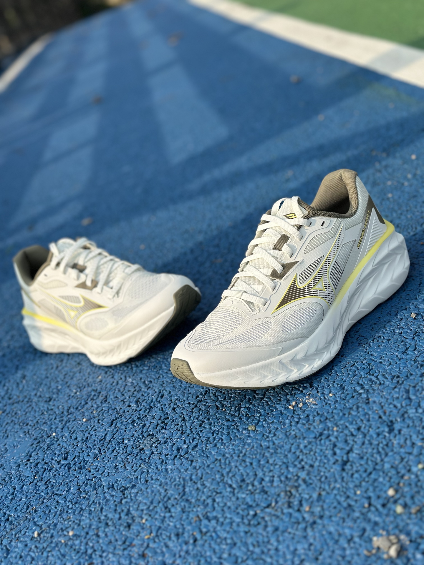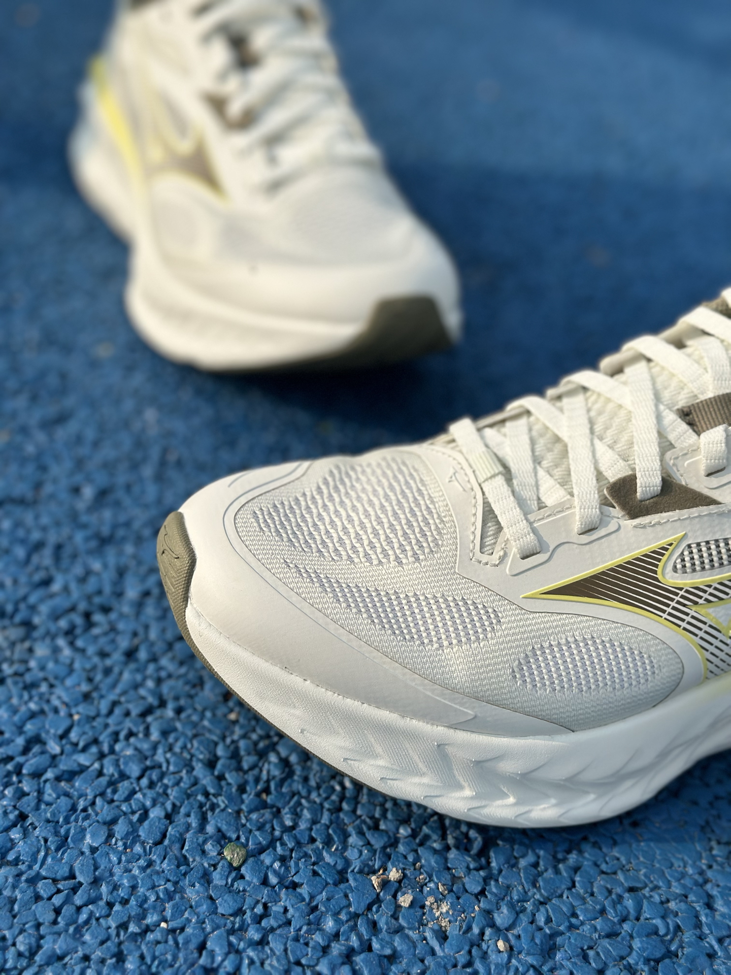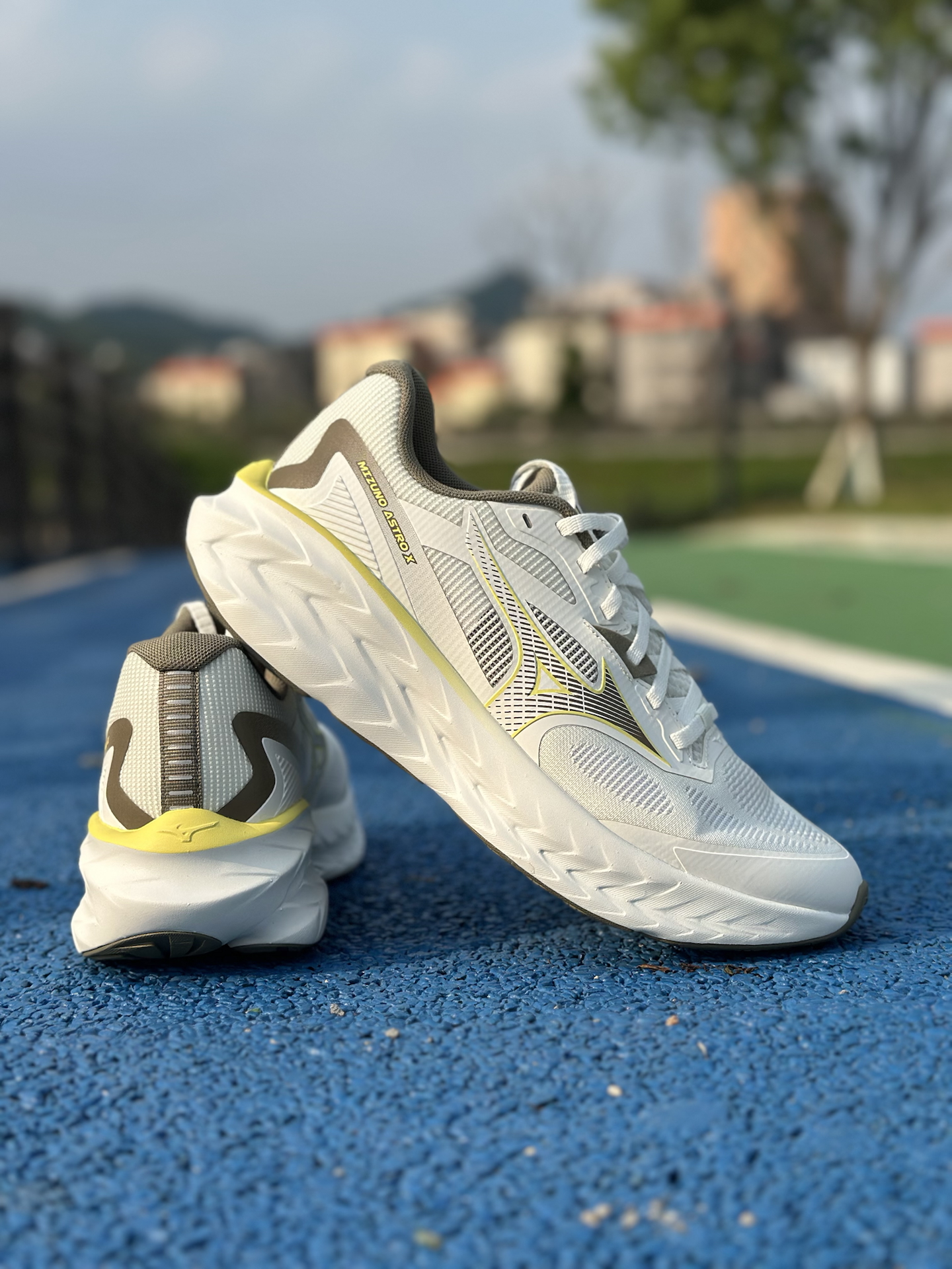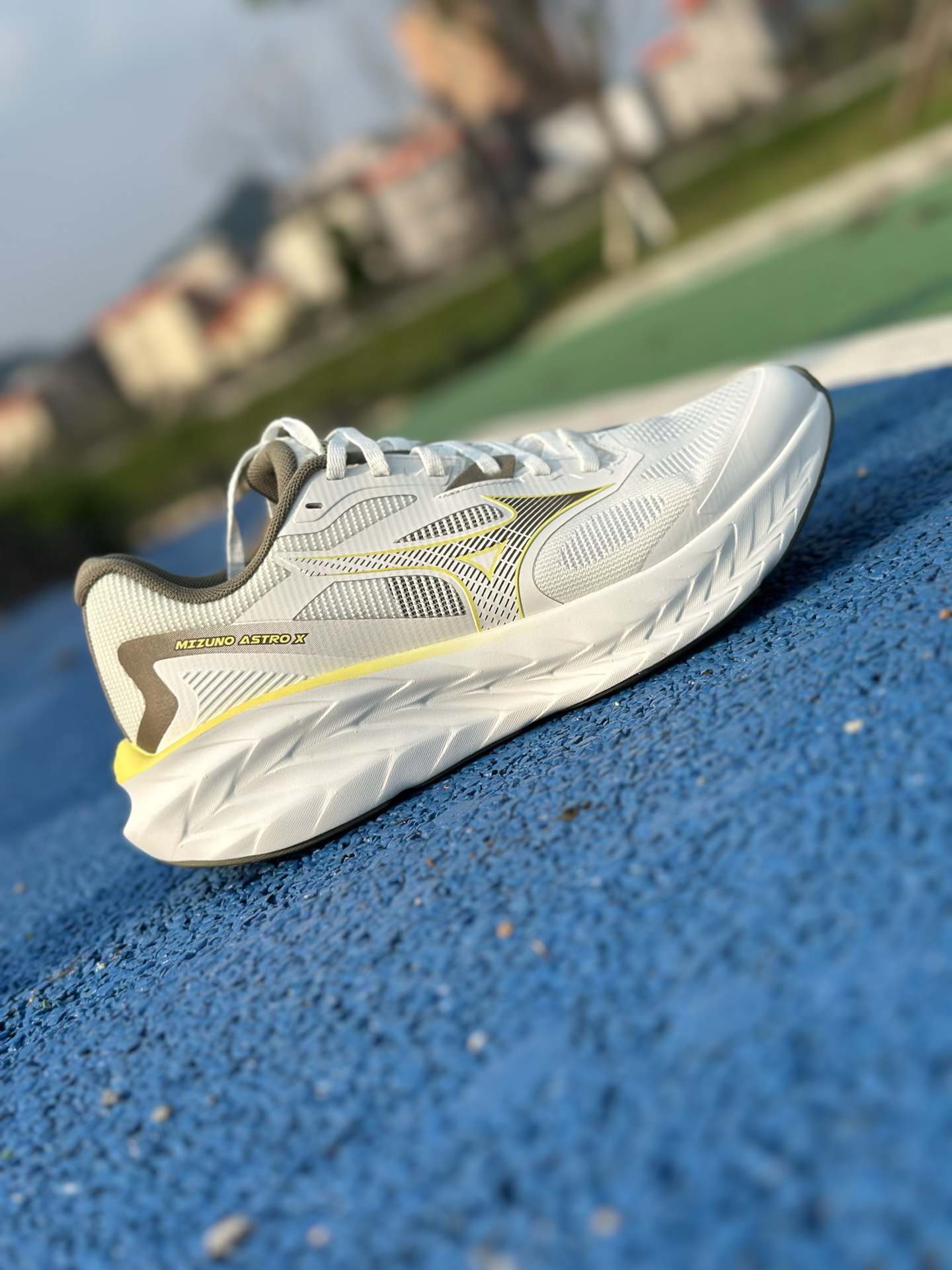 美津浓这双ASTRO X真的是入门慢跑鞋里的宝藏款!整体是干净的白灰配色,加一点荧光黄点缀,日常穿也不突兀,完全不挑穿搭。 ‼️最舒服的就是它的脚感,4cm厚的EVA混PEBA超临界中底,软弹又有韧劲,落地缓震很到位,大体重跑者也能放心穿。 而且上脚体验可以很明显感受到他这个鞋型对宽脚特别友好。 后跟有TPU稳定片,橡胶大底抓地也很稳,不管是日常慢跑、体考训练,还是通勤走路都合适,性价比真的香、 ...