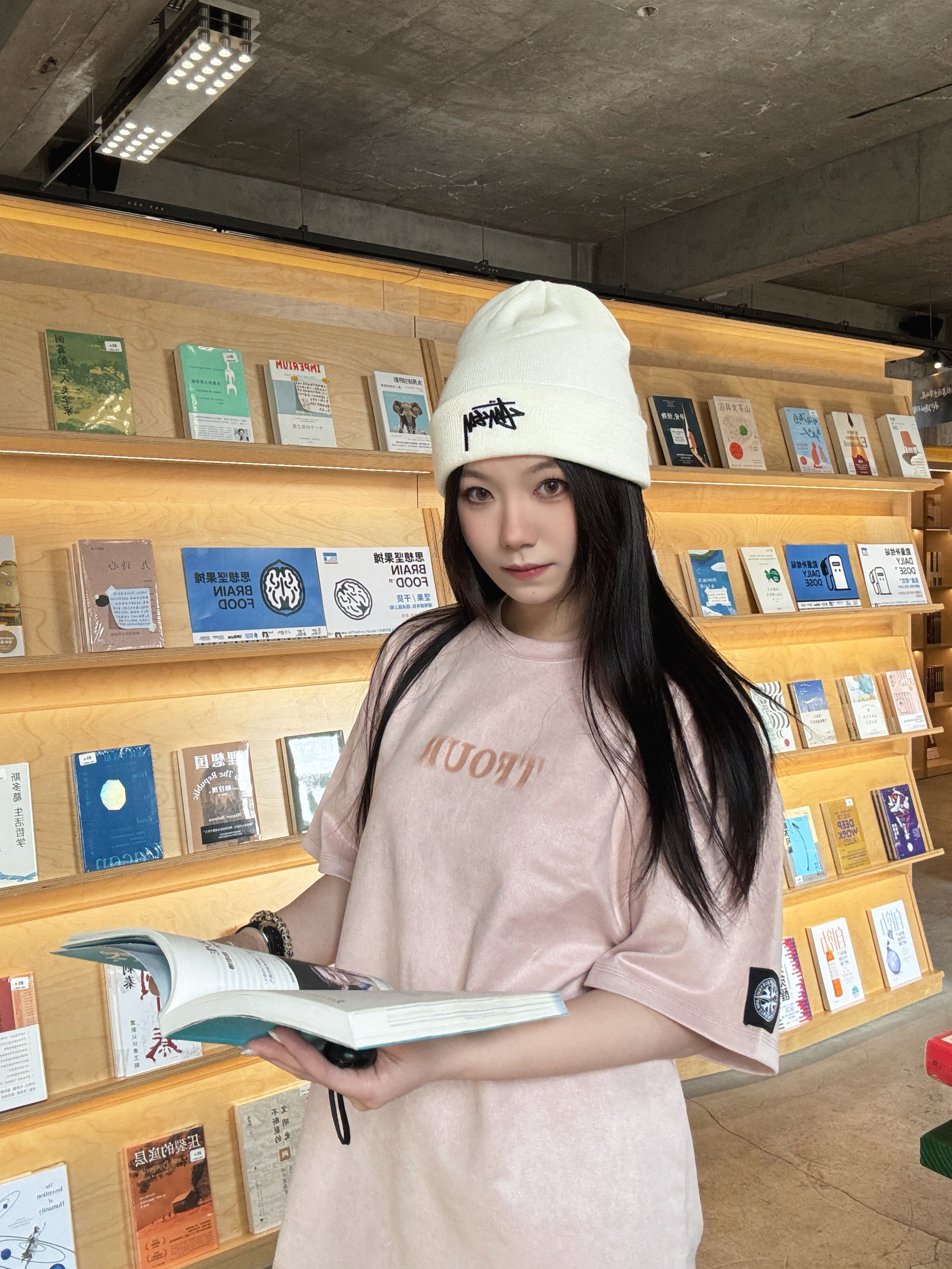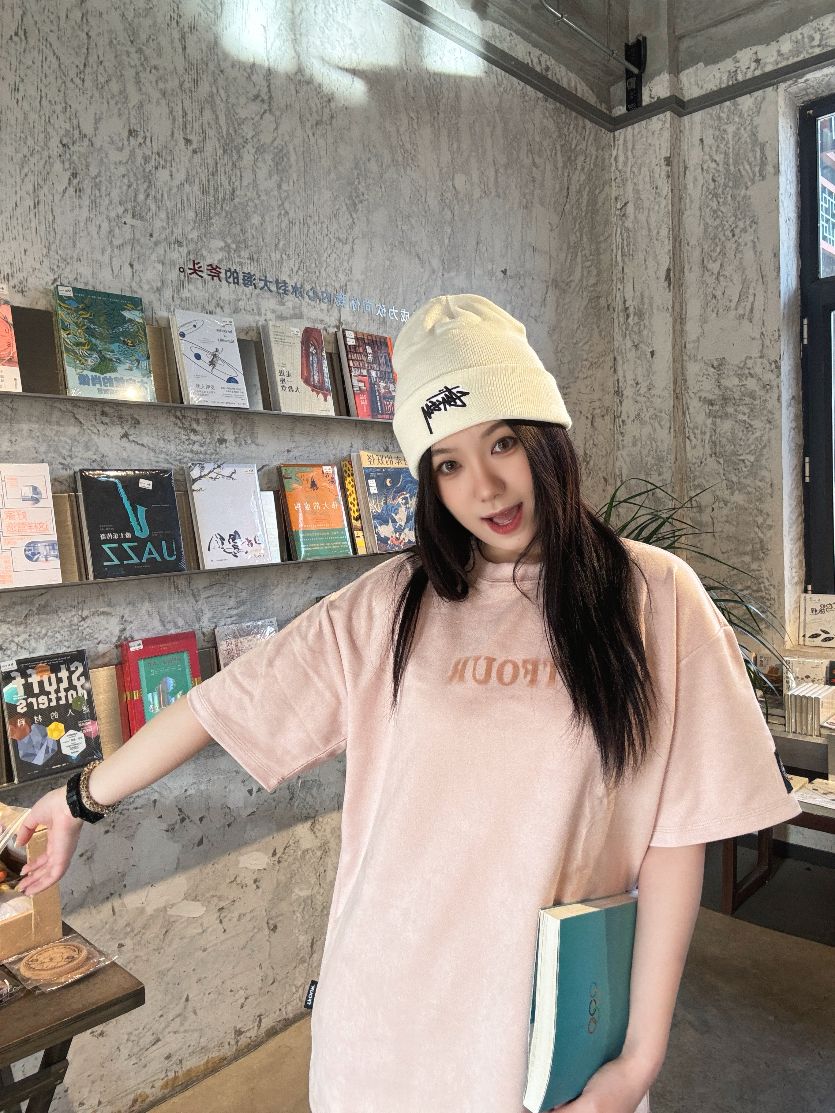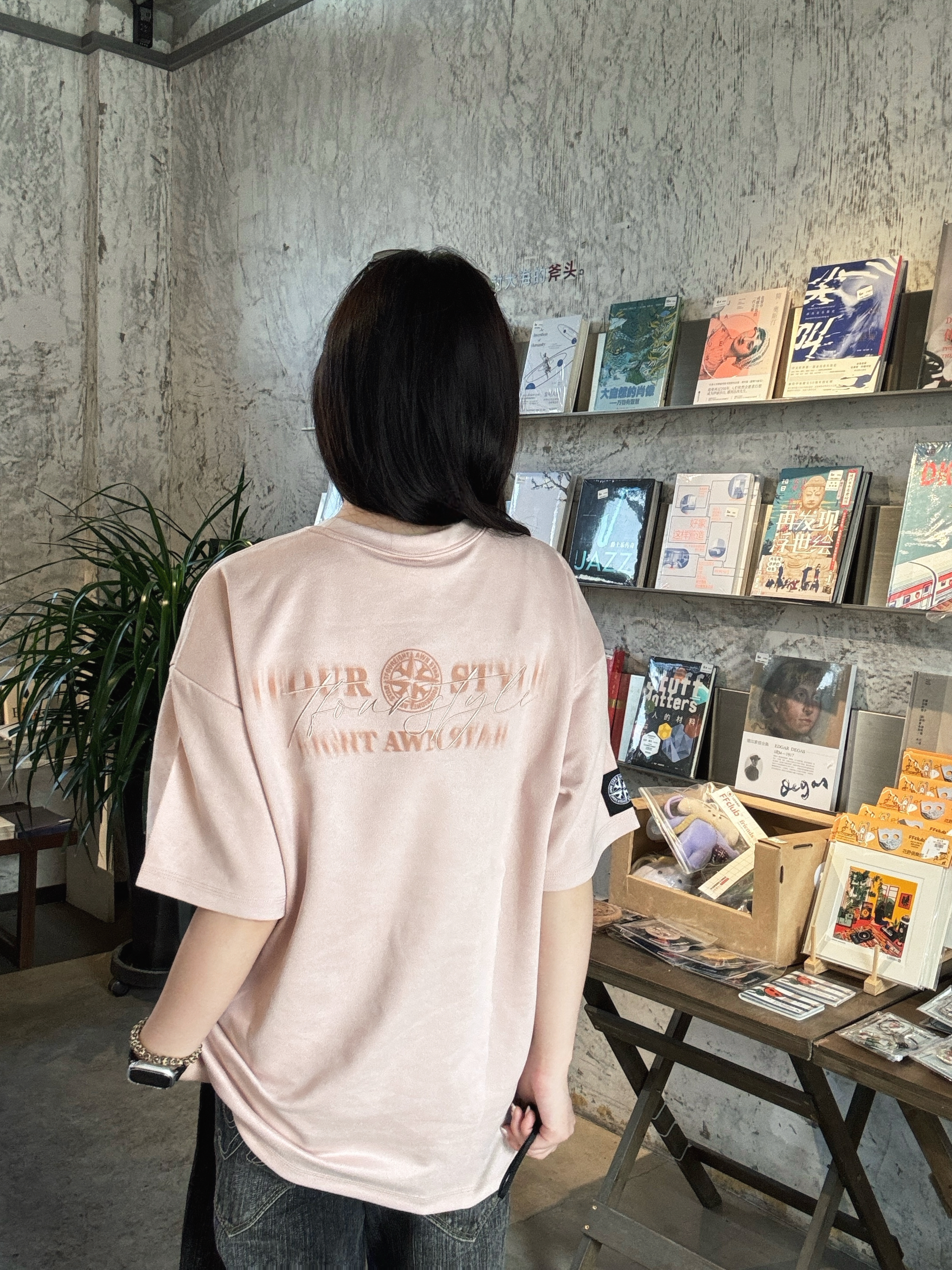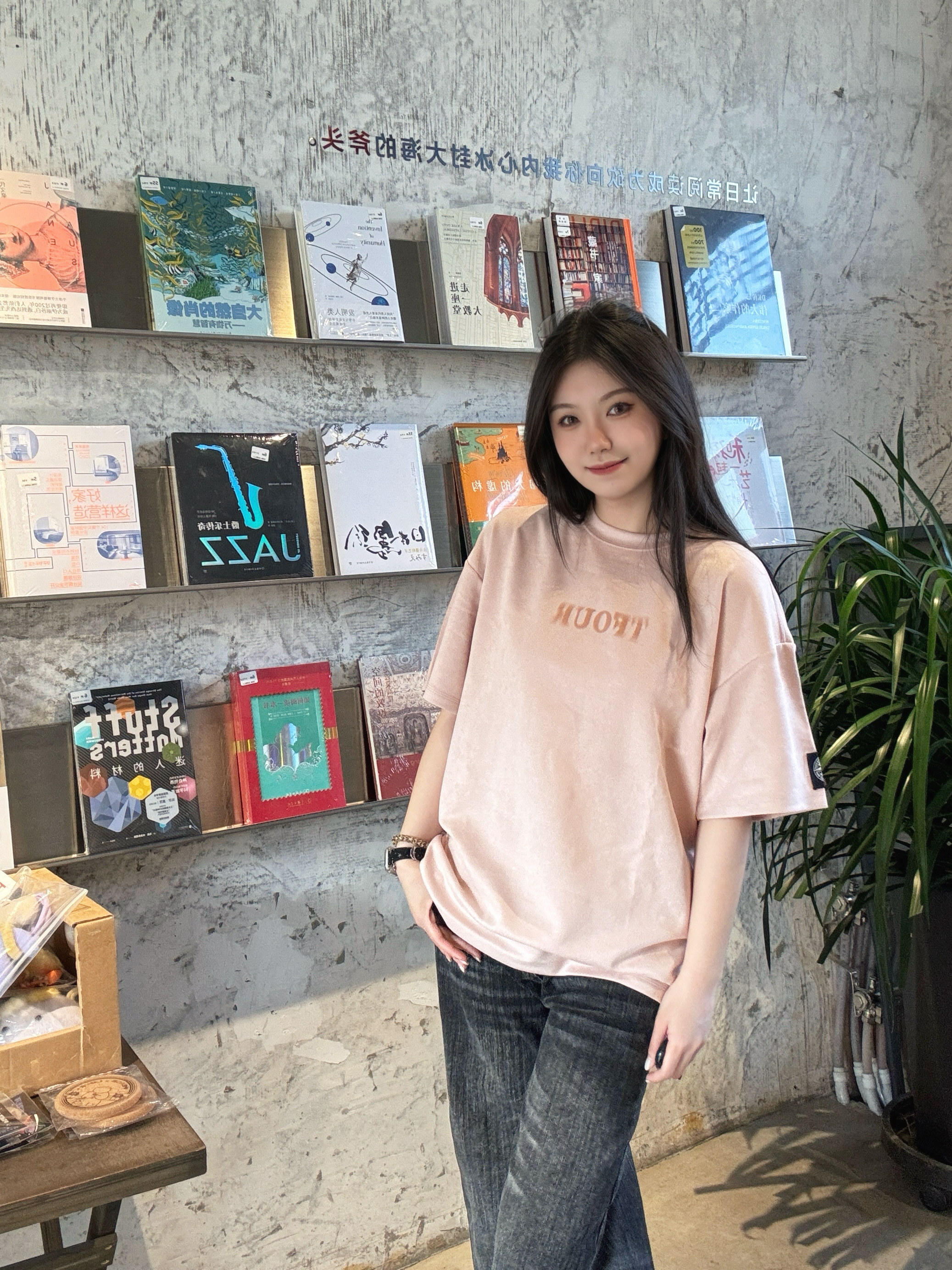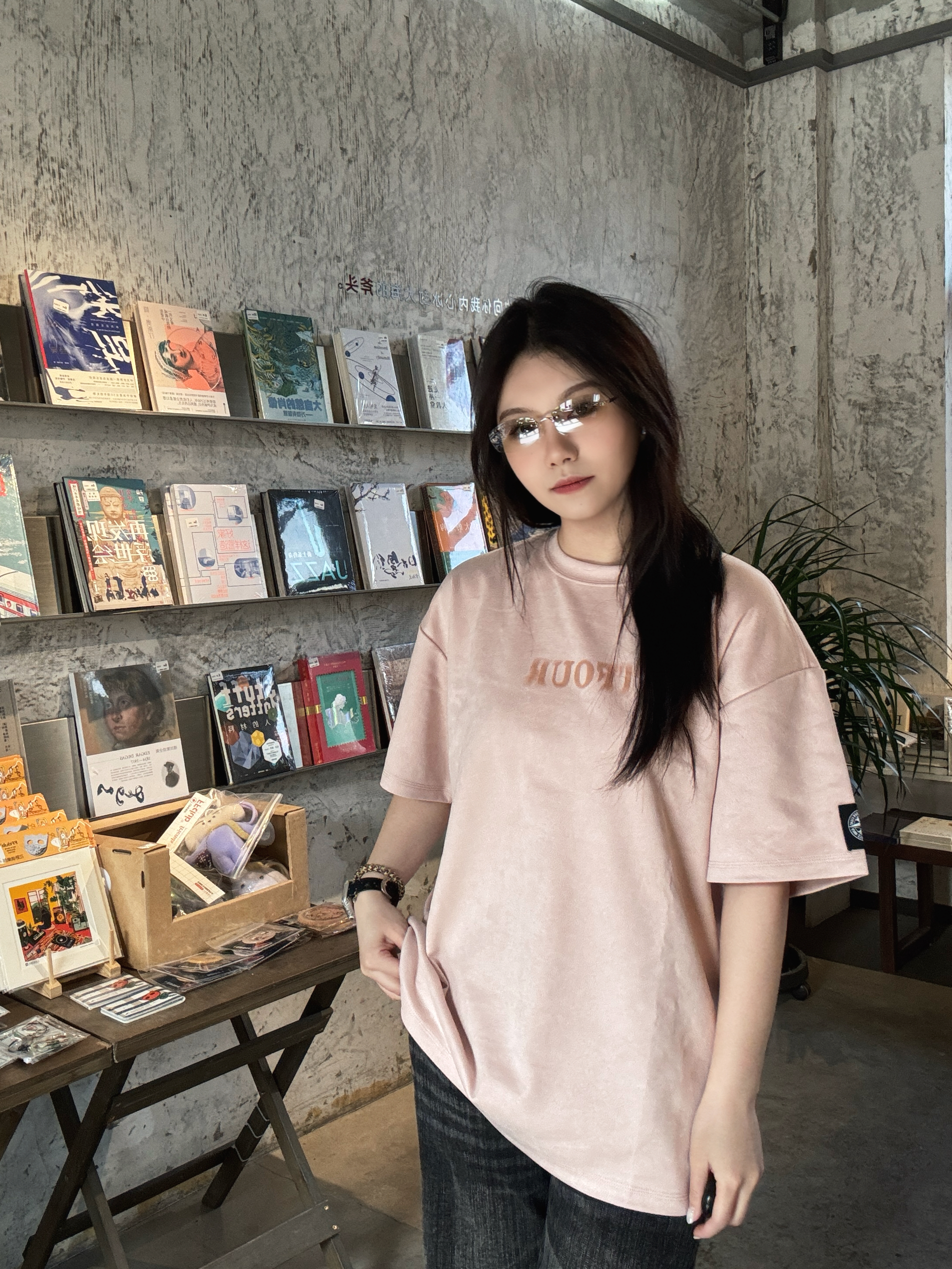 低饱和脏粉色显白😻 麂皮质感软糯亲肤 宽松版型不挑身材👯♀️ 前后字母印花+袖标设计 甜酷感拉满 随便搭牛仔裤就很出片📷