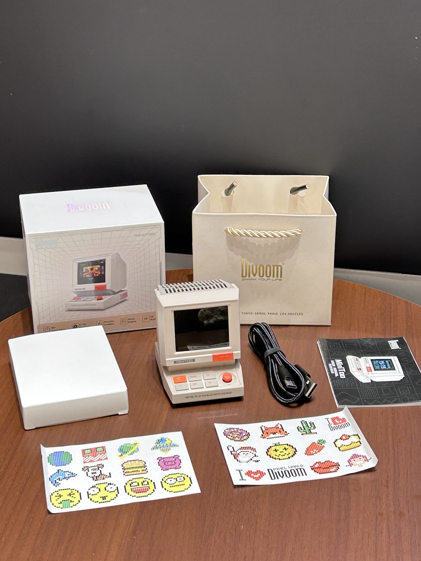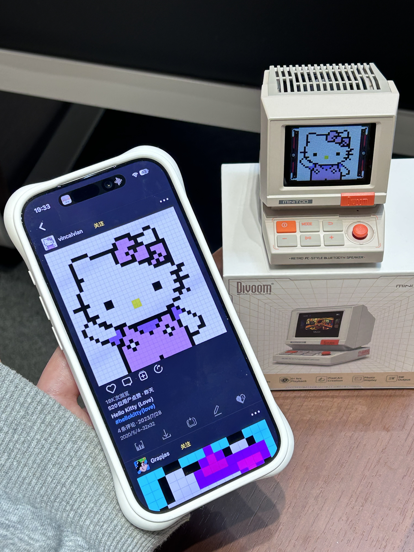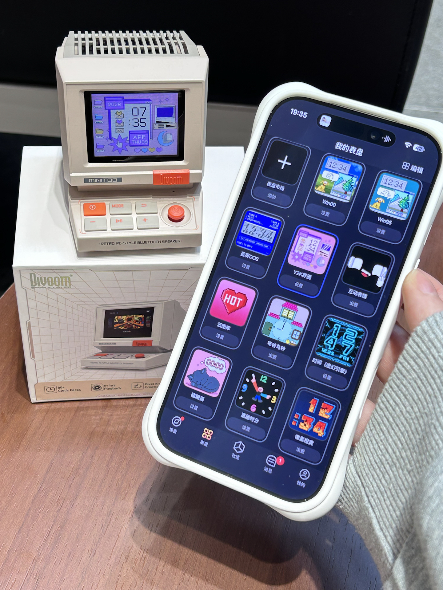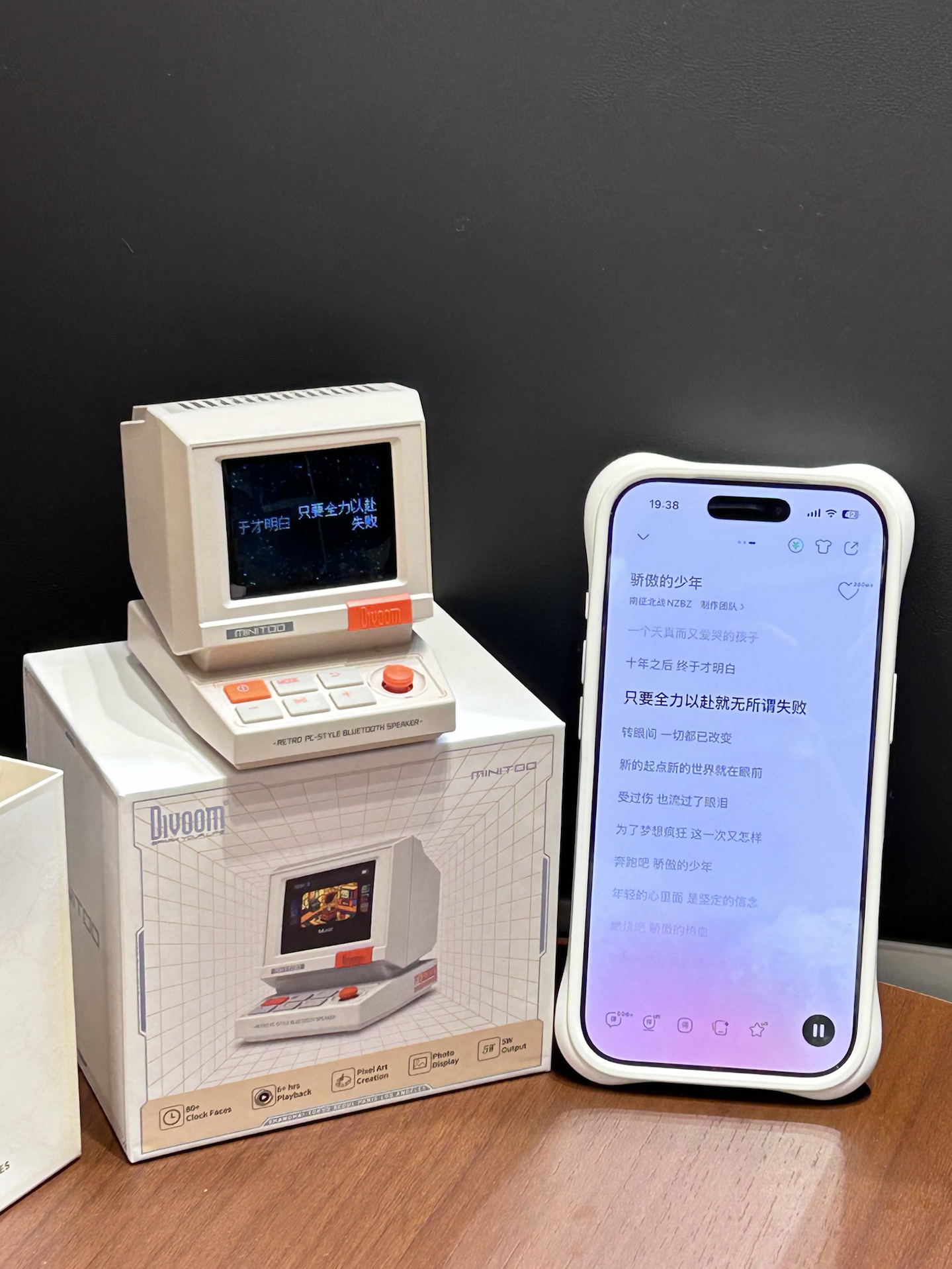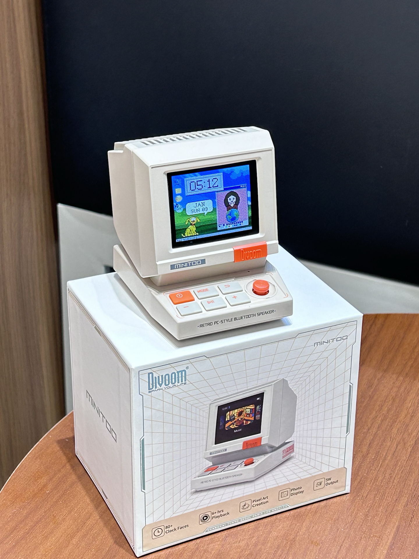 是我挖到了敲可爱的小音箱诶 复古电脑的造型我觉得有千禧年那味了 别看小小嘟 音质效果真不错呢 还可以显示歌词 自定义桌面等功能 平时摆在桌面还可以当个小时钟 礼盒包装我觉得拿来送朋友也好有仪式感