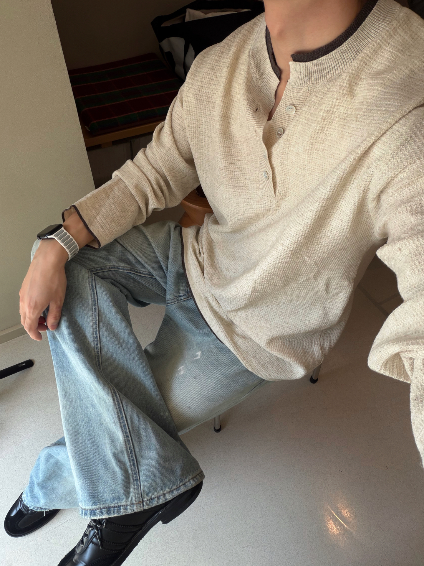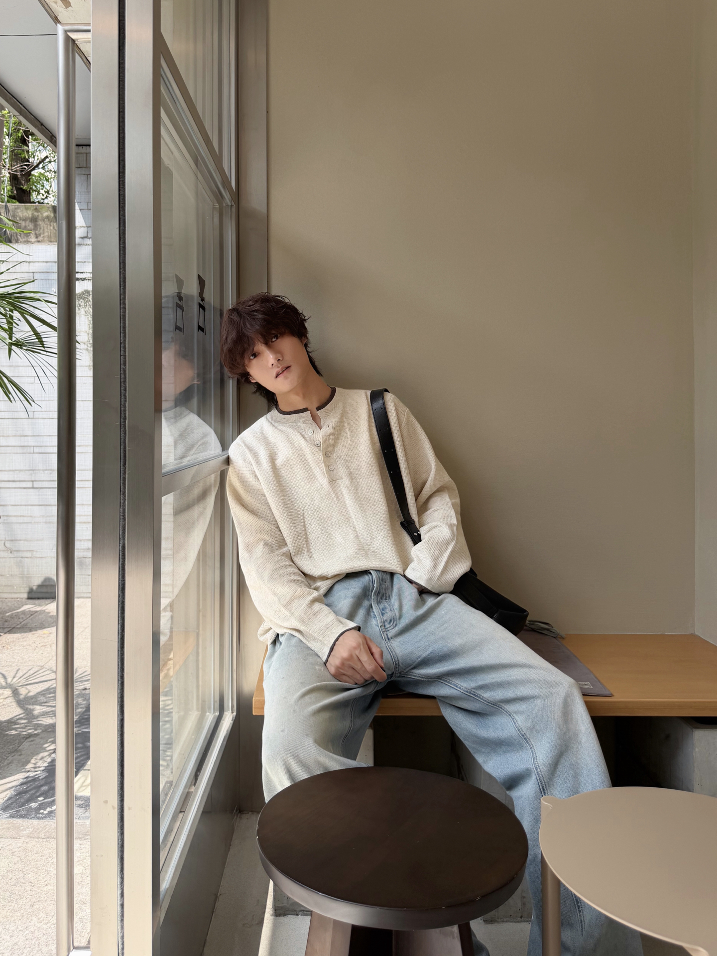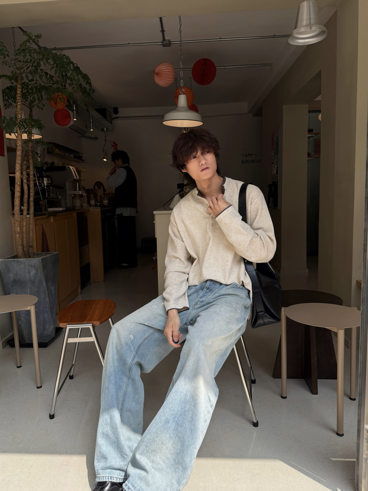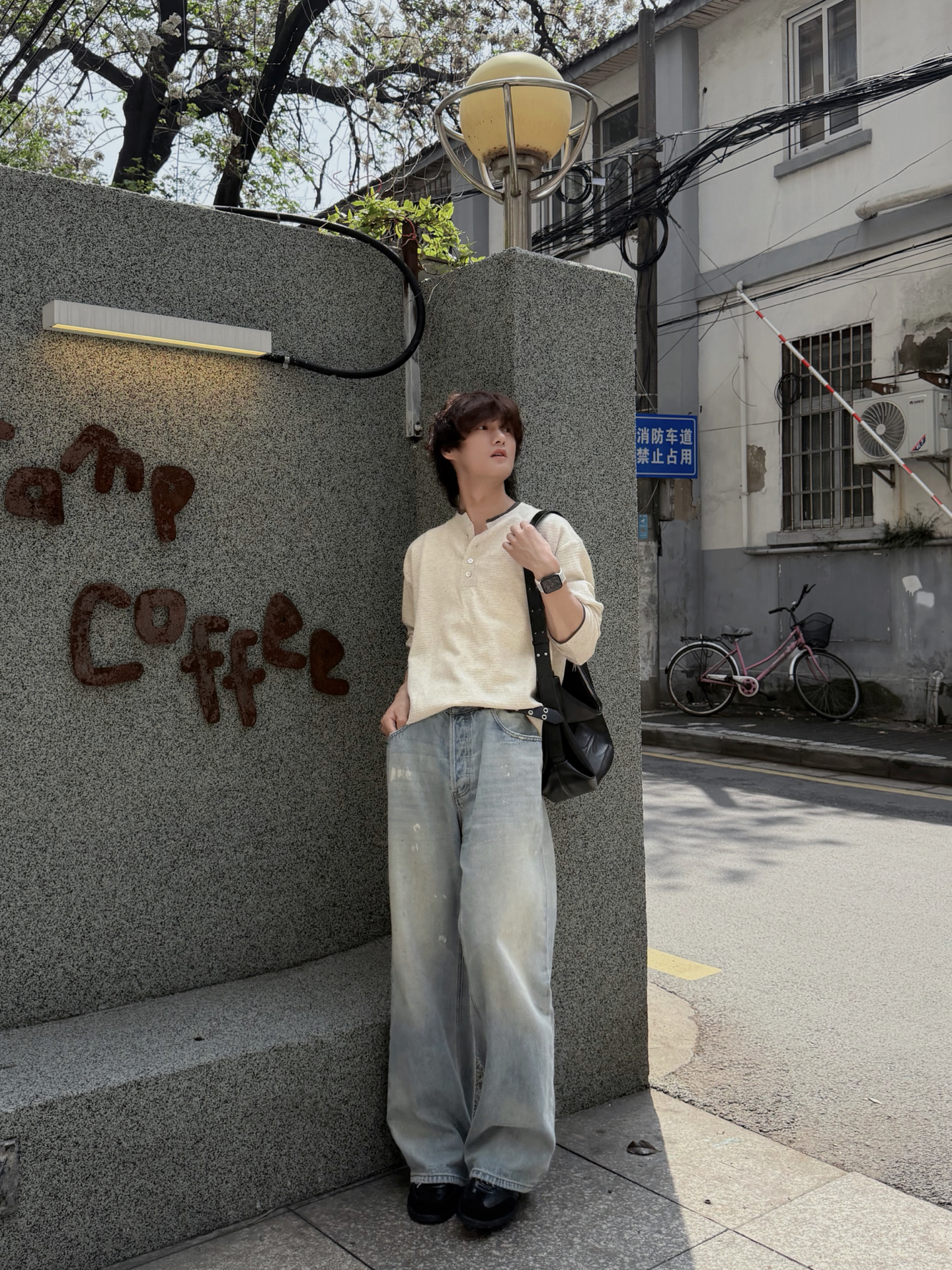 今日份的舒适区是华夫格给的☁️ 亨利领的小设计打破单调,叠穿深灰边边更有层次感。 搭配水洗做旧牛仔,把松弛感焊在身上。 背着包,走进阳光里,这大概就是春天的样子。