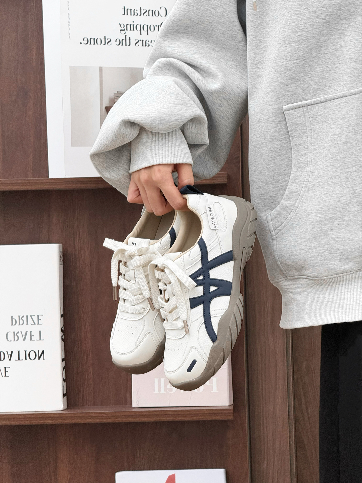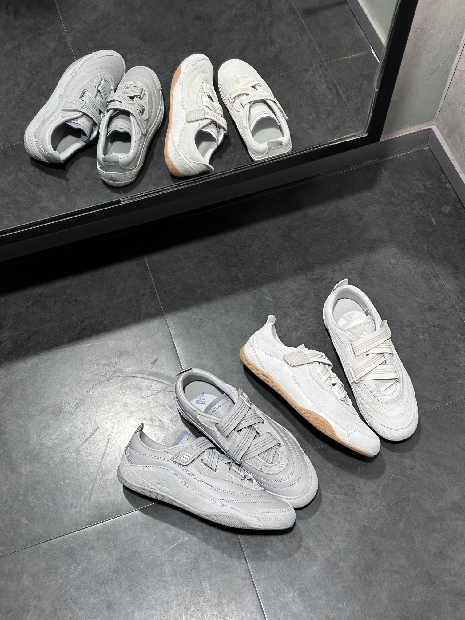 这双是比较基础但很耐看的款式! 颜值这一块我应该无须多言懂得都懂真的很不错 就脚感方面来说我感觉这双真的做的很良心 上脚踩着一点也不硬的 鞋面鞋底都是软的 而且它那种软不是没有支撑的软 像是在脚后跟和脚掌那一块 都放了些气垫一样 真的很舒服这双 有普通薄底德训的轻便 又有厚底德训的增高 还有些运动鞋的助力 这我感觉真的做的很用心了