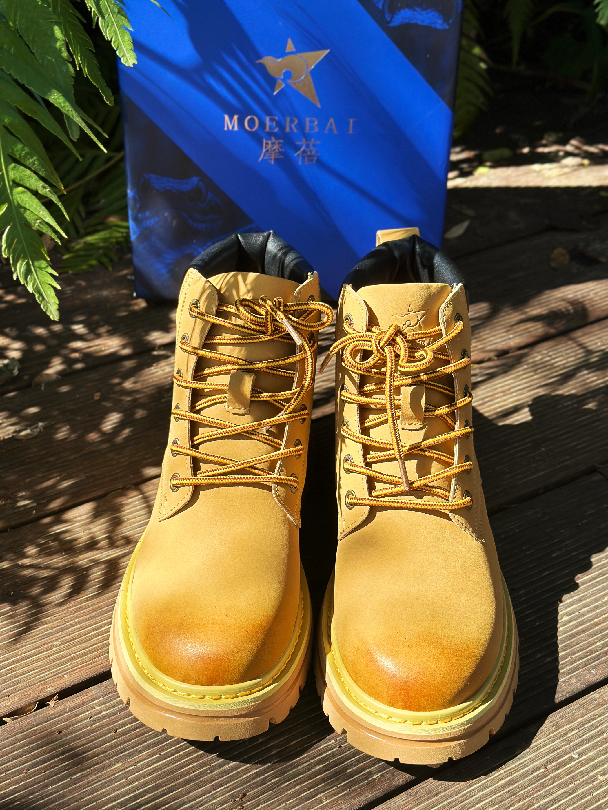 halo 阿迪来了,本期给大家分享一双冬靴!来自摩蓓MOERBAI的经典大黄靴/马丁靴! 整双鞋以土黄色为主色调,非常的有型! 鞋身采用了头层牛皮革材质打造!上脚很舒服,防水效果明显!内里舒适柔软,一点都不磨脚! 橡胶的大底,抓地力十足,自带增高3-4cm 渐变色鞋头和铜色鞋带扣设计,日常搭配束脚裤或者牛仔裤都很不错!感兴趣的朋友可以多多关注哦!