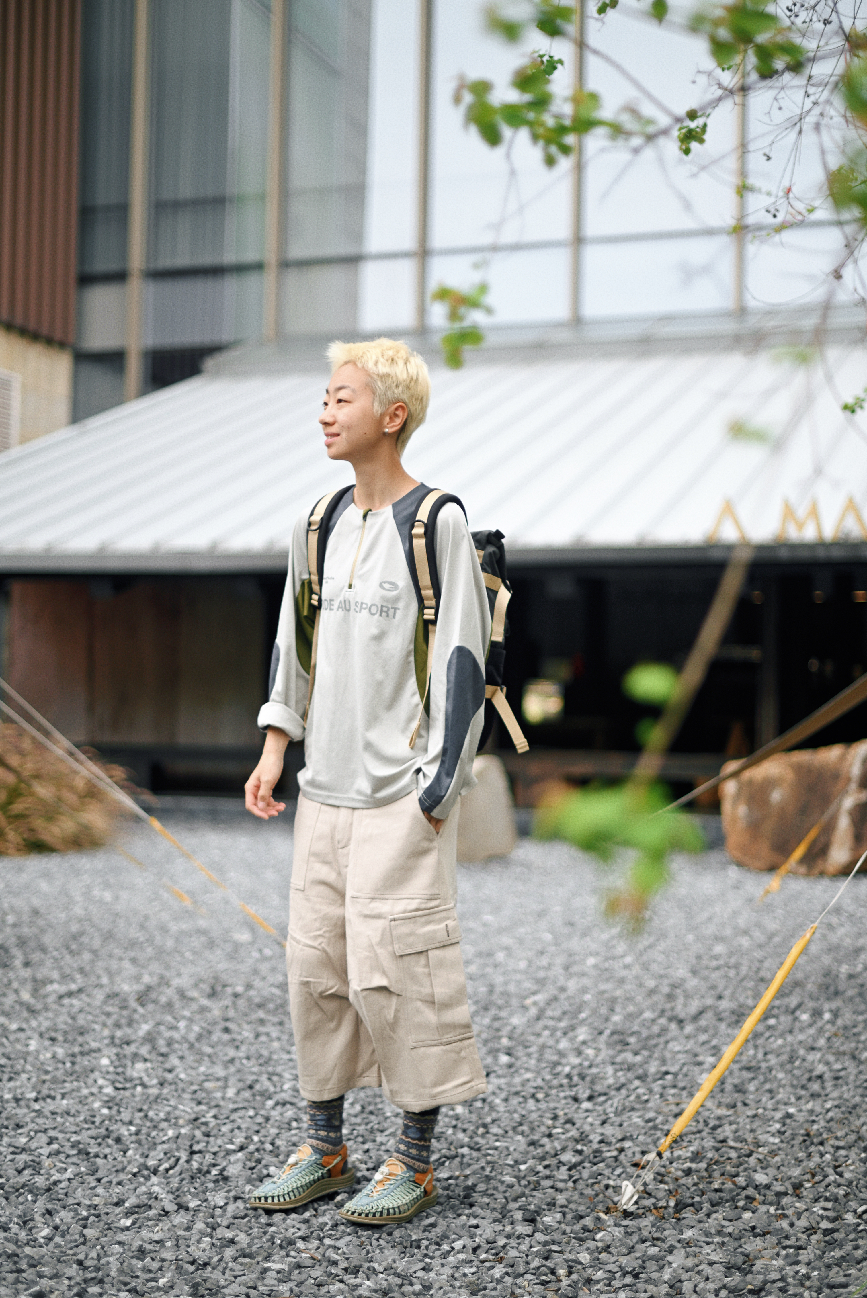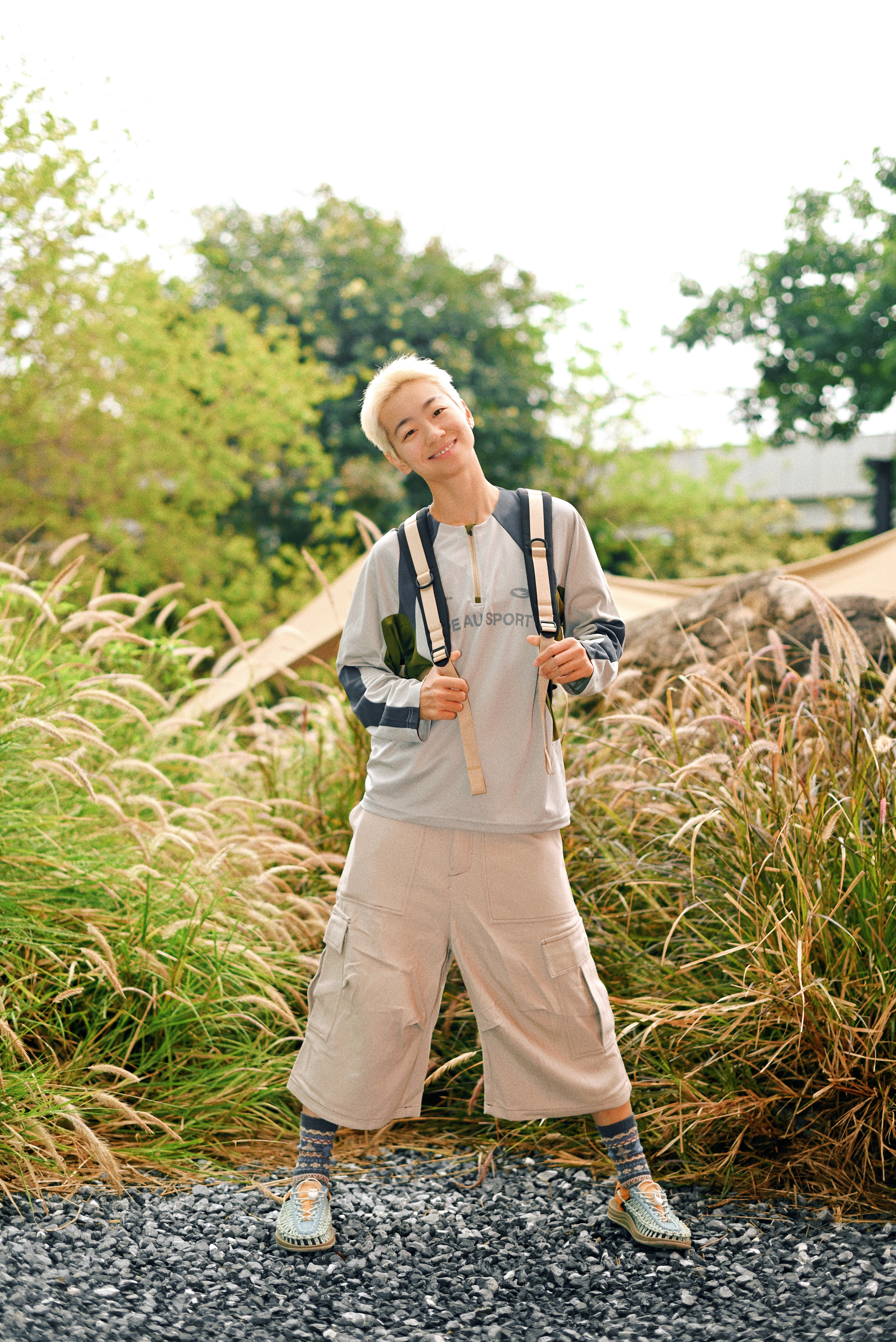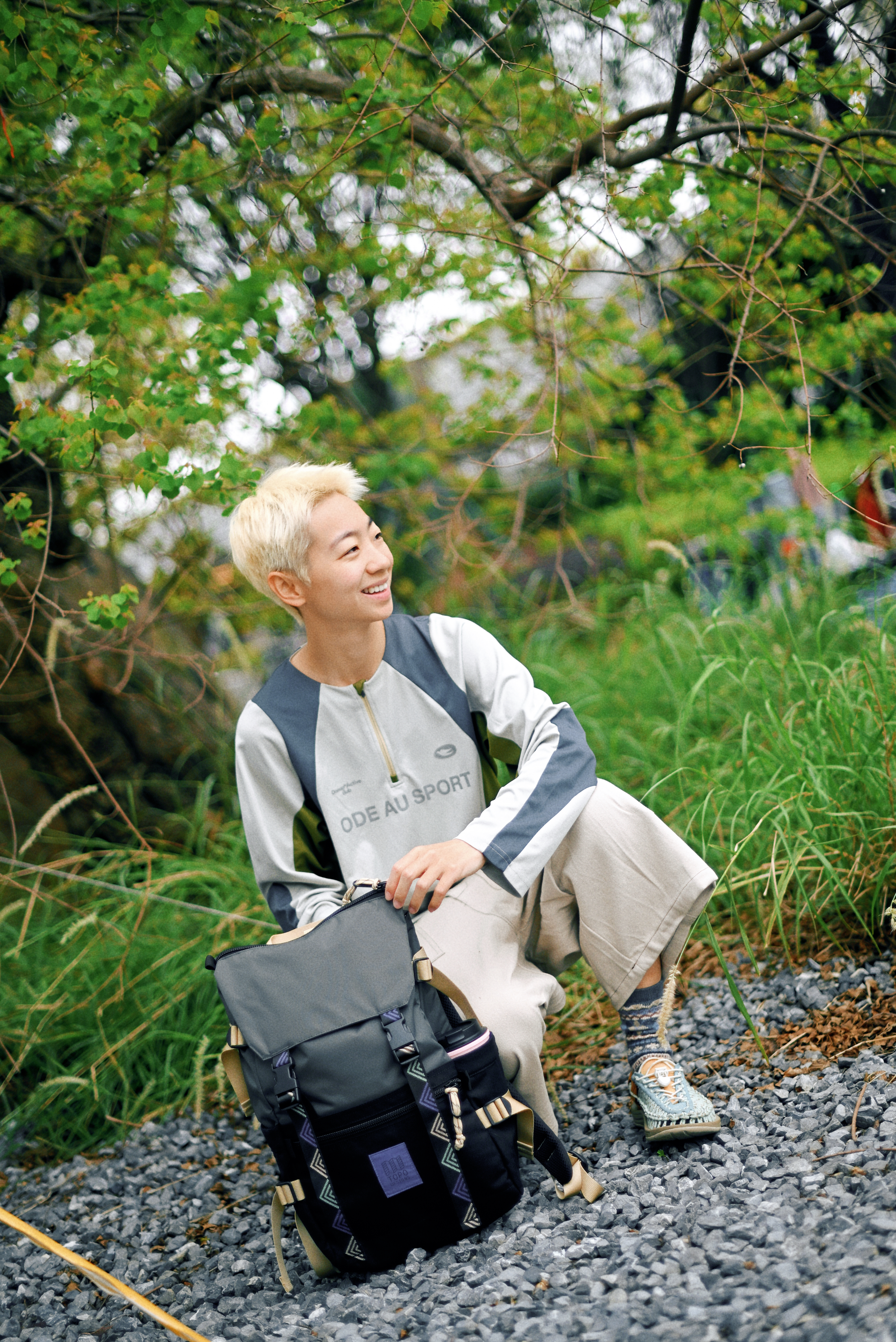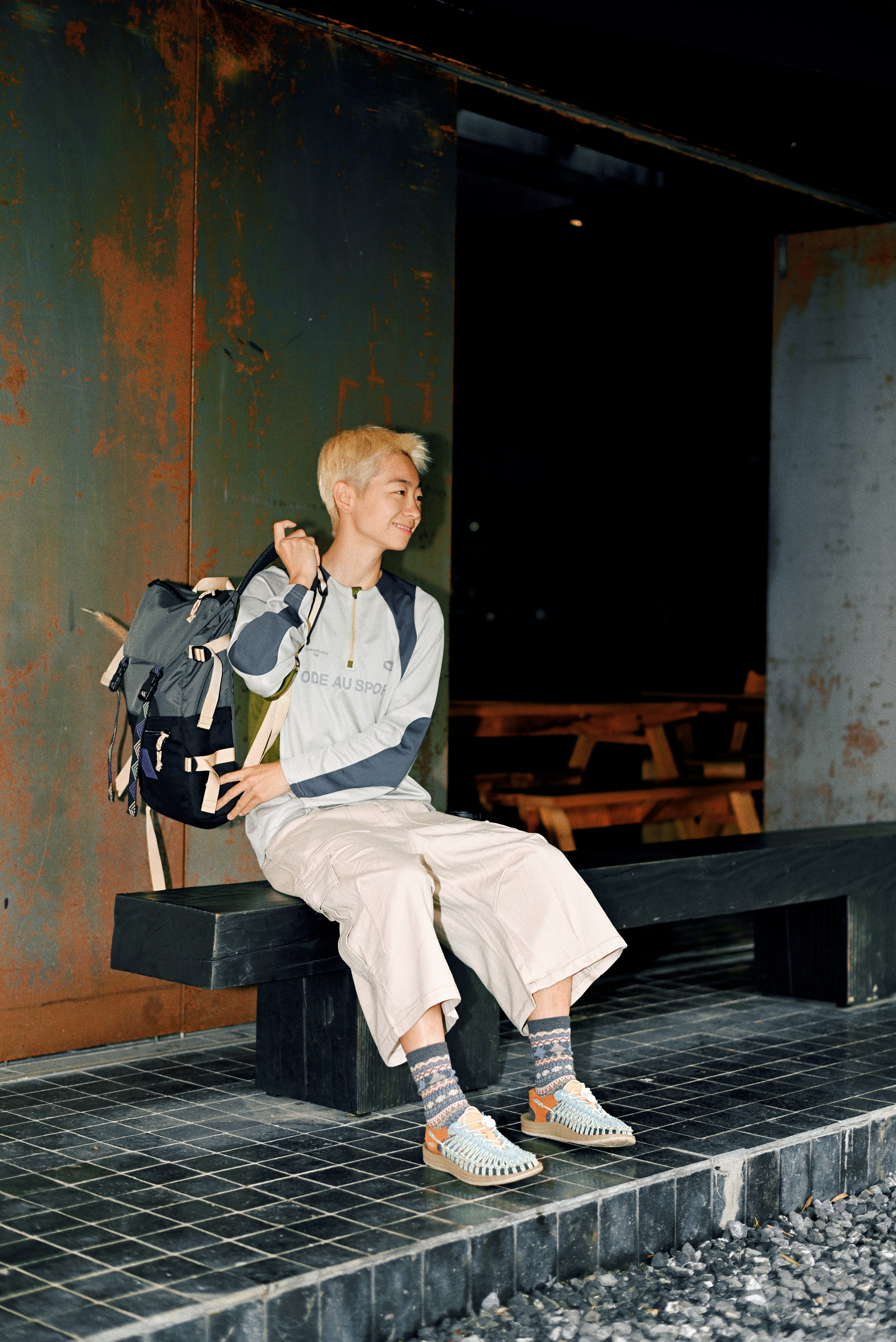 一顶浅蓝复古头盔,解锁骑行仪式感; 拼色长袖T恤+卡其工装裤 宽松廓形藏肉又随性 行走间自带日系少年气 脚踩编织凉鞋配撞色袜 细节处透出户外慵懒美学 背负多功能战术背包,实用与造型兼得 通勤露营一键切换 绿色Honda CC110复古摩托作伴 用一身松弛感,把日常过成诗。