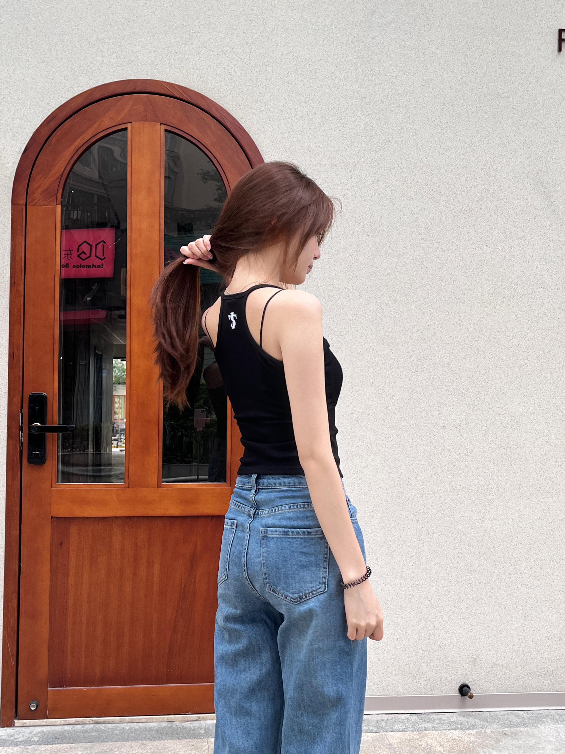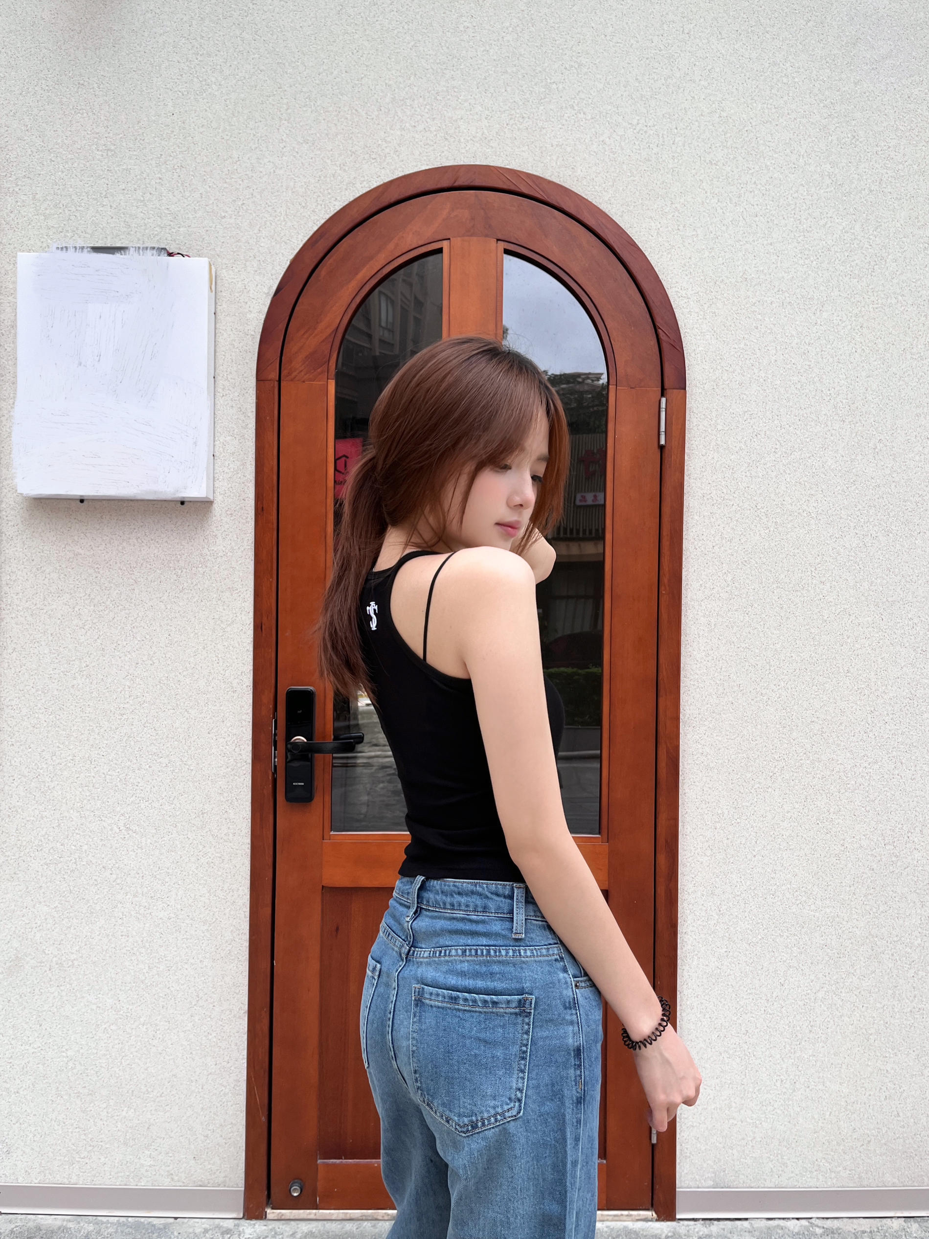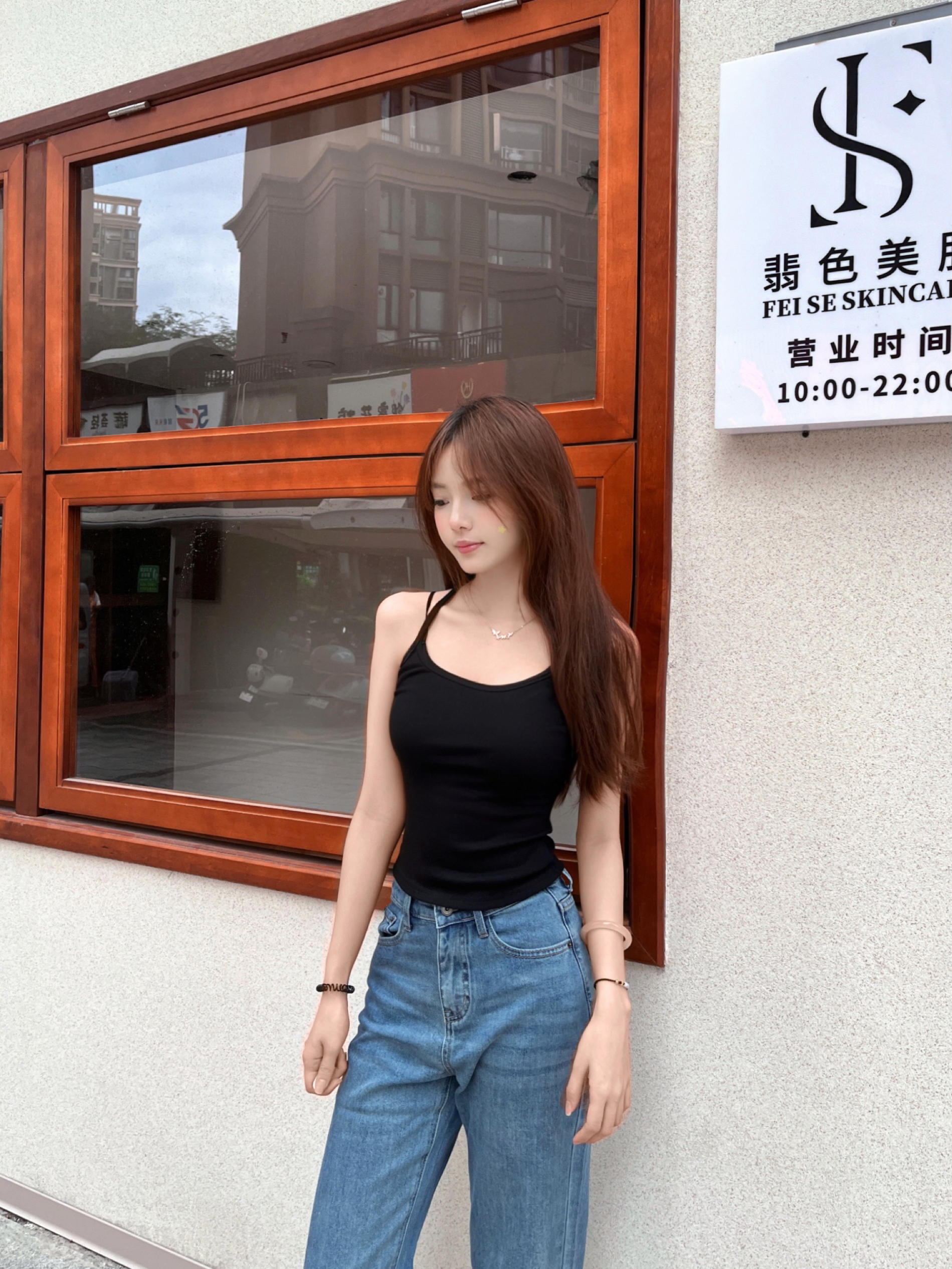 收腰设计直接把腰掐成蚂蚁腰,辣度拉满💥 细肩带超显肩颈线条,直角肩轻松get, 搭配高腰牛仔裤,又纯又欲, 夏天穿清爽又时髦,出门回头率爆表! #辣妹穿搭 #吊带yyds #显瘦穿搭 #夏日穿搭