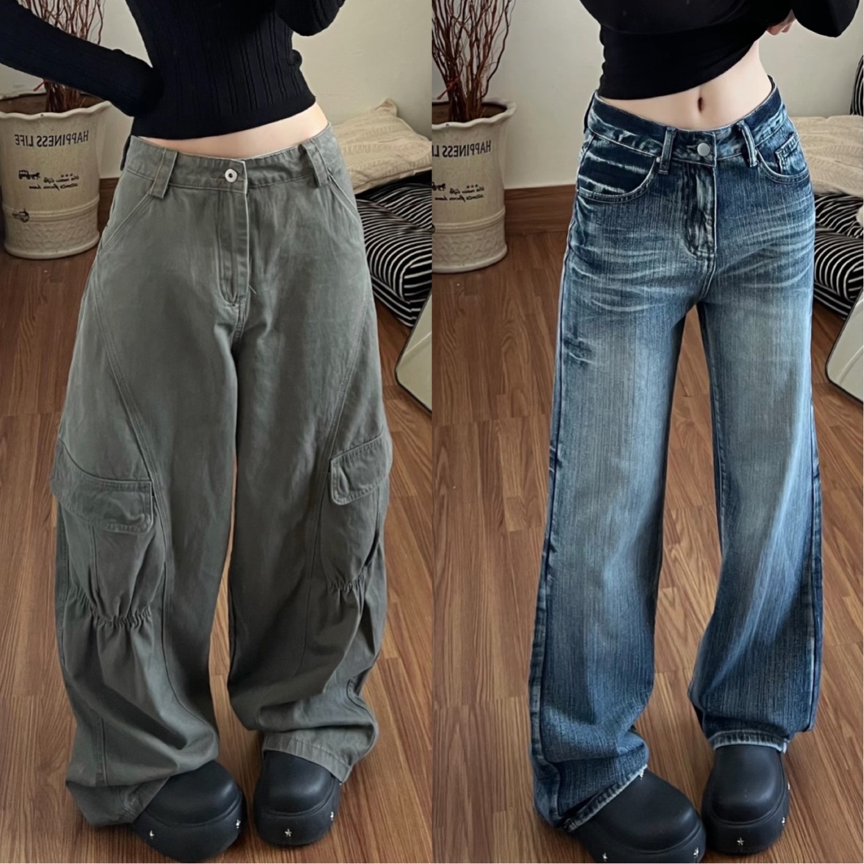 本篇笔记关联了悟空有货 做旧复古阔腿水洗拼接牛仔裤 基础色、Glona Klio 高腰微喇阔腿直筒水洗牛仔裤 女装 CWB-JYD765 蓝、CORNILOT 拼接褶皱大口袋工装裤 COCH-K2583802 灰等商品,为用户提供真实的使用体验和购买参考。