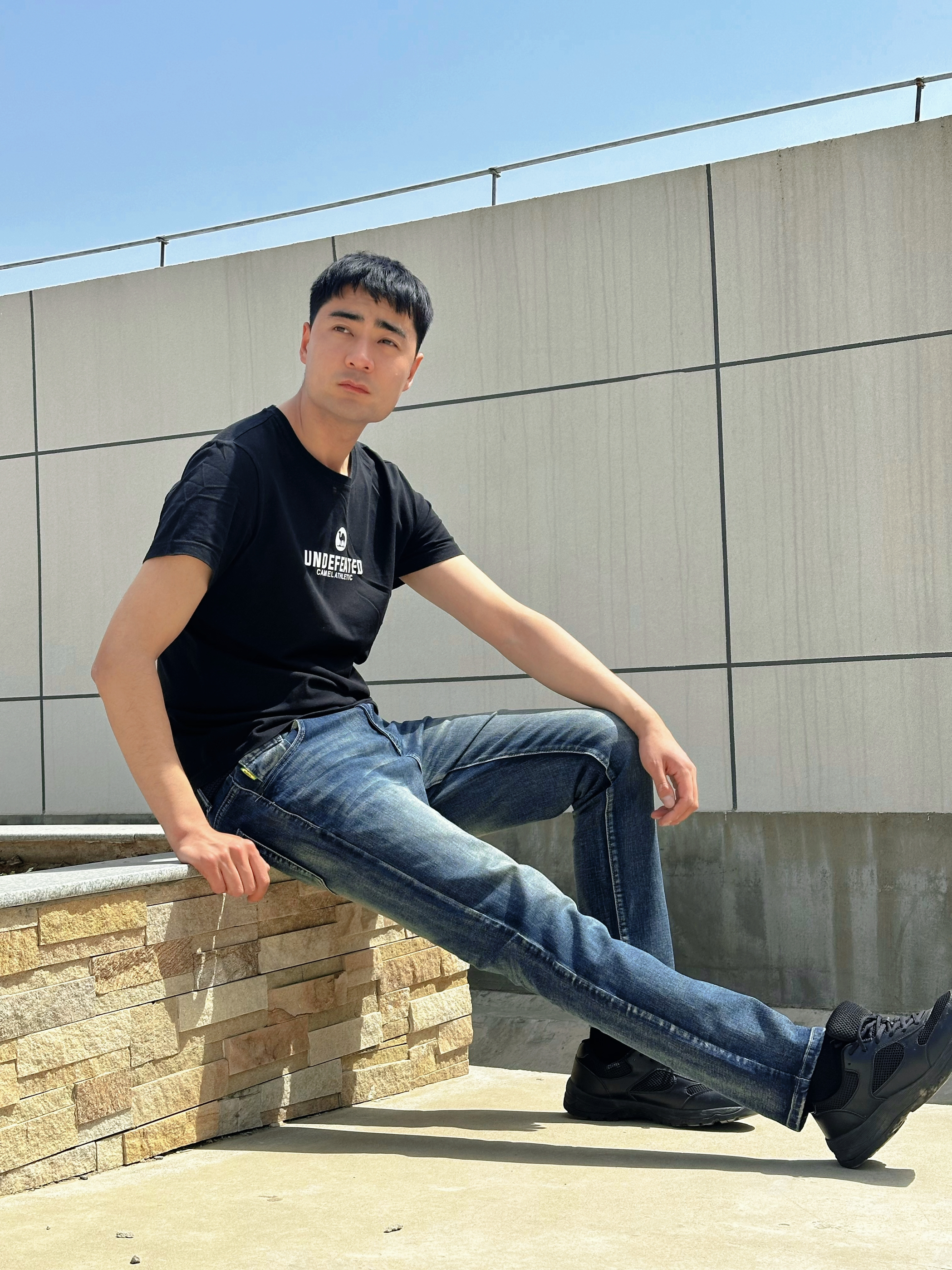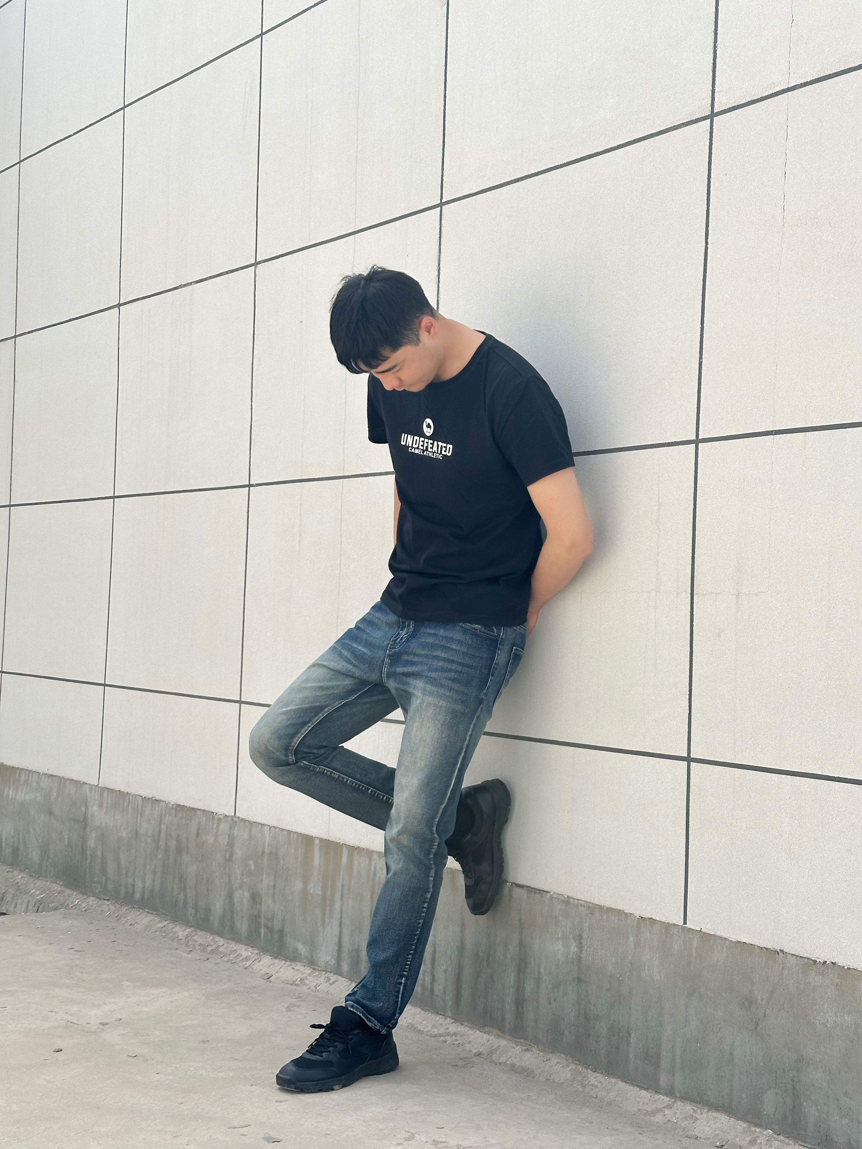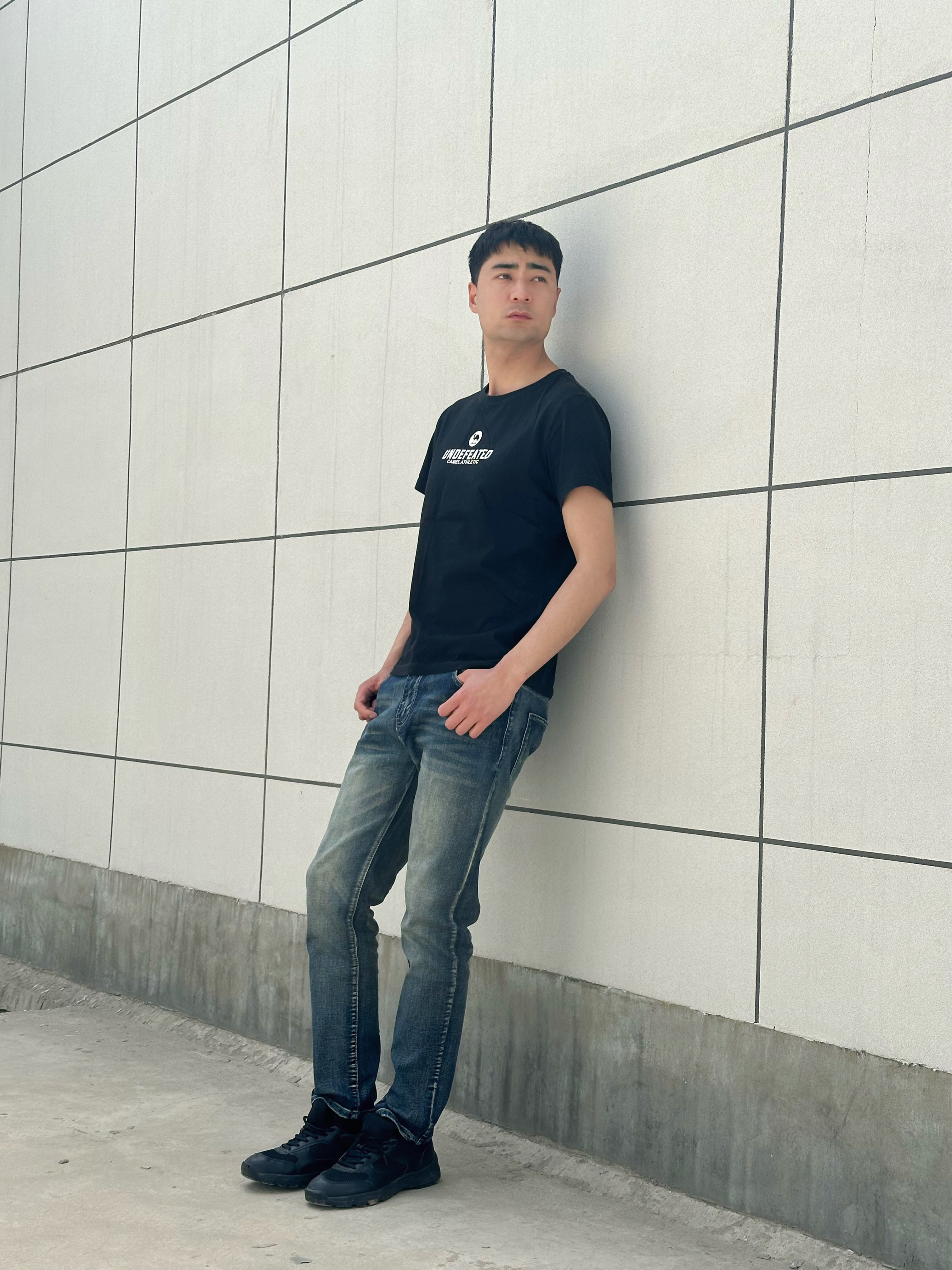 衣柜里那条不舍得扔的牛仔裤,才是春夏季交接的日子里最懂我的老朋友,中性的蓝色在做旧的同时面料也很柔软,光腿穿也不会觉得有不适感,踩一双哑光的黑球鞋压住全身的重量感,再套一件落肩的黑T短袖。 你看,酷这件事,不用很费力的,越简单越高效。