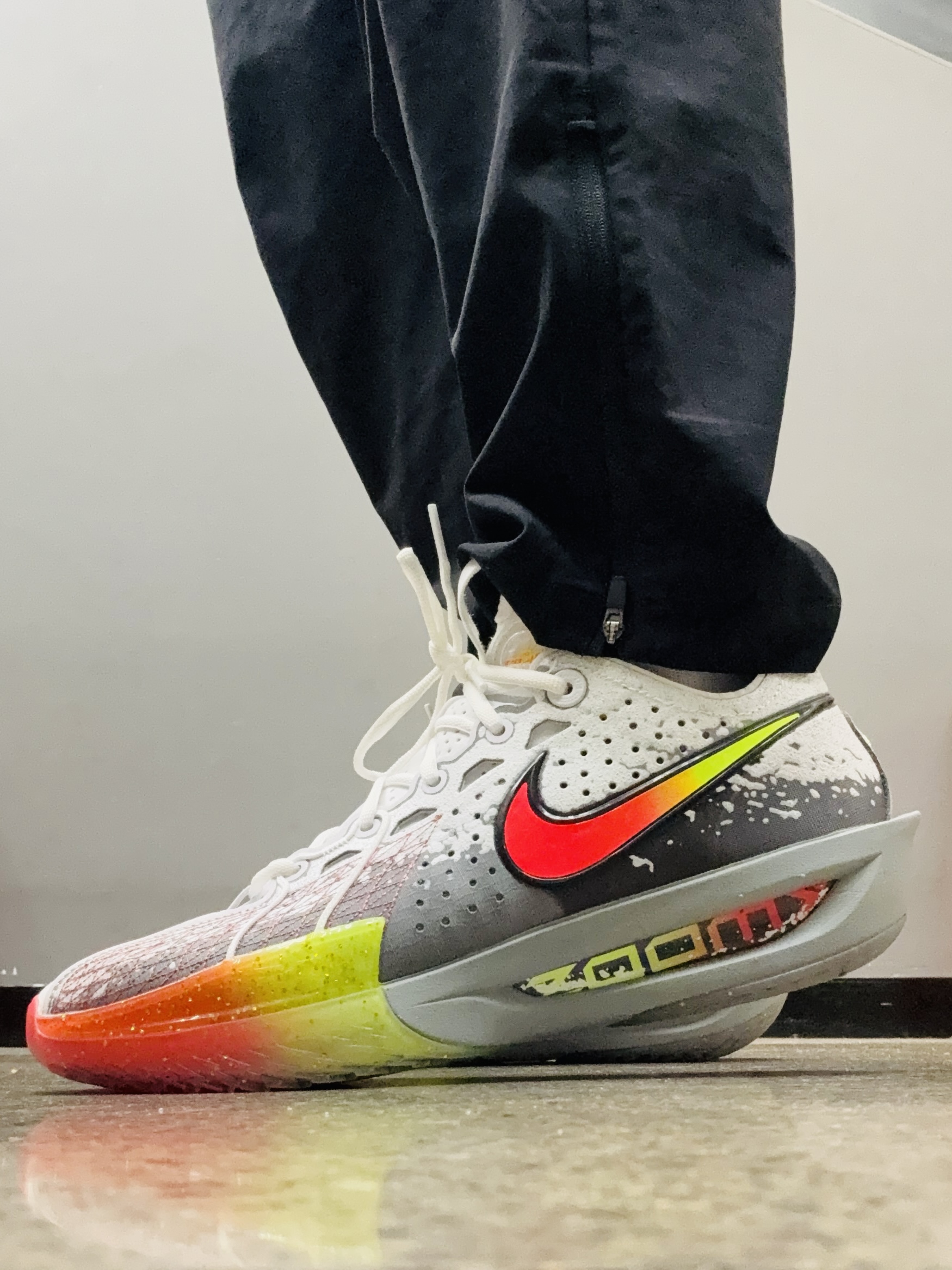 大家好,这里是老张💕 我的多巴胺球鞋‼️ Nike Air Zoom G.T. Cut 3 低帮篮球鞋 🌟:鞋身以白色为主调,侧边亮橙Swoosh标志+鞋舌拉环点缀,橘色线条勾勒层次感,白橘撞色设计清爽又好看! 🌟:鞋面轻薄皮革➕网纱材质,鞋面大面积的透气孔和Flywire飞线包裹性和透气性挺不错的! 🌟:大面积的TPU,我在打球过程中支撑和稳定都挺好的!后跟处的TPU支撑,对于我容易崴的右...