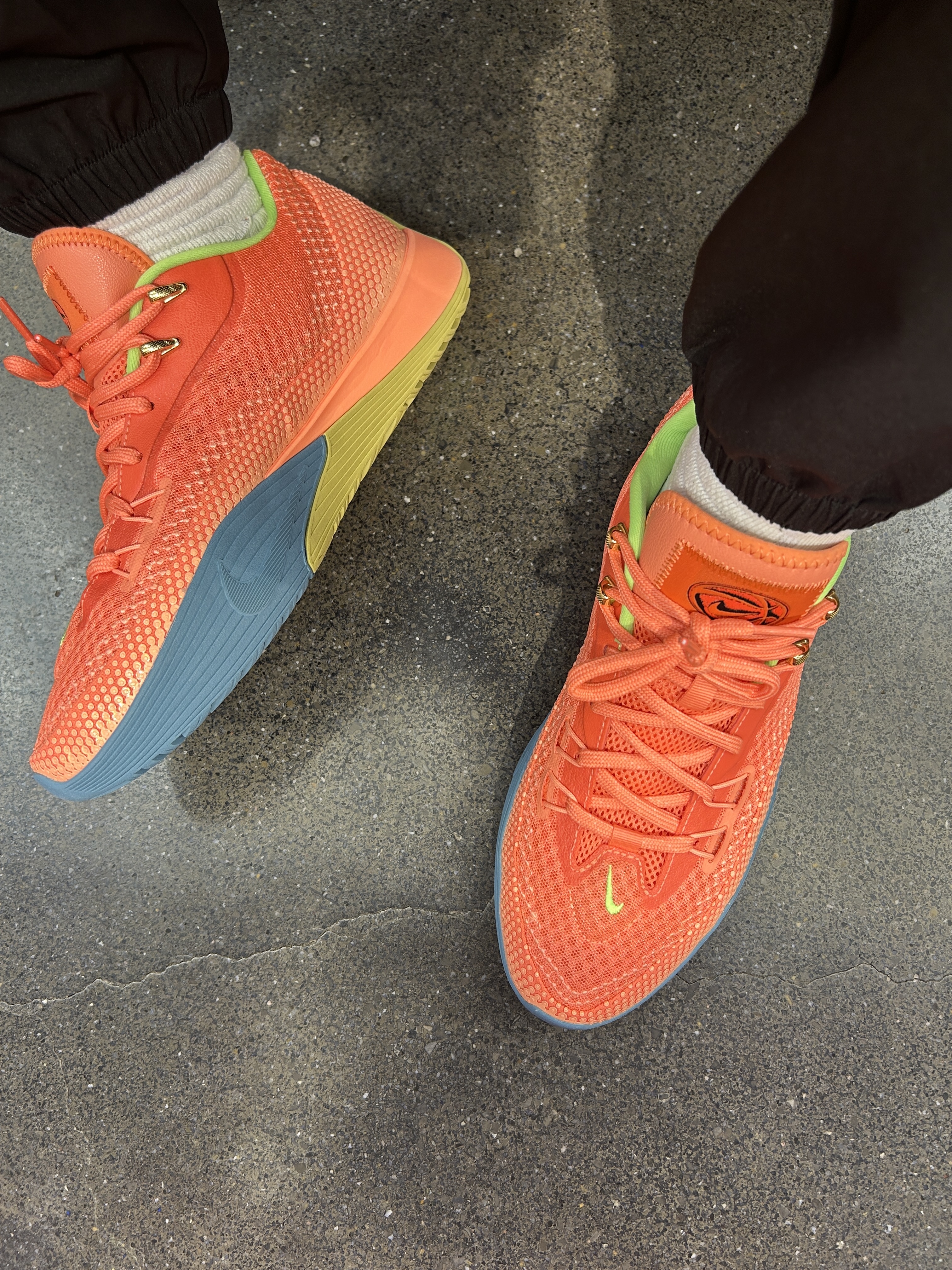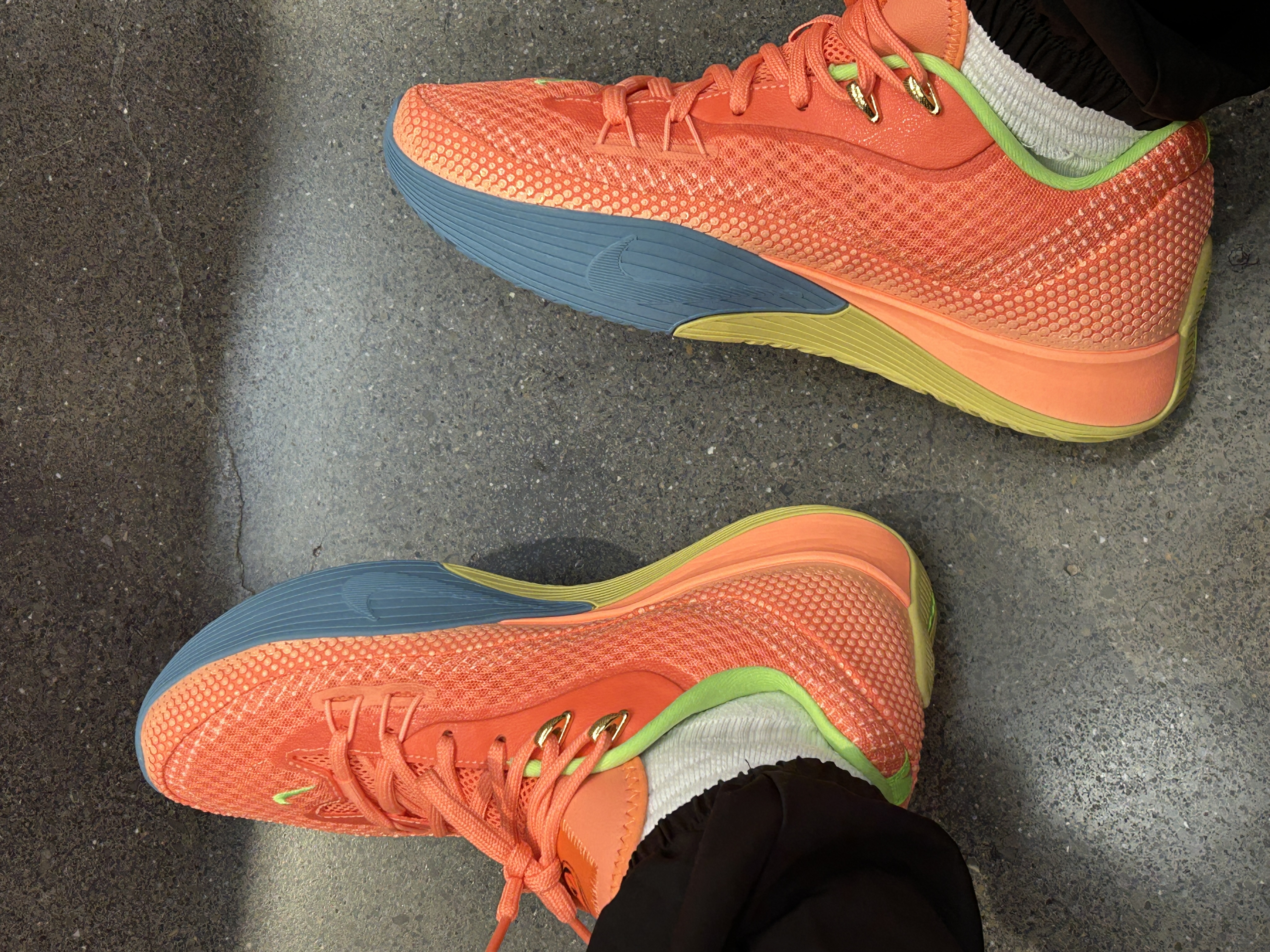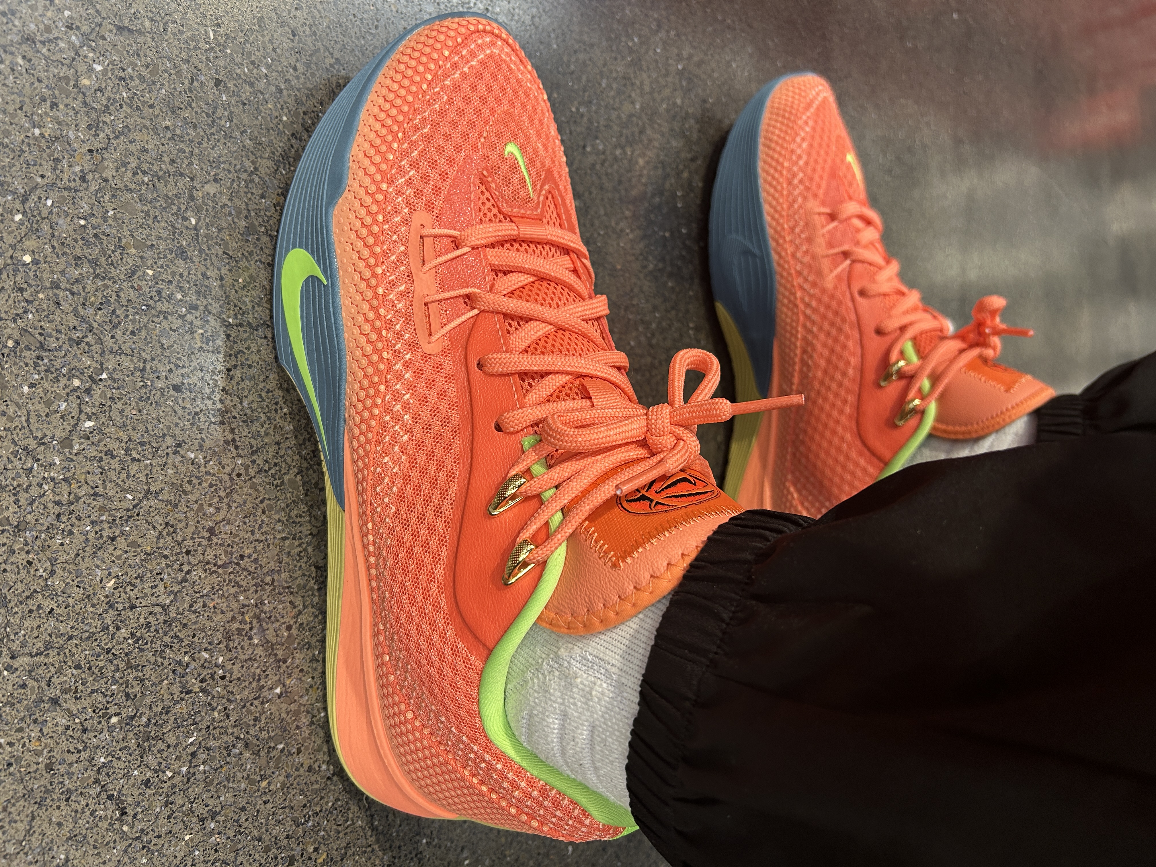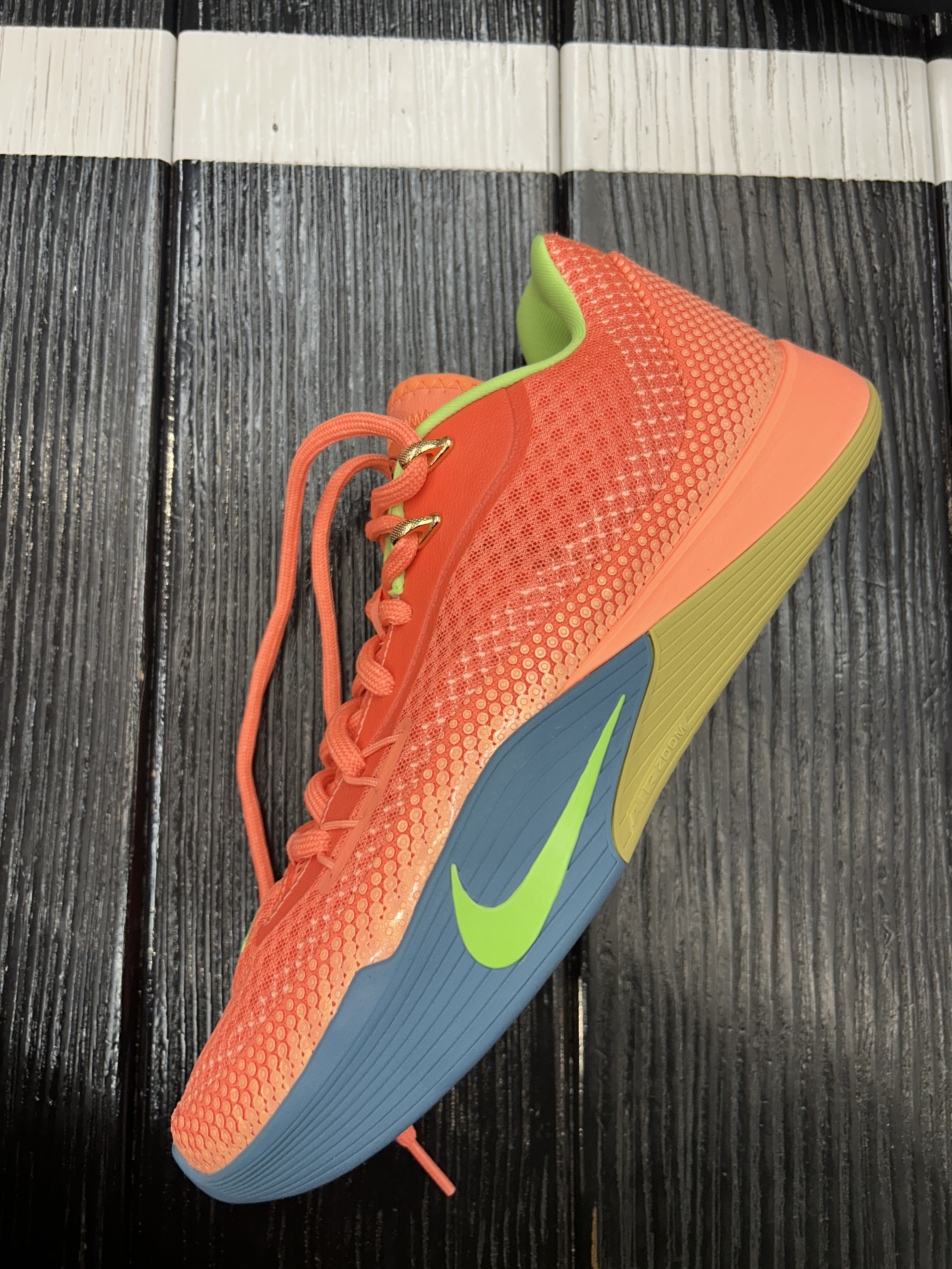 大家好,这里是老张🎉 学生党大体重狂喜啊‼️ Nike ST Flare 低帮 篮球鞋 🌟:鞋面采用橙色渐变网布,鲜艳色调,我上脚以后整体亮眼又吸睛,猛男谁能不爱呢? 🌟:中底前掌搭载Zoom气垫,我上脚以后回弹和缓震都还蛮不错的,鞋身是比较轻量的,这双鞋比较适合大体重人群! 🌟:XDR耐磨橡胶大底,防滑耐磨都还可以! 🌟:鞋楦偏窄的,脚宽或高脚背可以选大半码。