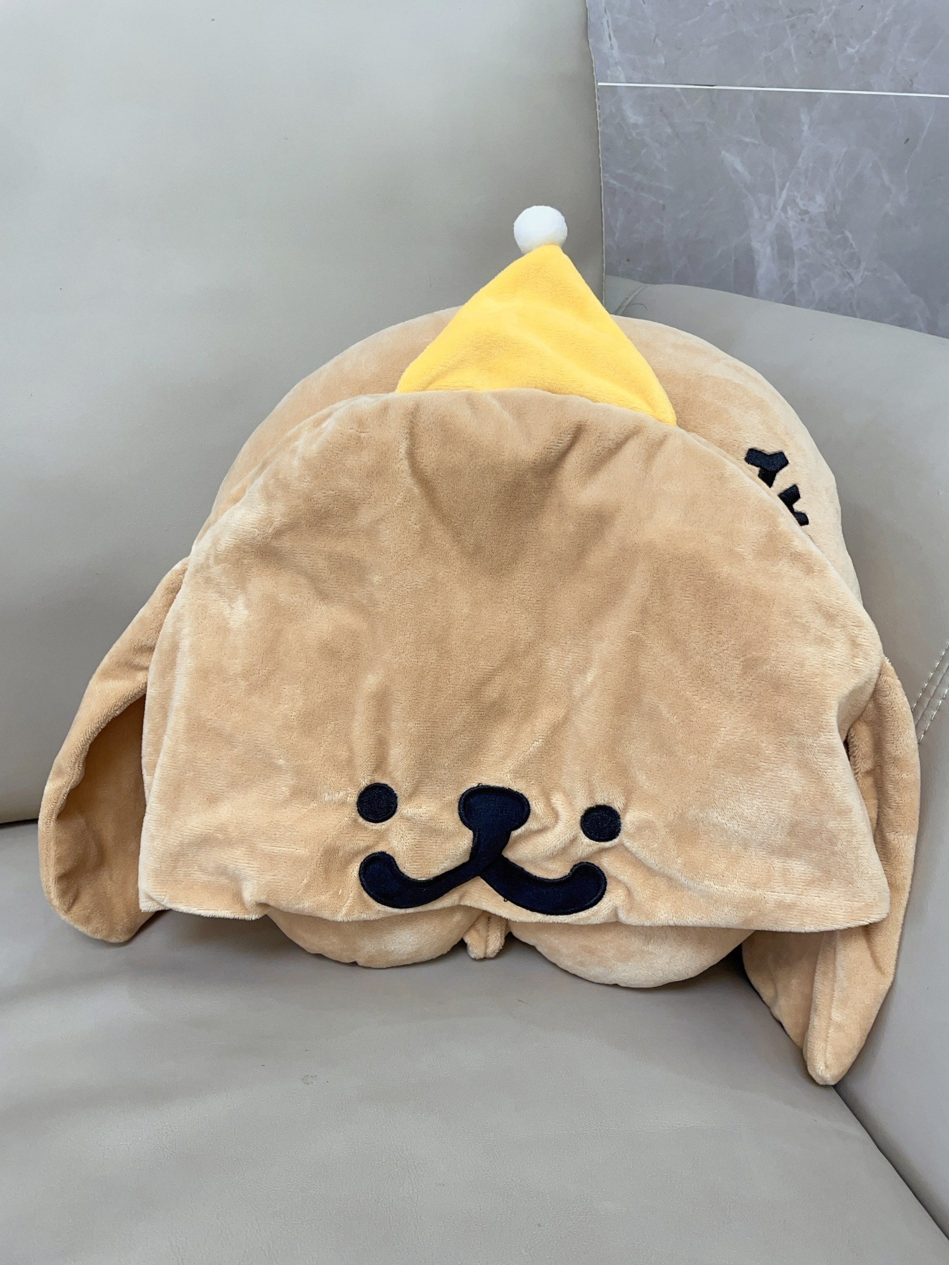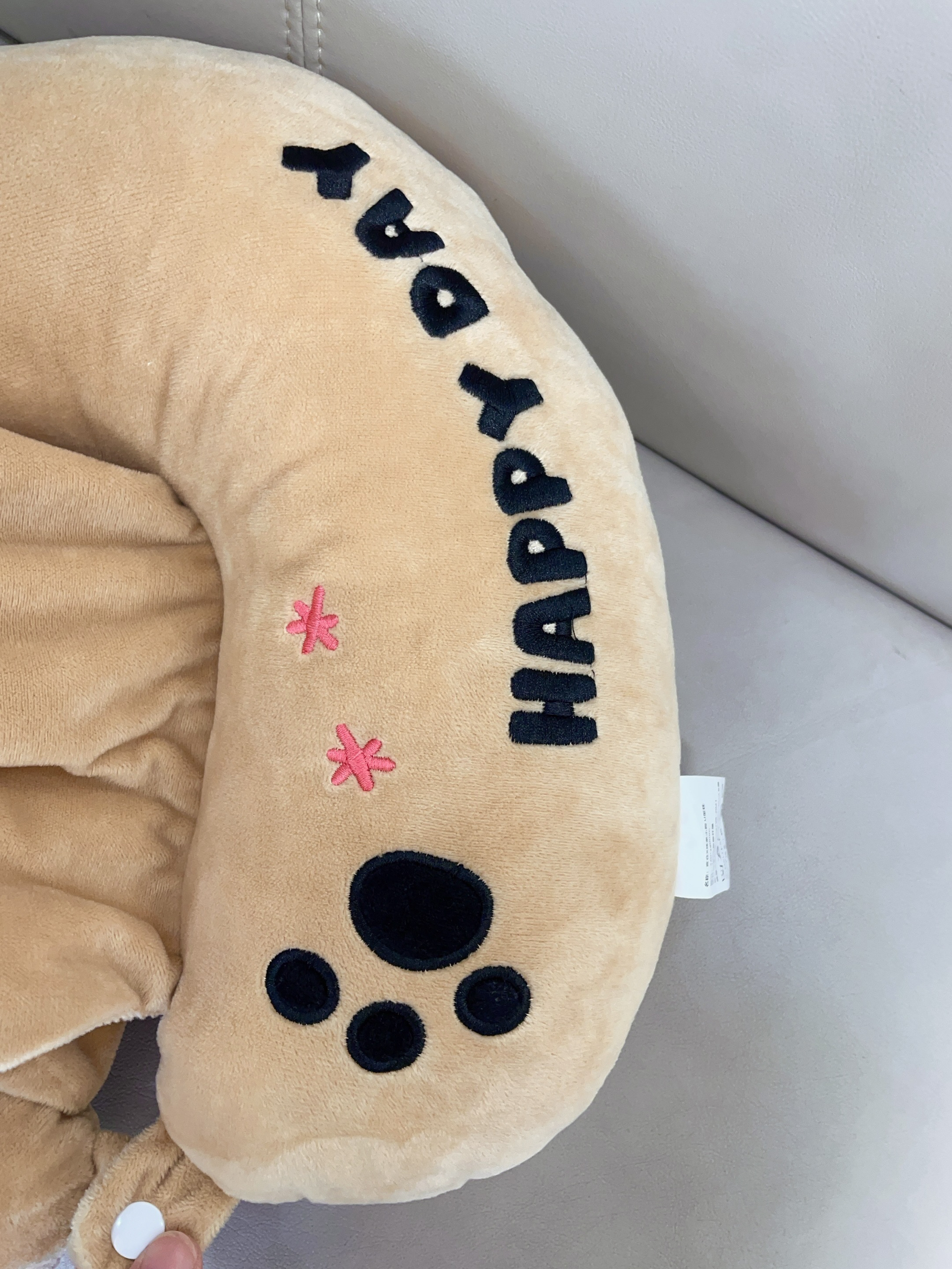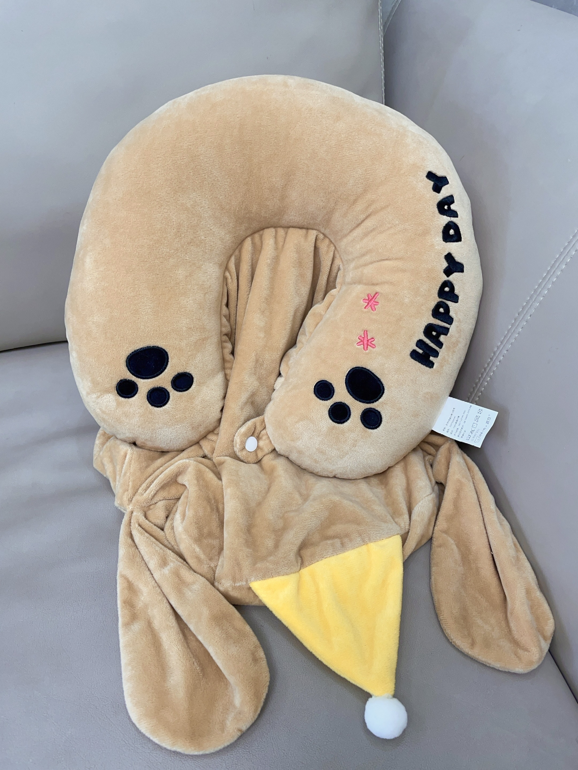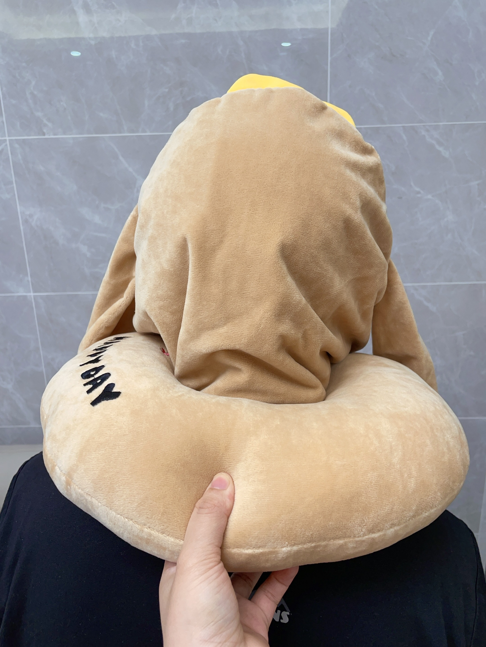 嘻嘻嘻快要五一假期啦 当然要准备出去游玩咯 介个言仓 ×线条小狗合作款U型枕好可爱 软乎乎的 rua起来手感也hin不错 还自带小帽子 平时午休蛮好 出门游玩坐车坐高铁带着它 睡觉方便