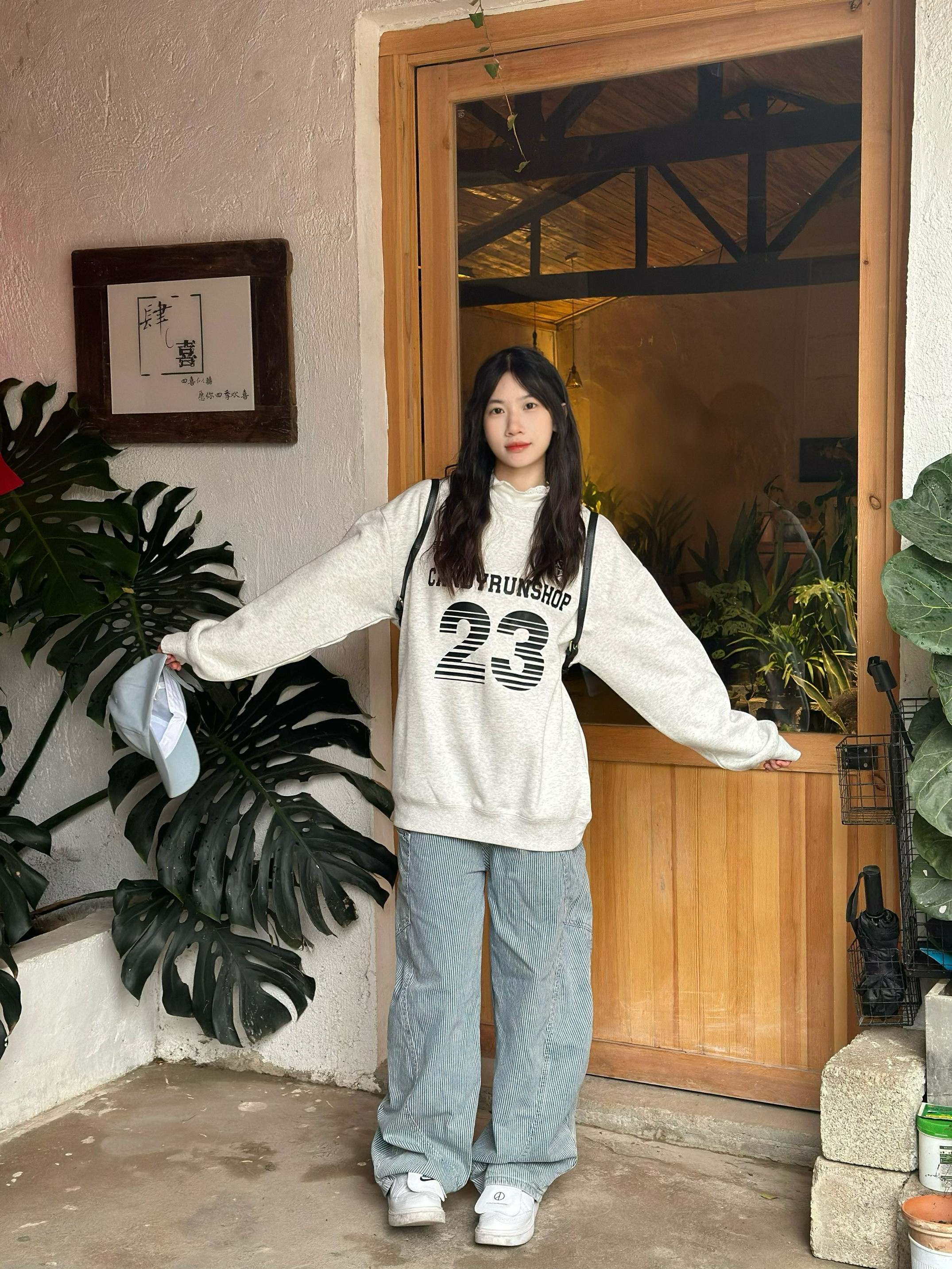 宽松落肩版型,对各种身材都很友好 浅花灰调,百搭不挑穿搭,随便搭都好看 配条纹工装裤+小白鞋,休闲感直接拉满 日常通勤、出街都能穿,懒人穿搭天花板 春天就该穿这种舒服又好看的衣服!