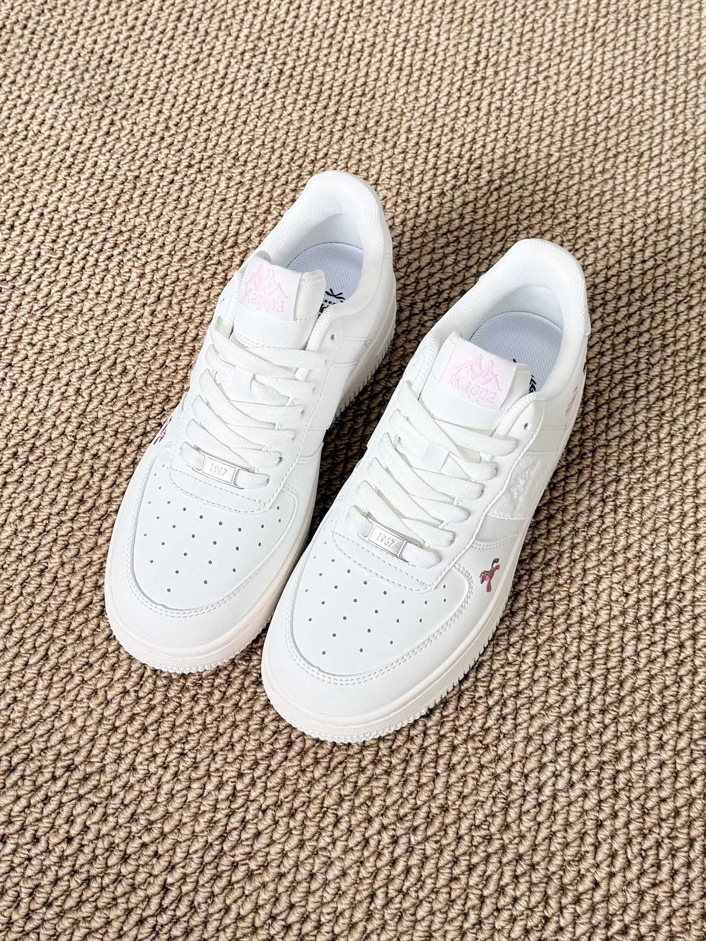 谁懂啊家人们!这双Kappa小白鞋直接长在我的心巴上💖 奶fufu的纯白鞋身,搭配鞋侧精致的小刺绣细节,低调又有质感,完全不怕撞款!经典的背靠背logo超有辨识度,一眼就能认出是Kappa的王牌款~ 重点夸夸脚感!鞋底是软弹的发泡材质,上脚直接踩出“踩屎感”,早八赶课、周末逛街暴走一下午,脚底都不酸不累!悄悄增高3-5cm,小个子姐妹直接拥有漫画腿,视觉上巨显脚小✨ 皮质鞋面巨好打理,脏了...