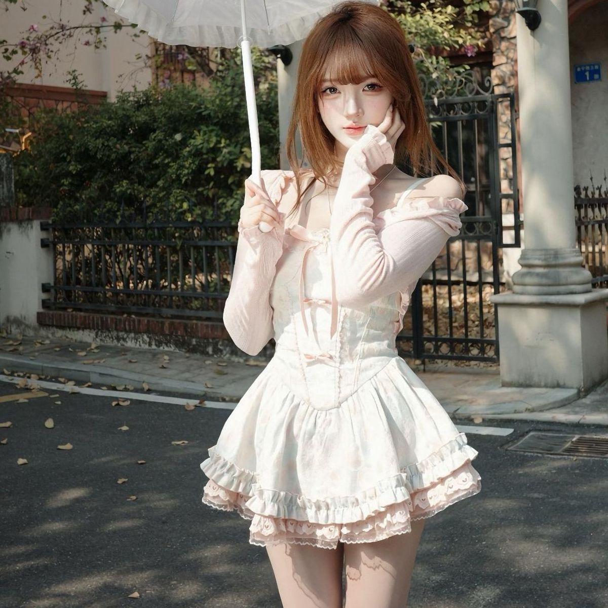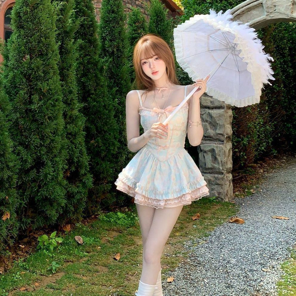 👗 甜妹梦境花园洛丽塔风吊带裙 鱼骨收腰+A字蓬摆,极致优化身材比例,显腰细、遮胯藏肉,短款设计拉长腿部线条,小个子也能轻松驾驭。 领口、裙摆做了多层蕾丝+木耳边拼接,搭配粉色蝴蝶结系带,甜感拉满 无需额外穿内衣,日常穿更方便 浅蓝底+粉调晕染印花,温柔又显白,不挑肤色 属于轻洛丽塔(Lolita)日常款,既保留了洛丽塔的甜美感,又不会过于夸张,日常约会、出游、拍照都能穿。 💡 穿搭&搭配...