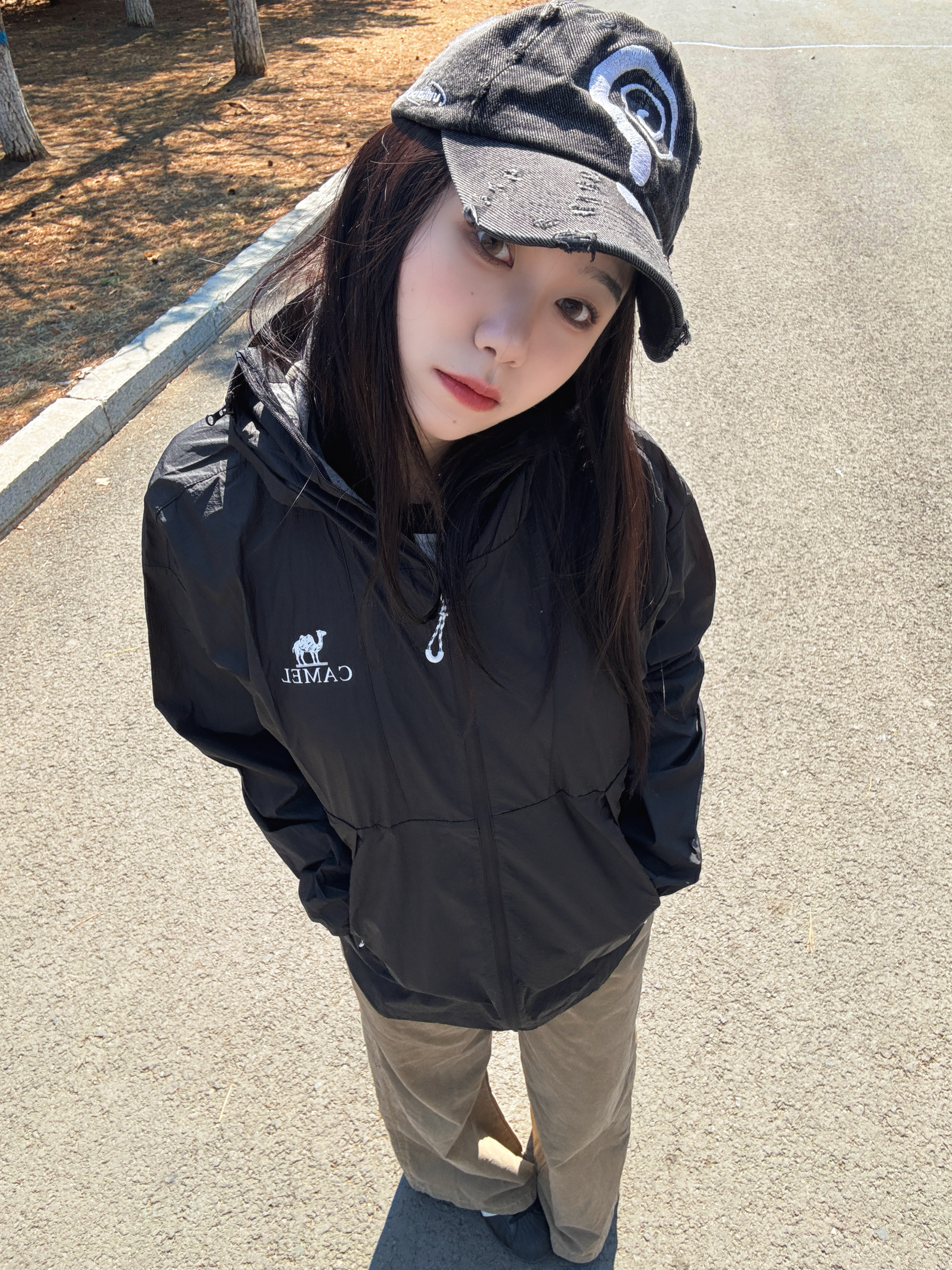 经典黑防晒服 连帽设计超实用🤩 面料轻薄透气不闷汗 日常通勤、户外出行都能穿🧗 版型宽松不挑身材 硬挺帽檐➕拉链保护头部防晒☀️