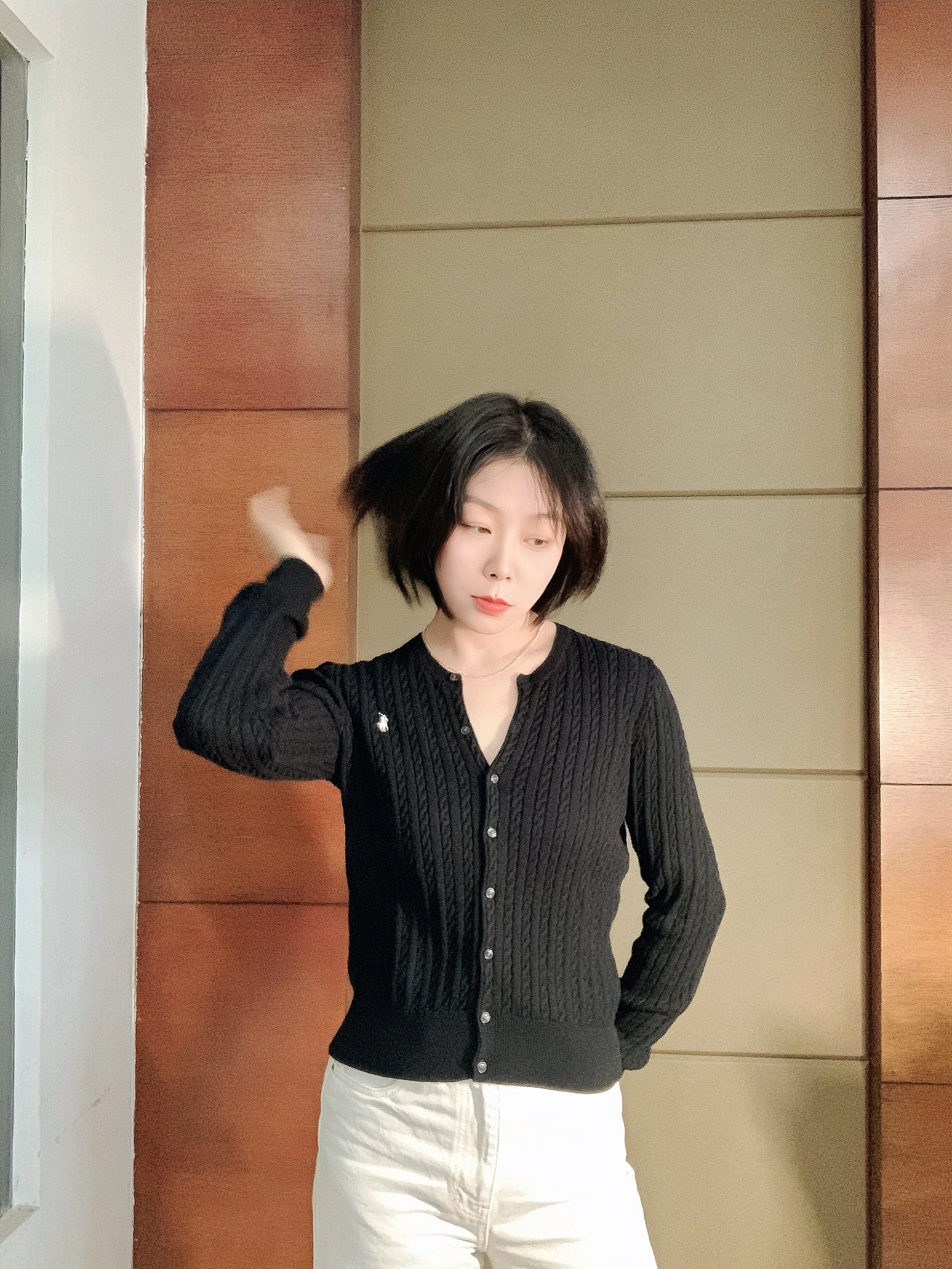 挖到宝啦!这件黑色绞花开衫真的巨百搭,经典小马标刺绣超有质感,圆领+单排扣设计不挑身材,微胖姐妹也能轻松驾驭~ 面料软糯亲肤,贴身穿不扎肤,早春单穿刚好,内搭吊带或T恤都可,降温时叠穿大衣也超有层次感。黑色巨显瘦,搭配白色直筒裤,瞬间拉长比例,通勤穿简约大气,日常出街也不单调。 版型不挑人,小个子穿显高,高个子穿更有松弛感。细节做工超赞,走线工整不易变形,洗后不缩水不起球。百元价位get千元质...