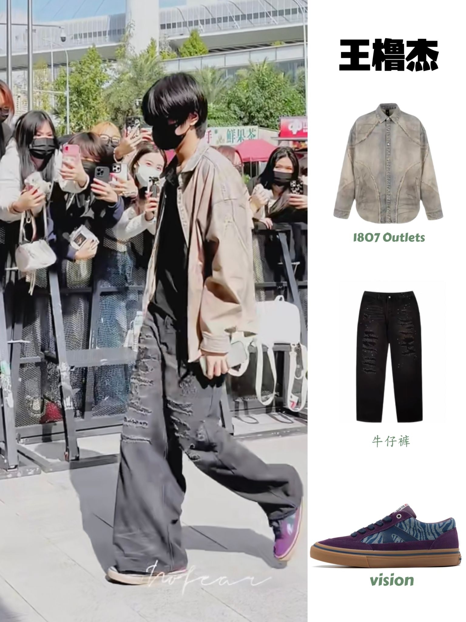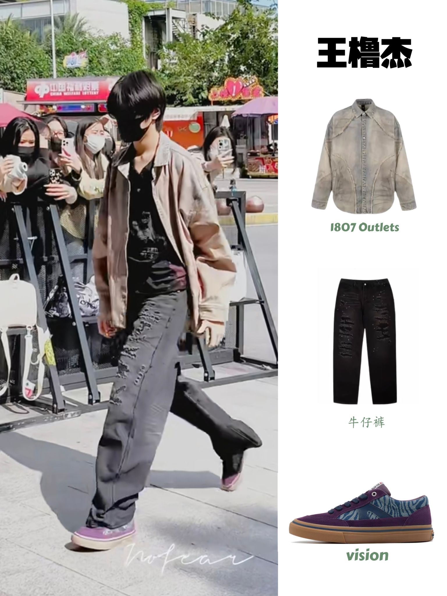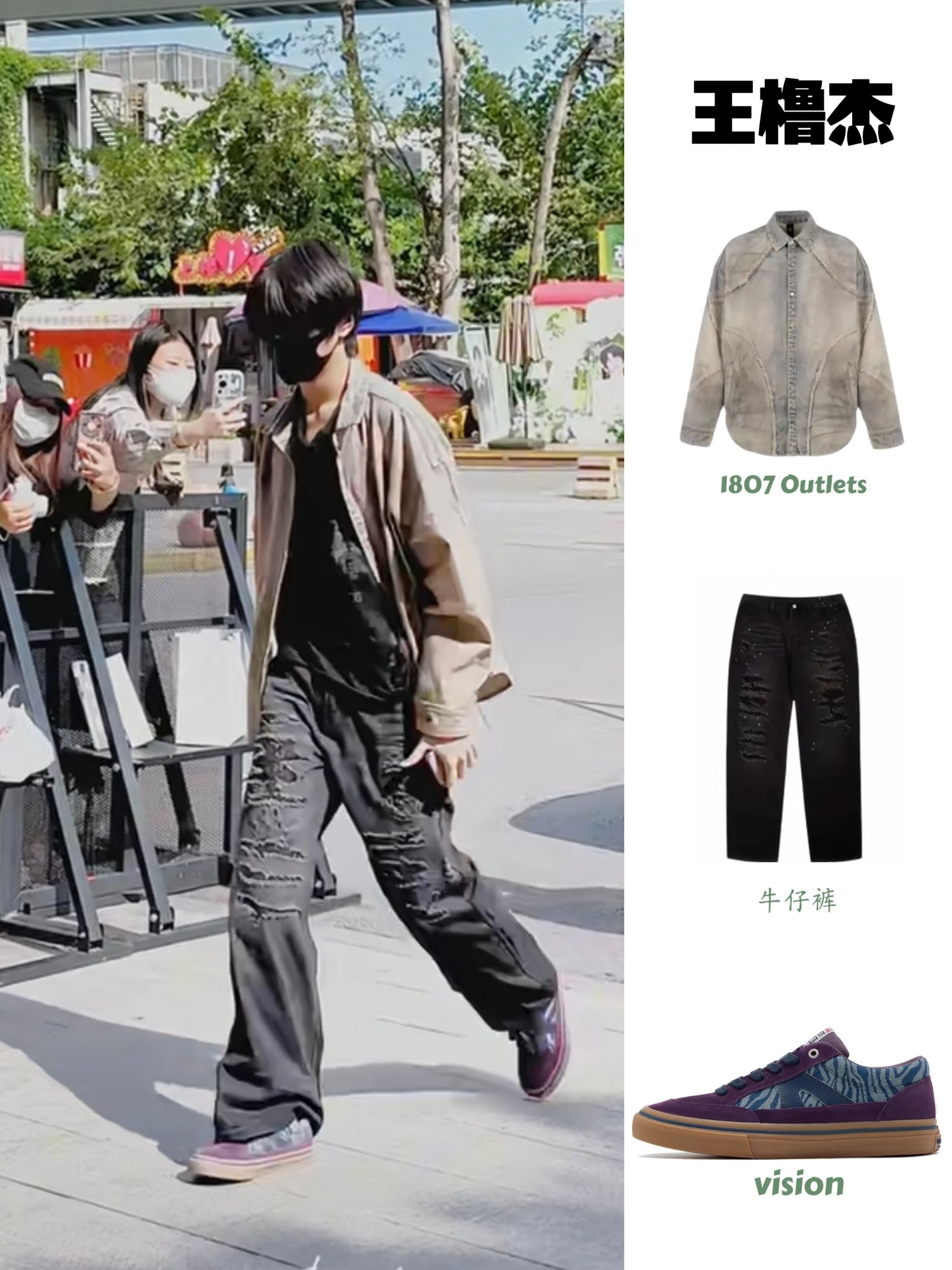 王橹杰私服穿搭|美式复古街头感拉满 做旧衬衫+破洞牛子裤+紫调板鞋 松弛感和少年感双在线,走路带风的酷哥谁不爱!