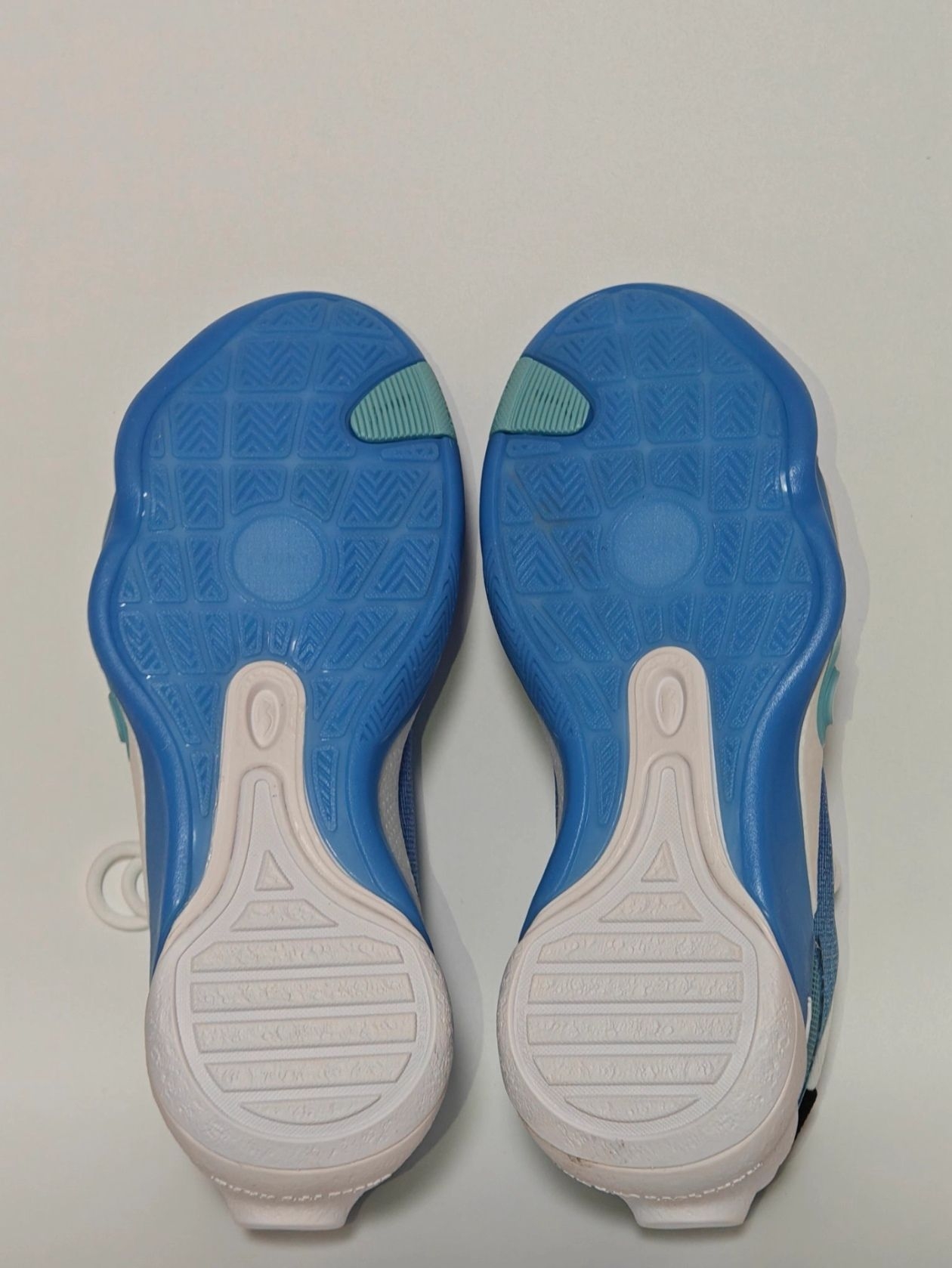 💙鞋面外观。鞋面的蓝色非常正,接近溪水蓝,治愈人心~虽然整体是蓝色,但鞋舌、鞋带、鞋底、脚后跟等,穿插着白色。网面没有特别绵密,在南方穿起来挺透气的。这款鞋还有黑色和橙色的配色,心水鞋型的小伙伴,可以看看另一种配色。