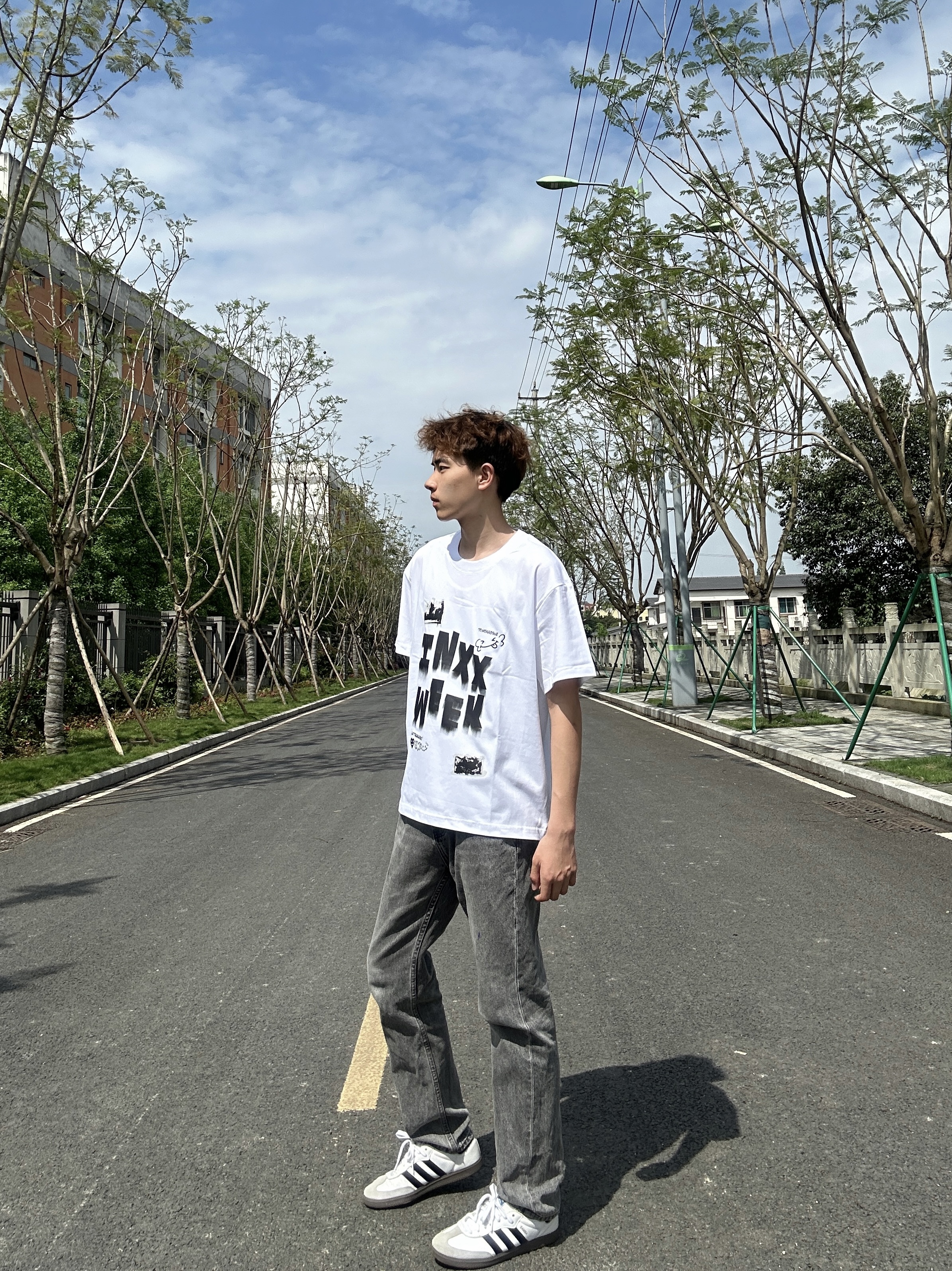 今日份街头感加载完毕✅ 自带艺术感的字母印花,低调又有辨识度。 精选纯棉面料,透气不闷汗,夏天搭配很轻松! 简简单单一身,就是街上最靓的仔。 拒绝千篇一律,从一件有态度的短袖开始。 我身高175cm/体重60kg,穿的是L码,喜欢的宝子们可以来看看呀~