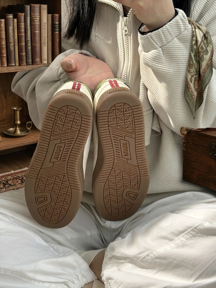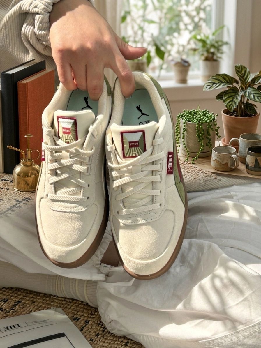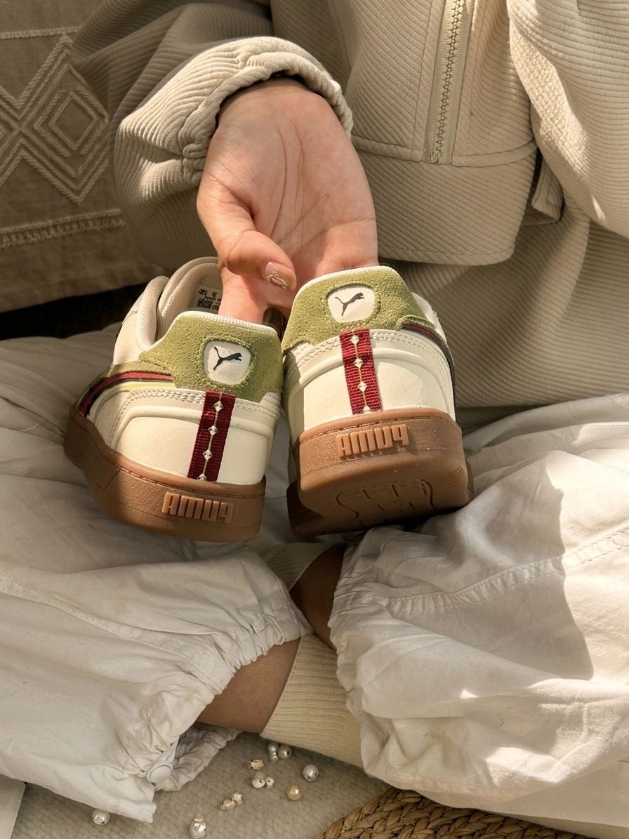 谁懂啊!PUMA这双拼色板鞋真的长在我的审美上!👟 奶白底色+藏青/果绿撞色拼接,自带复古滤镜感,完全不是那种死板的小白鞋! 网面透气设计,春夏穿巨舒服,暴走一天都不闷脚。 经典板鞋版型,修饰脚型绝了,不管搭牛仔裤还是运动裤都巨好看。 学生党、打工人闭眼冲,这波真的可以直接锁死!💚