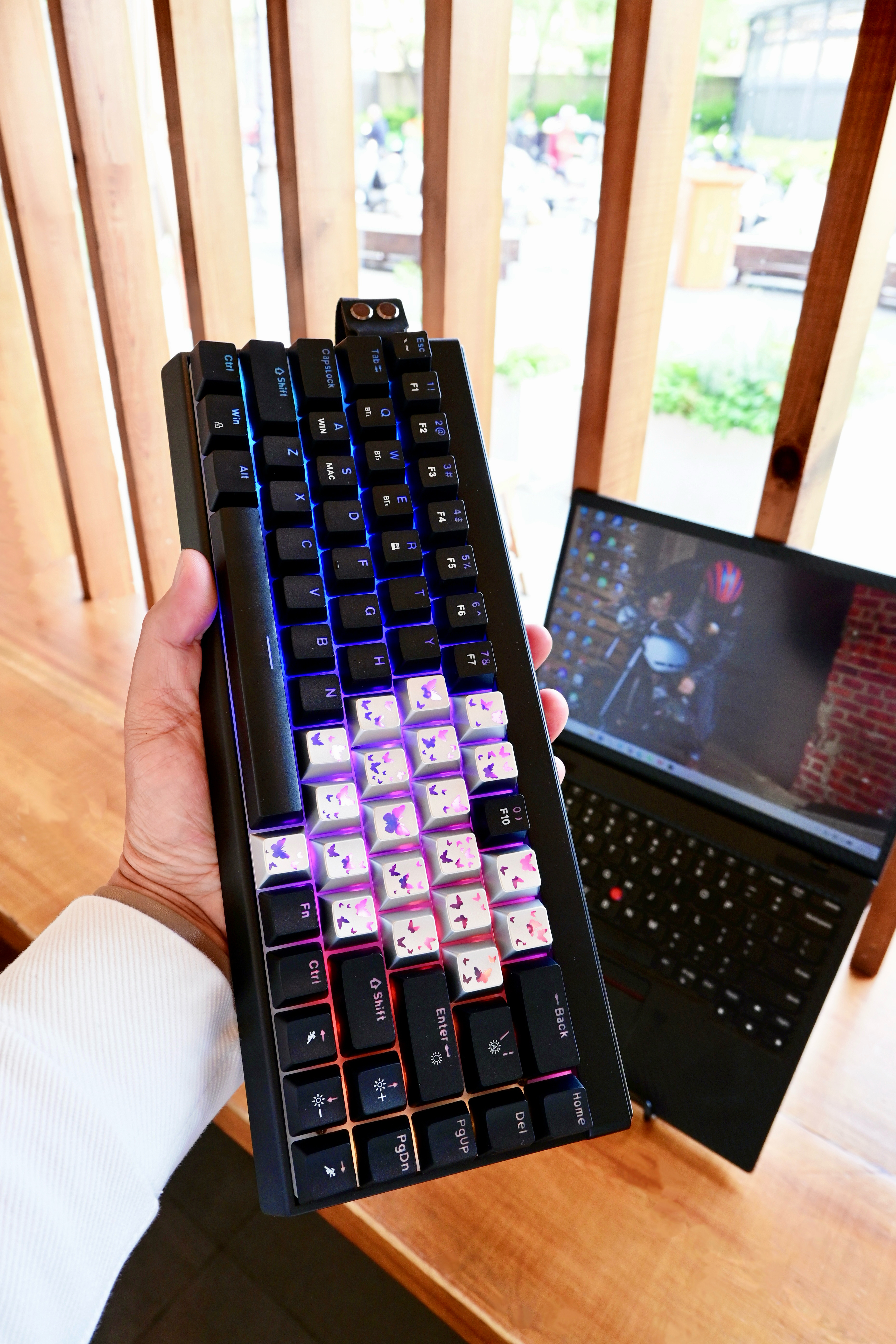 纯误打误撞,给笔记本玩吃鸡配了前行者DK68这款小键盘。它真的太省桌面了,咖啡馆窗前的小窄桌放它都显得空间富裕。塞包👜出差带着也毫无负担,游戏迷有福了。 ⌨️黑底配银色蝴蝶🦋键帽真的帅到没朋友,上手那一刻我只想连喊三声:选对了!选对了!选对了! 青轴这咔呲咔呲的脆声,比麻将声还清脆,每一下都像在敲脆脆冰🧊(那种刚拿出冰箱的冰格,轻轻一敲,脆呀),打字越敲越上瘾。三模连接,2000mAh大电池,...
