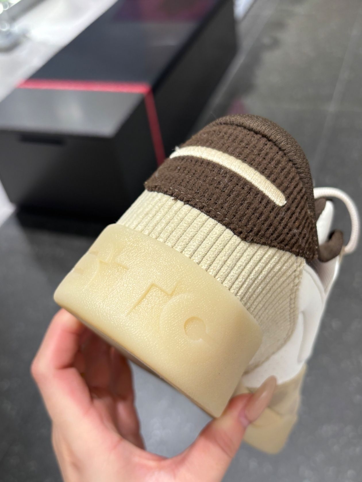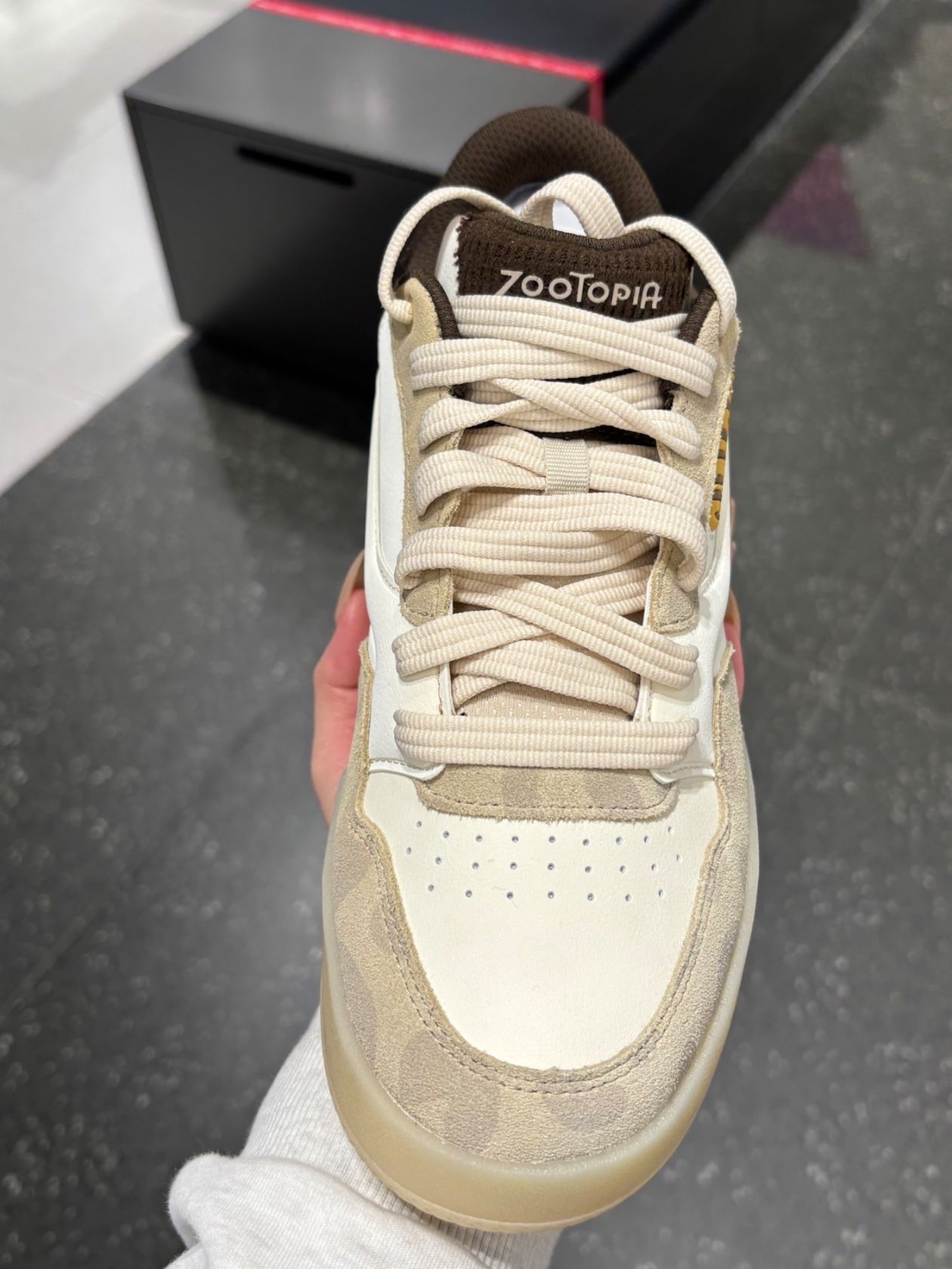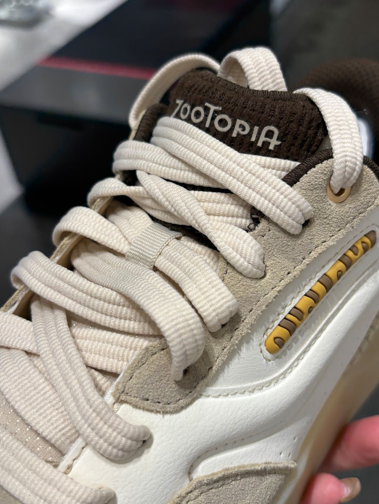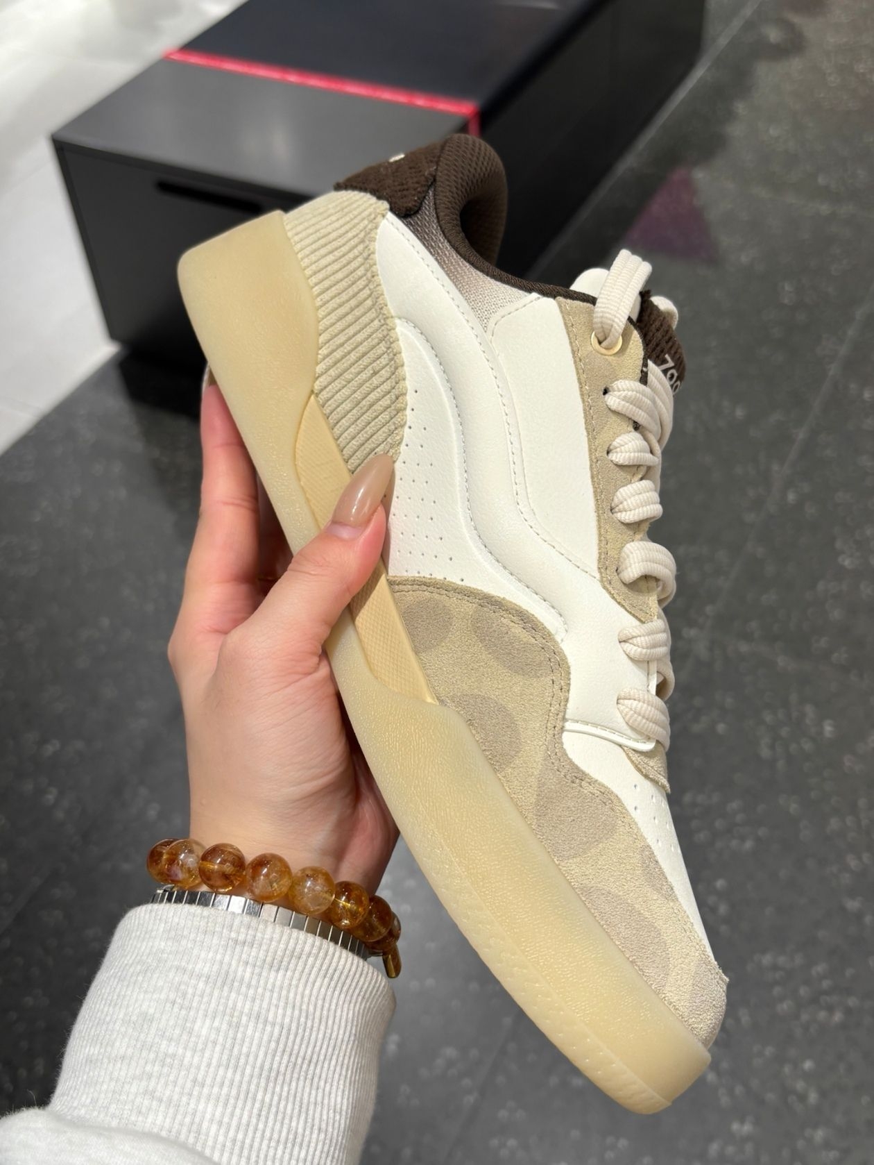 比较厚实,鞋码就按正常的来。 整体是偏米白色一点的, 算是比较简约的一款版型, 部分的细节挺戳我的