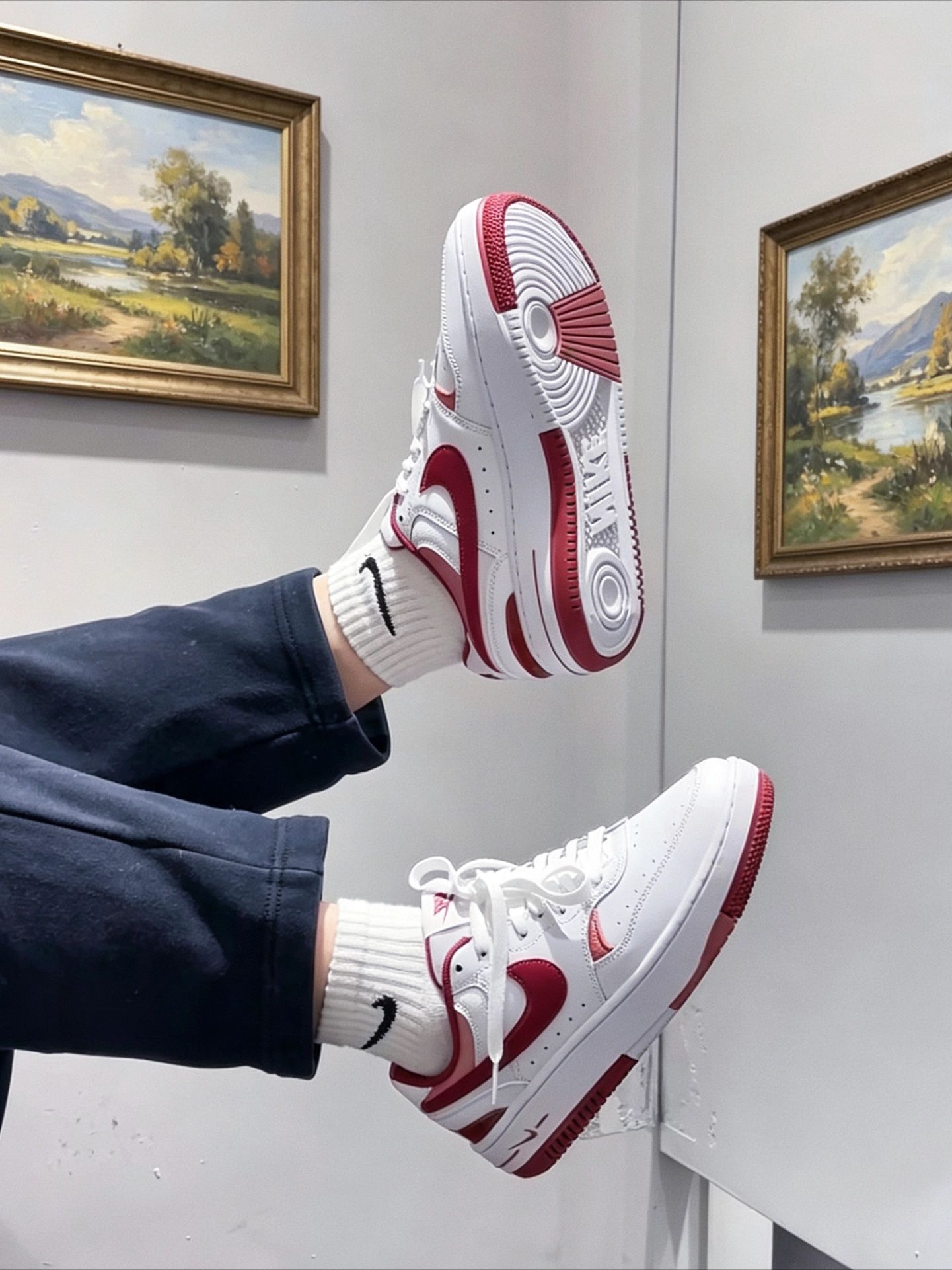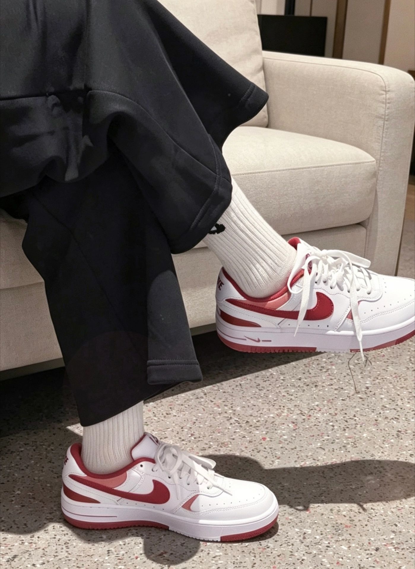 显腿长还耐造!Nike这双板鞋真的超喜欢💕|||救命!这双Nike白红厚底板鞋真的把「复古氛围感」玩明白了☁️ 谁懂啊家人们!白红配色真的是永不过时的经典,奶白鞋面搭配酒红撞色,复古感直接拉满,厚底设计不仅显腿长,还把鞋型撑得超利落,上脚秒变韩系穿搭博主 鞋面是质感超棒的光面皮,摸起来软乎乎的,不仅颜值在线,还巨好打理!日常脏了一擦就干净,懒人也能轻松驾驭,完全不用费心保养 上脚轻盈不压脚,鞋...