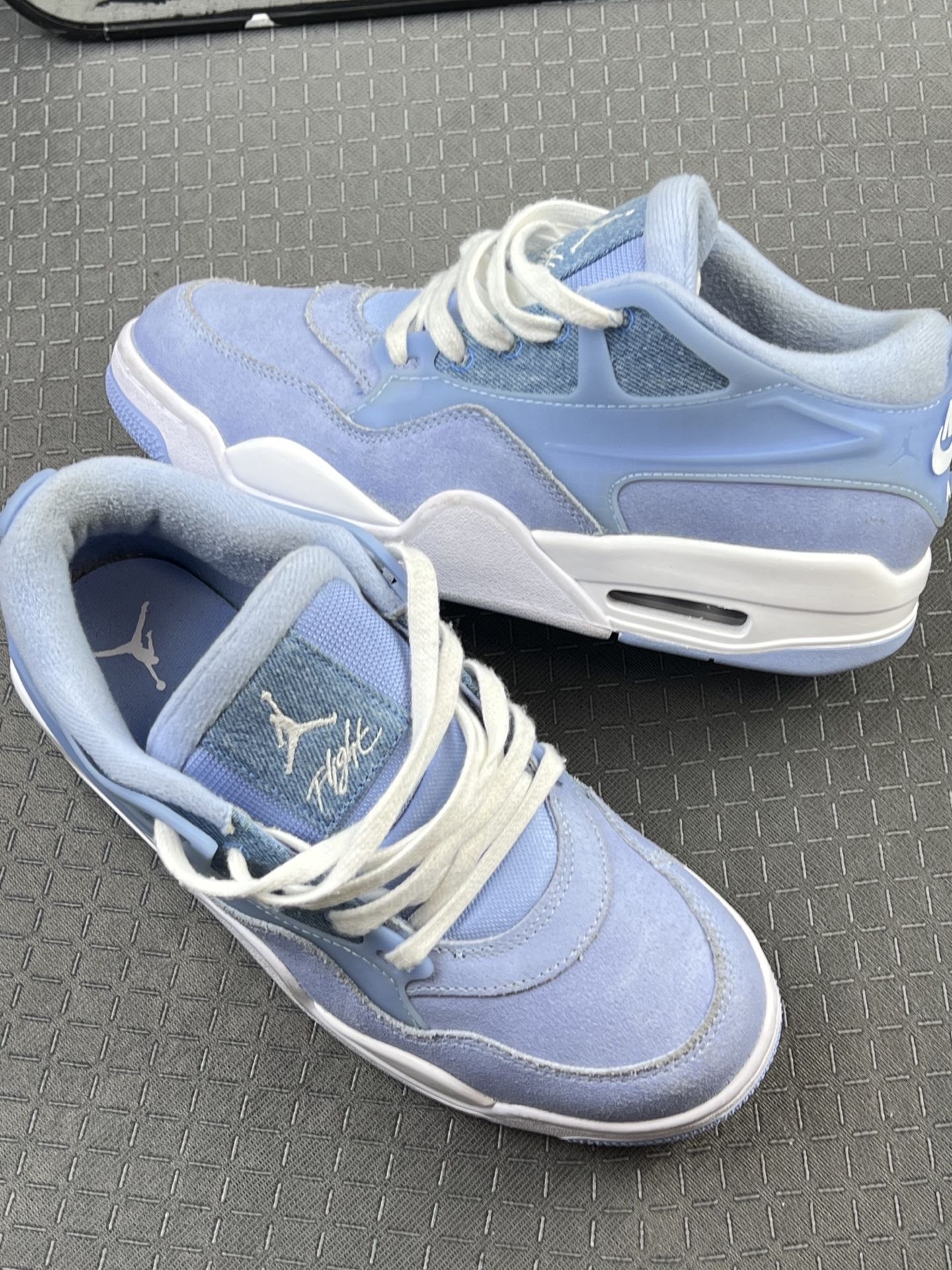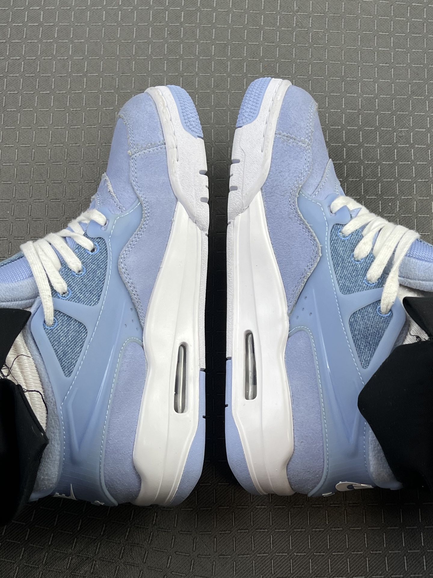 AJ4冰蓝复古篮球鞋朋友细看做工,总觉得鞋型不对原版|||身边同事上手对比之后,觉得鞋款走线、麂皮质感、气垫细节都不对原厂版本。鞋型上脚很修饰脚型,冰蓝配色清新耐看,自己分不清版本区别,有没有大神帮忙分辨一下。#老铁们帮忙鉴别一下 #快速区分鞋子的真假 #aj冰蓝 #求大神鉴别 #冰蓝AJ