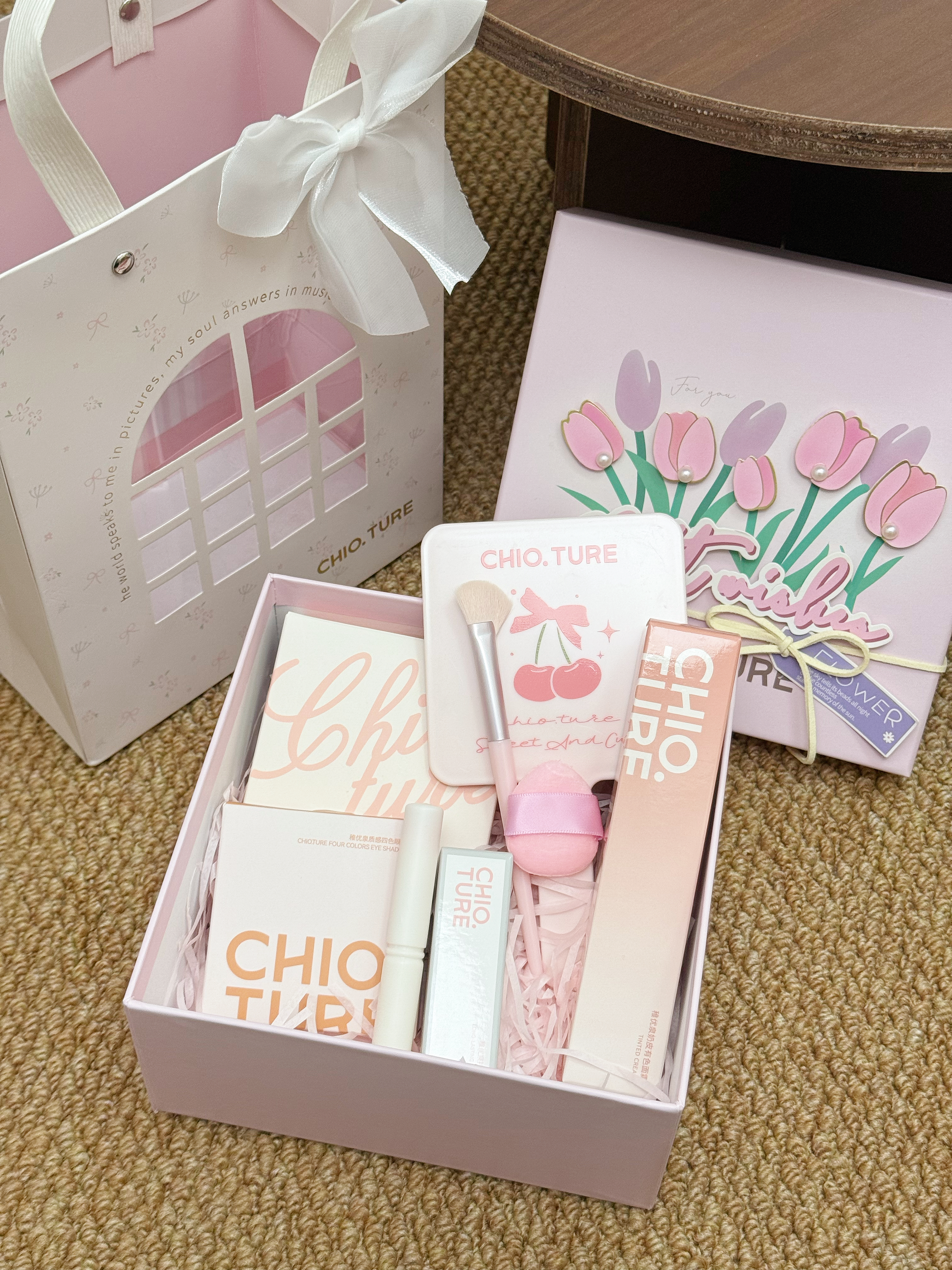 就是稚优泉的礼盒呀 粉粉嫩嫩 少女感一下拉满洛 是个彩妆礼盒呦 里面有八件套 色系敲元气喔 日常和约会都好适合呢 自用或当礼物都适合