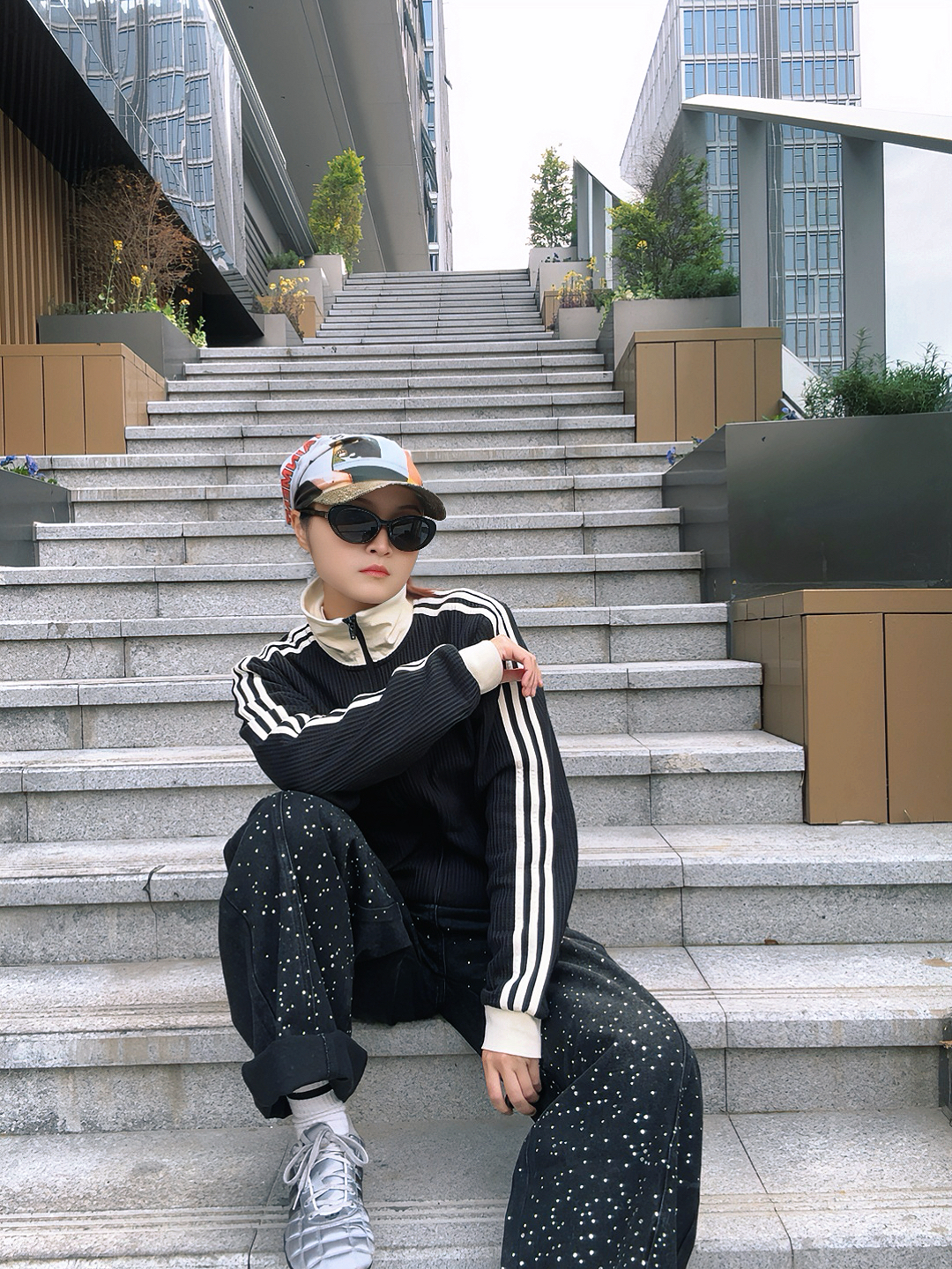 春季出街就是要松弛✨慵懒 最近爱上了黑白色系搭配⚫️⚪️ 方便舒适还不失潮流感 和朋友出门打卡都说我能原图直出了 其实我的秘密武器就是墨镜🕶️了 这款 GUESS 猫眼墨镜上脸不仅修饰脸型 还能给整体造型加层酷感buff 最重要的是遮盖我的表情缺点 更好出片🤳 不管是坐台阶拍还是日常出街 氛围感直接拉满 快给自己安排起来呀!