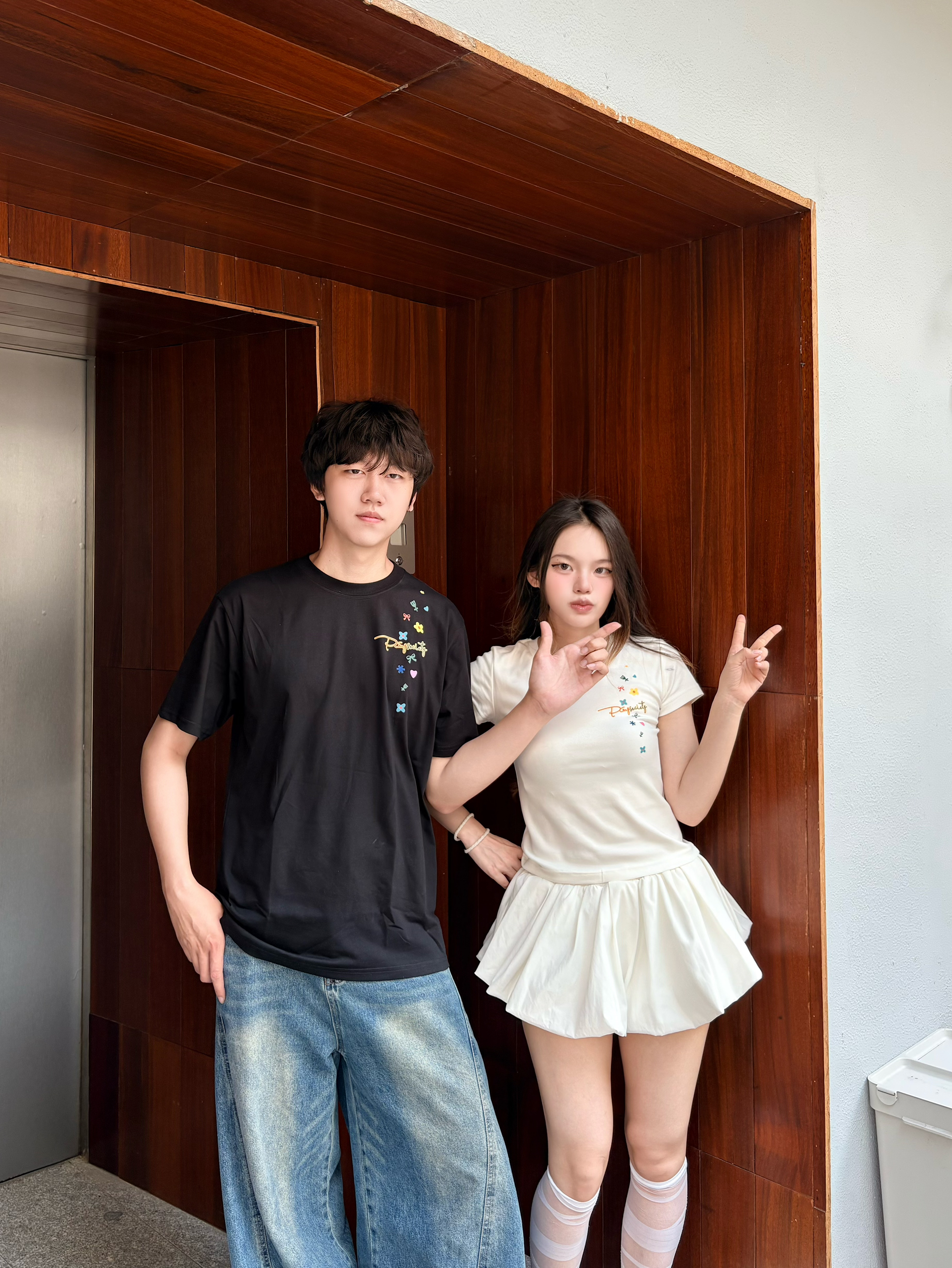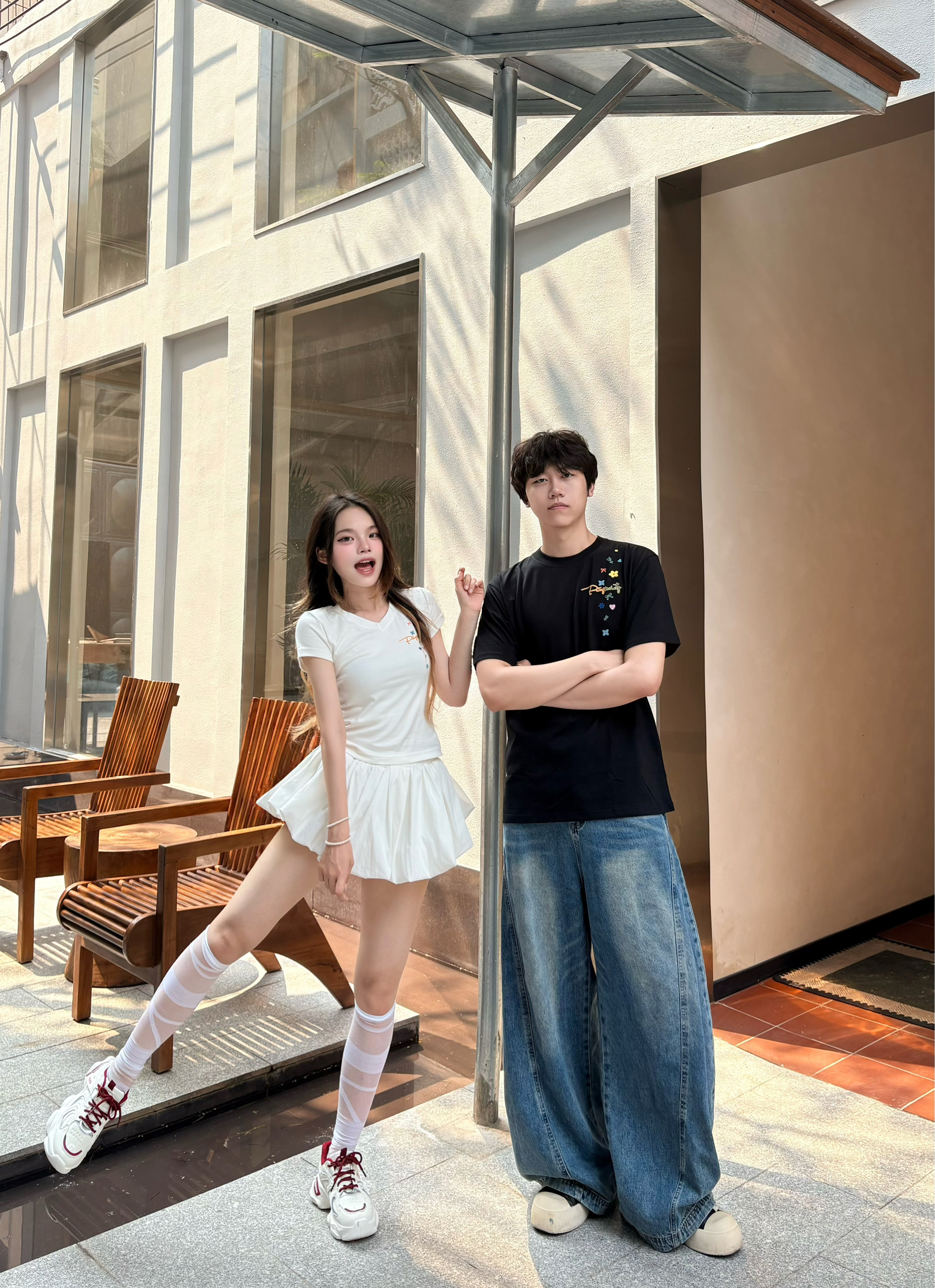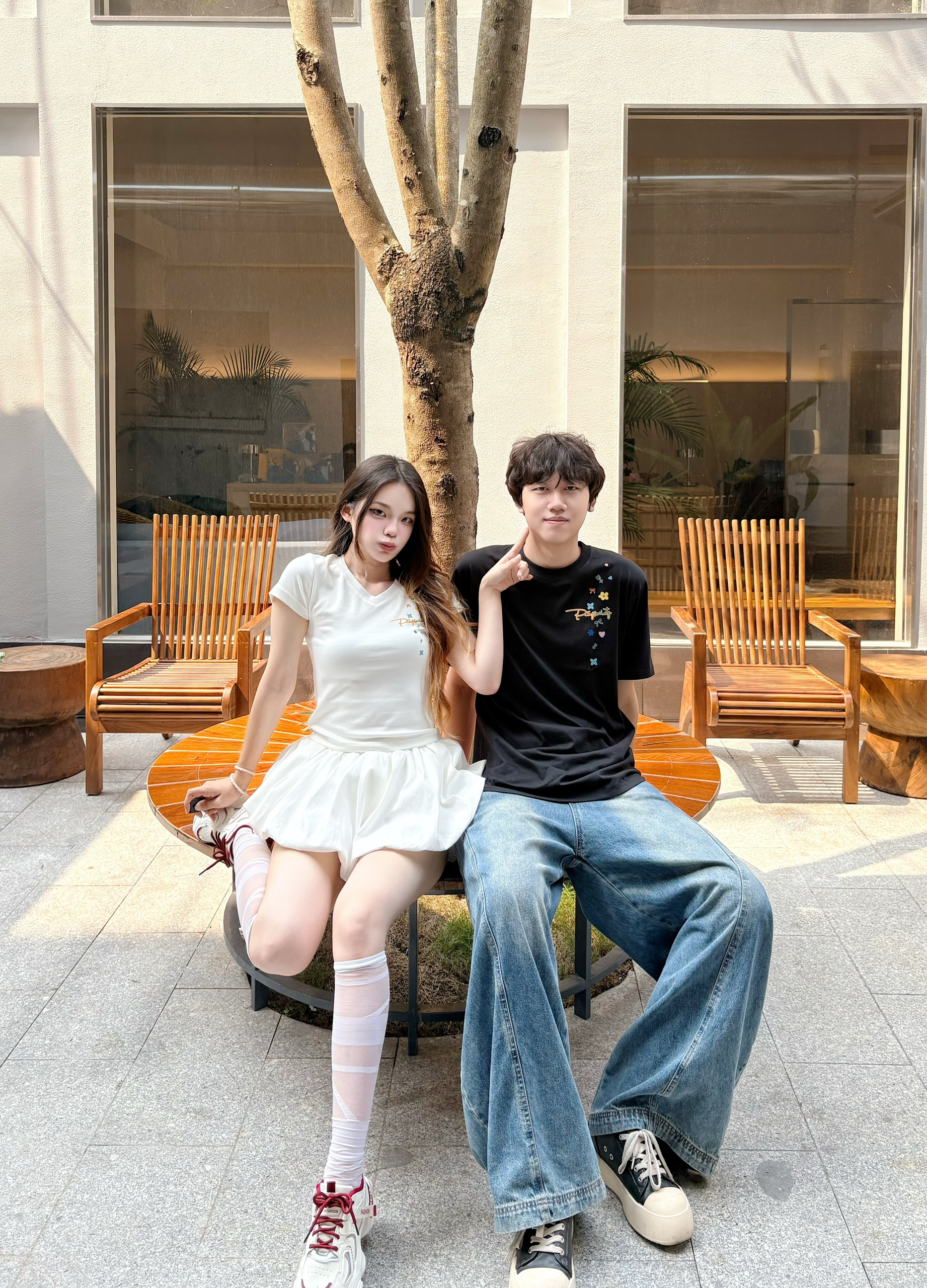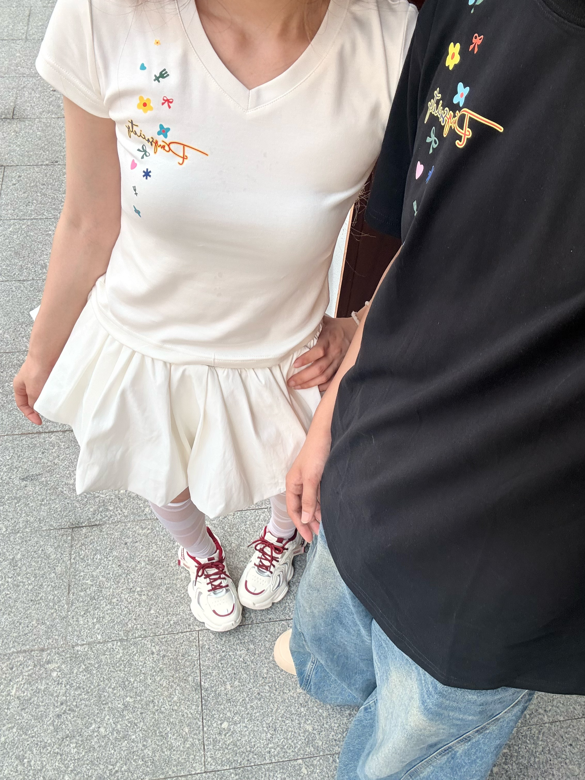 hihi 今天是情侣装ootd分享👫 ✨我的穿搭思路&小心机: 1同色系呼应:黑白经典配色不挑人,情侣同穿辨识度满分,出街就是焦点✨ 版型互补:女生修身款凸显腰线,男生宽松版藏肉显瘦,高矮胖瘦都能穿👌 细节加分:简约字母印花不浮夸,日常通勤、约会拍照都百搭,实穿性拉满💯 我165/96 男朋友186/145
