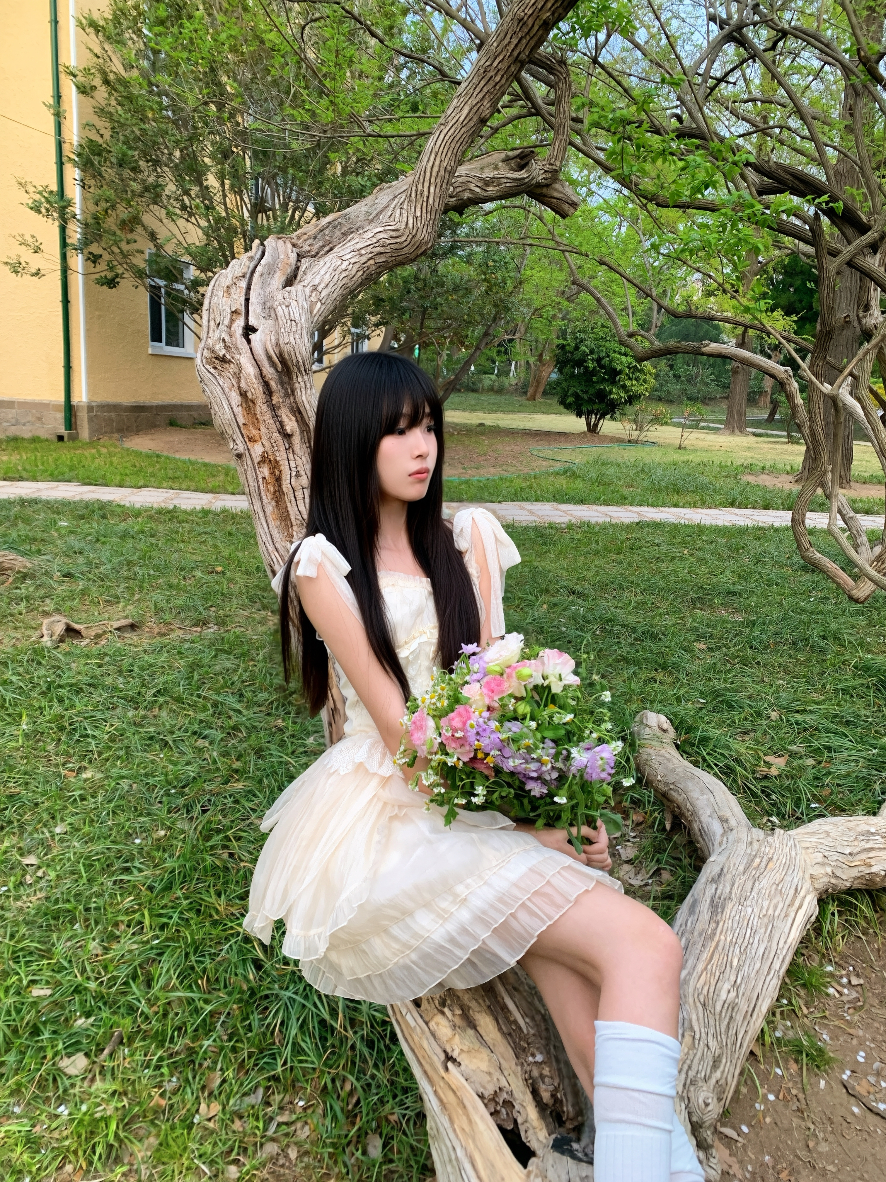软乎乎的蕾丝面料不扎肤,鱼骨收腰设计狠狠掐出小蛮腰,穿上直接变身温柔公主👸 裙摆飘飘的,在户外自然光下拍照巨出片,自带仙气感!