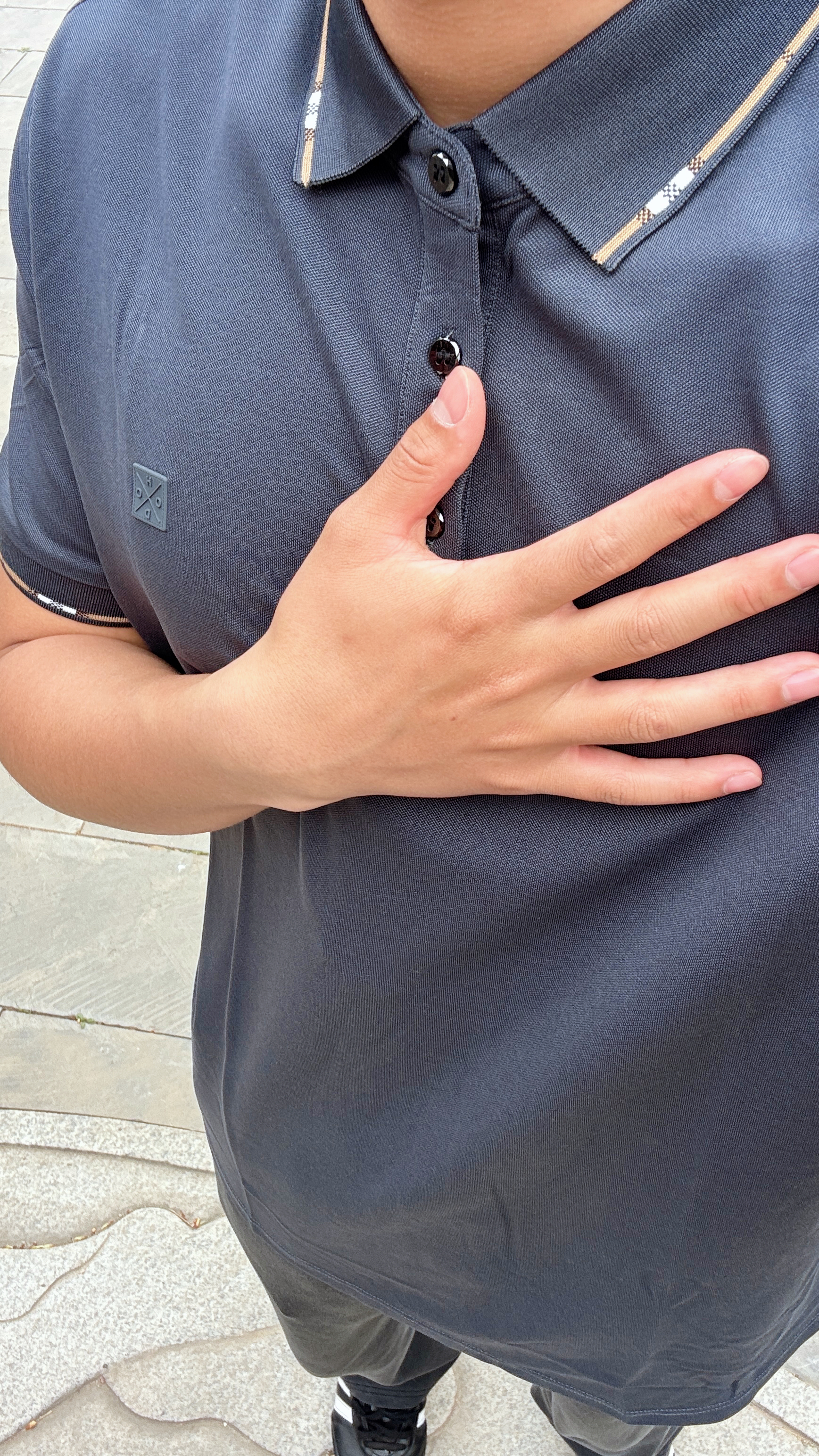 爸爸穿这件速干POLO衫,直接回到年轻时代👨 夏季透气不闷汗,藏蓝领边金纹超显质感,96A码 修身不紧绷,轻薄亲肤如第二层肌肤😎这款POLO衫采用冰丝速干面料,透气排汗不黏腻~藏蓝主色+领边金纹撞色,低调又高级✨ 180cm/70kg穿96A码刚好修身,日常通勤、户外休闲都适配,送爸爸/老公的夏季质感之选!🎁
