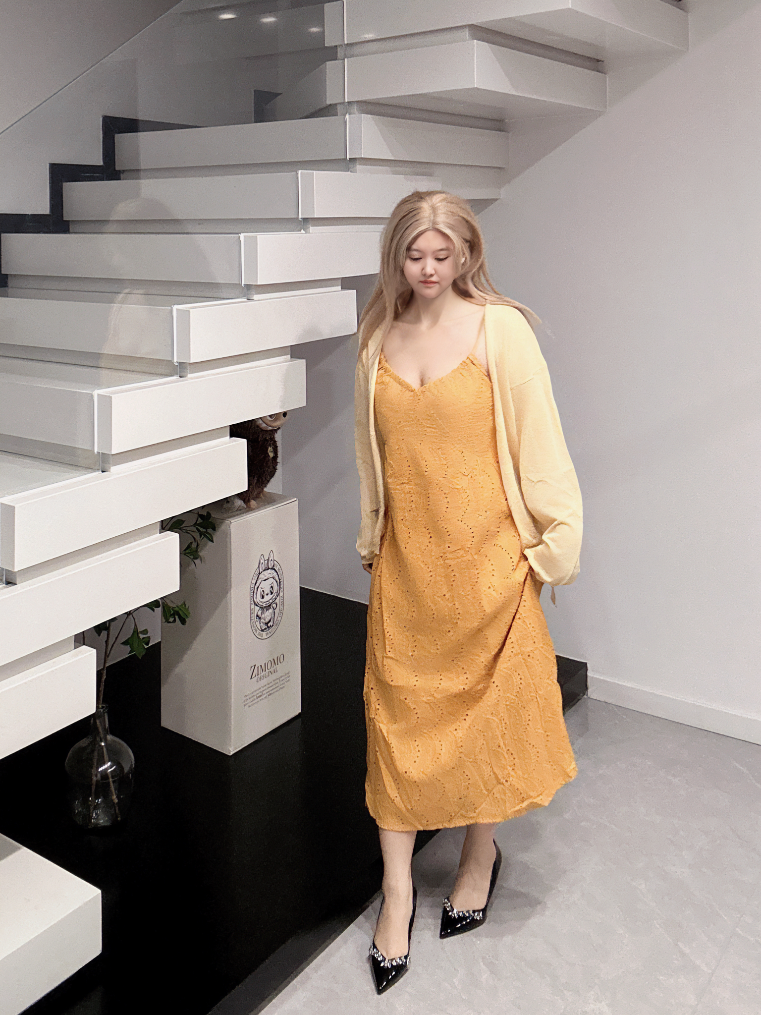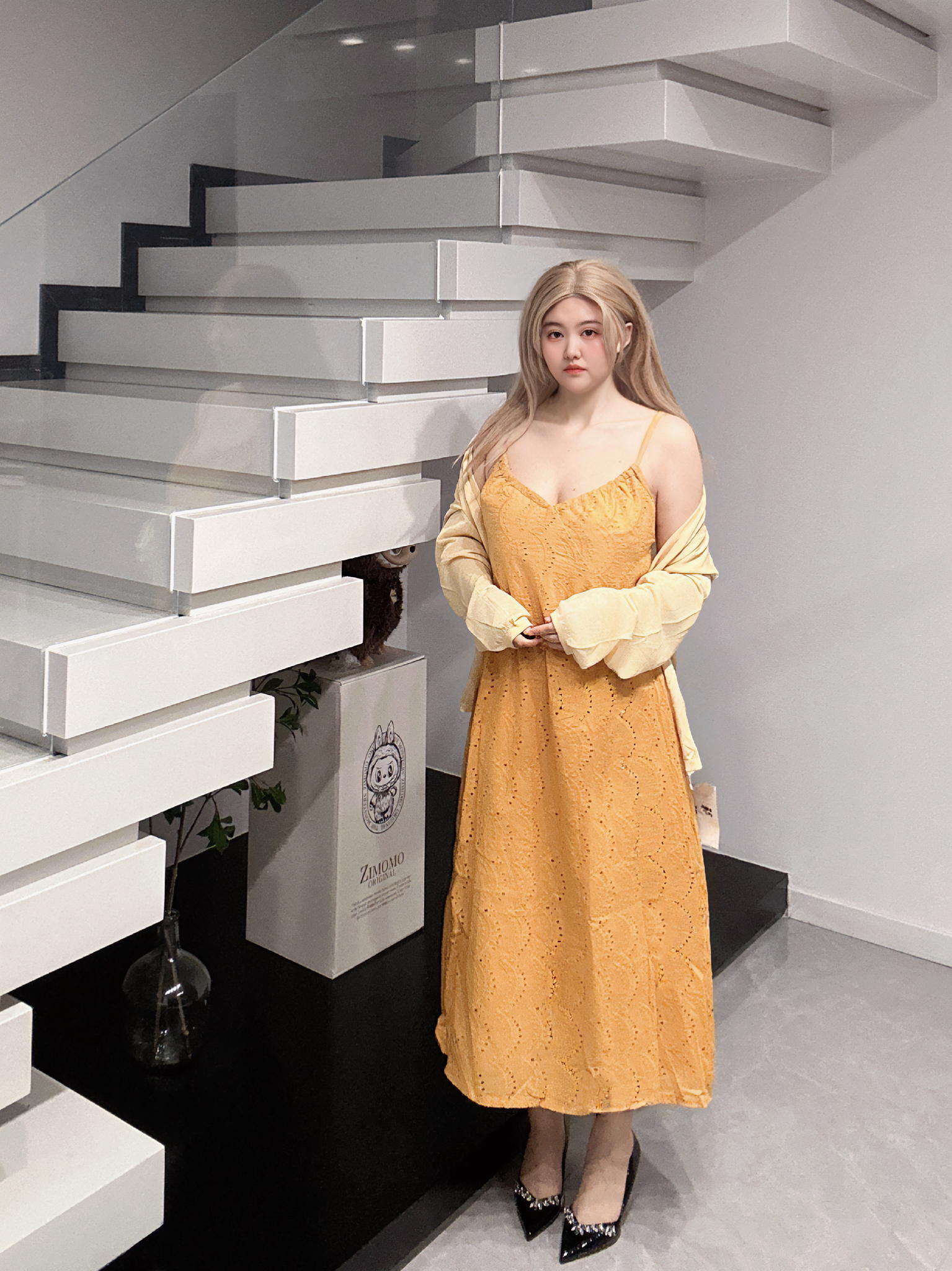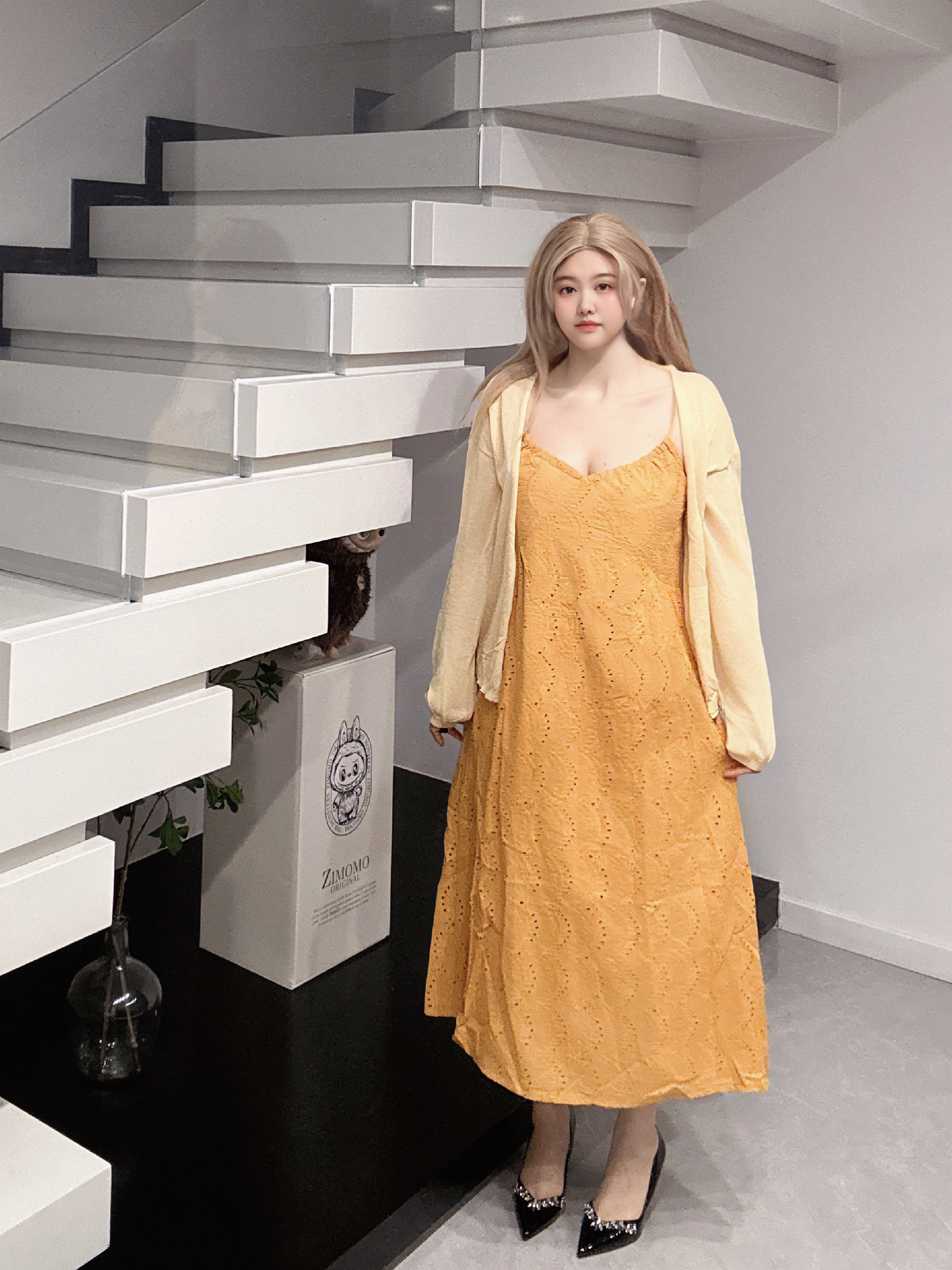 ~ 好好看!长裙Q这一套真得好美啊!!! 当时一穿上我就特别喜欢宝 我们胖胖女孩子也能找到好看显瘦的漂亮裙子啦 ~ 而且黄色小开衫简直就是神来之笔,颜色超搭!超夏天! 不刻意强调曲线却自有女性柔美的轮廓! 温柔与得体平衡得刚刚好~穿出了少女感也不缺优雅!