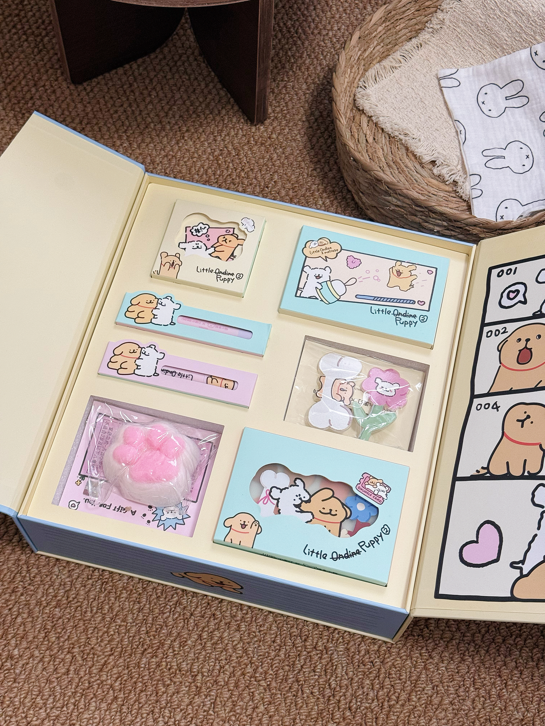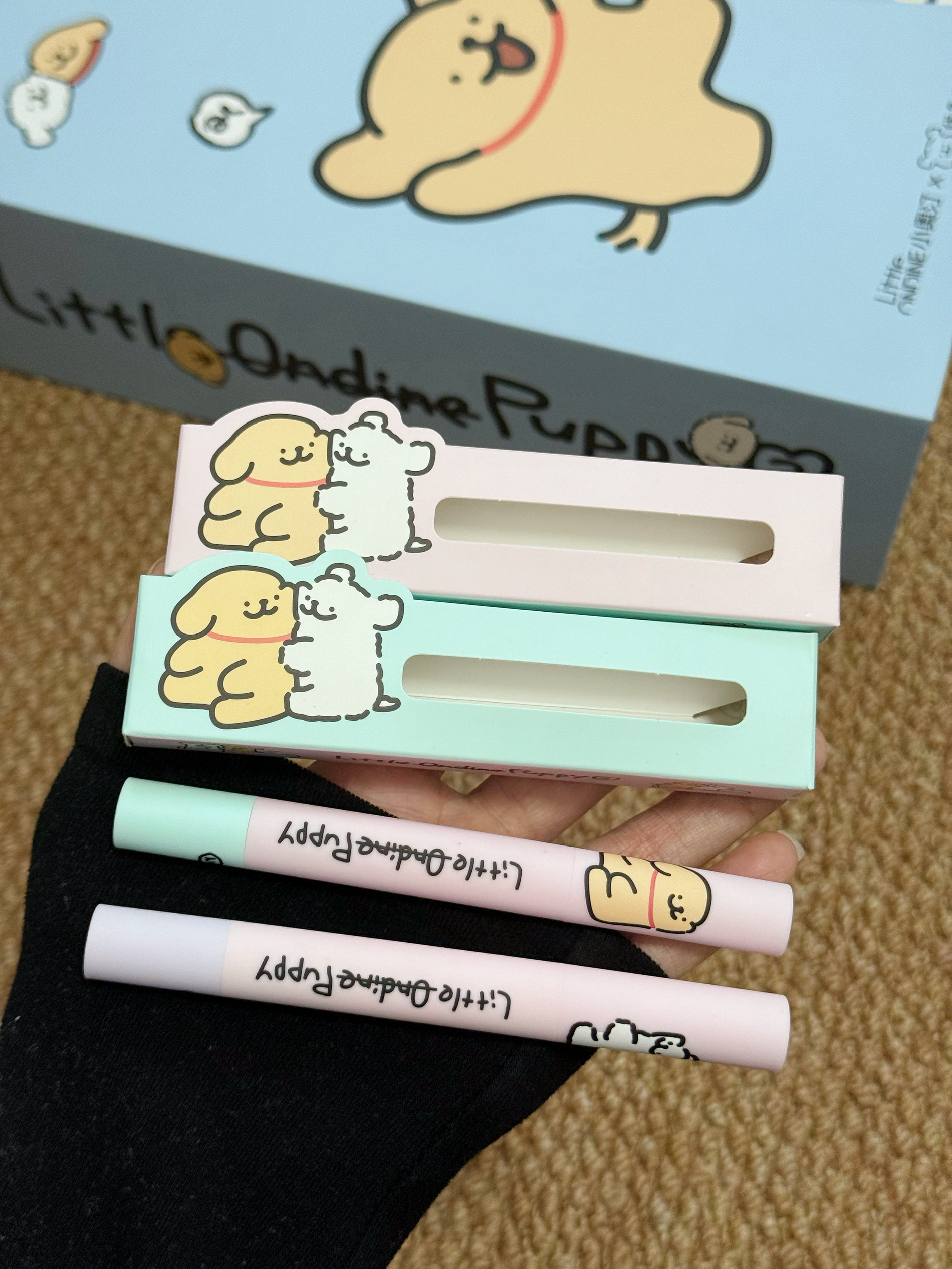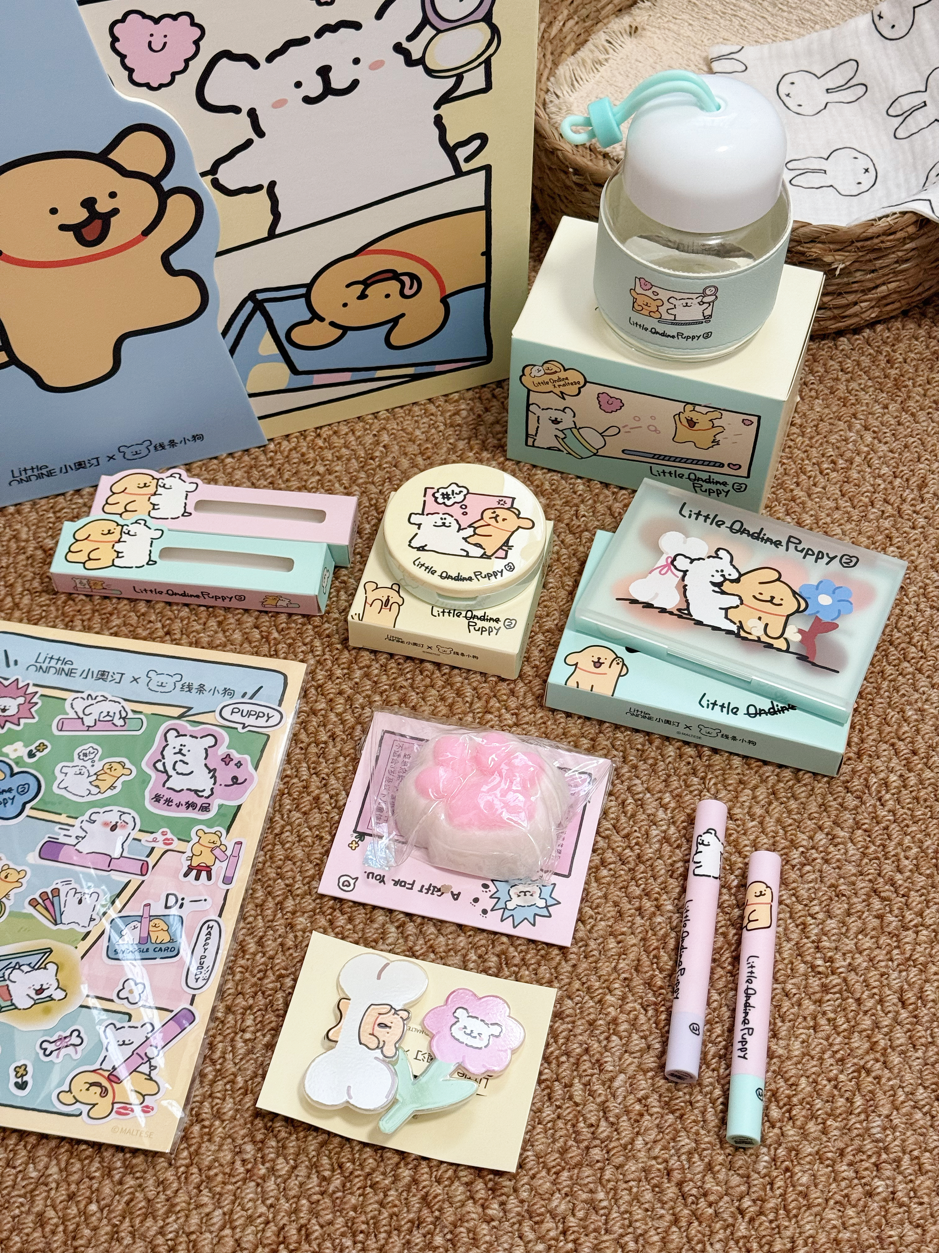 居然是线条小狗耶 小奥汀你也泰会了吧 介个包装看到就走不动路啦 满满当当一大盒 里面有综合盘、高光盘还有两支唇蜜 还有联名的周边产品 好看又实用 每一个都喜欢 是女孩子会期待收到的礼盒呀~