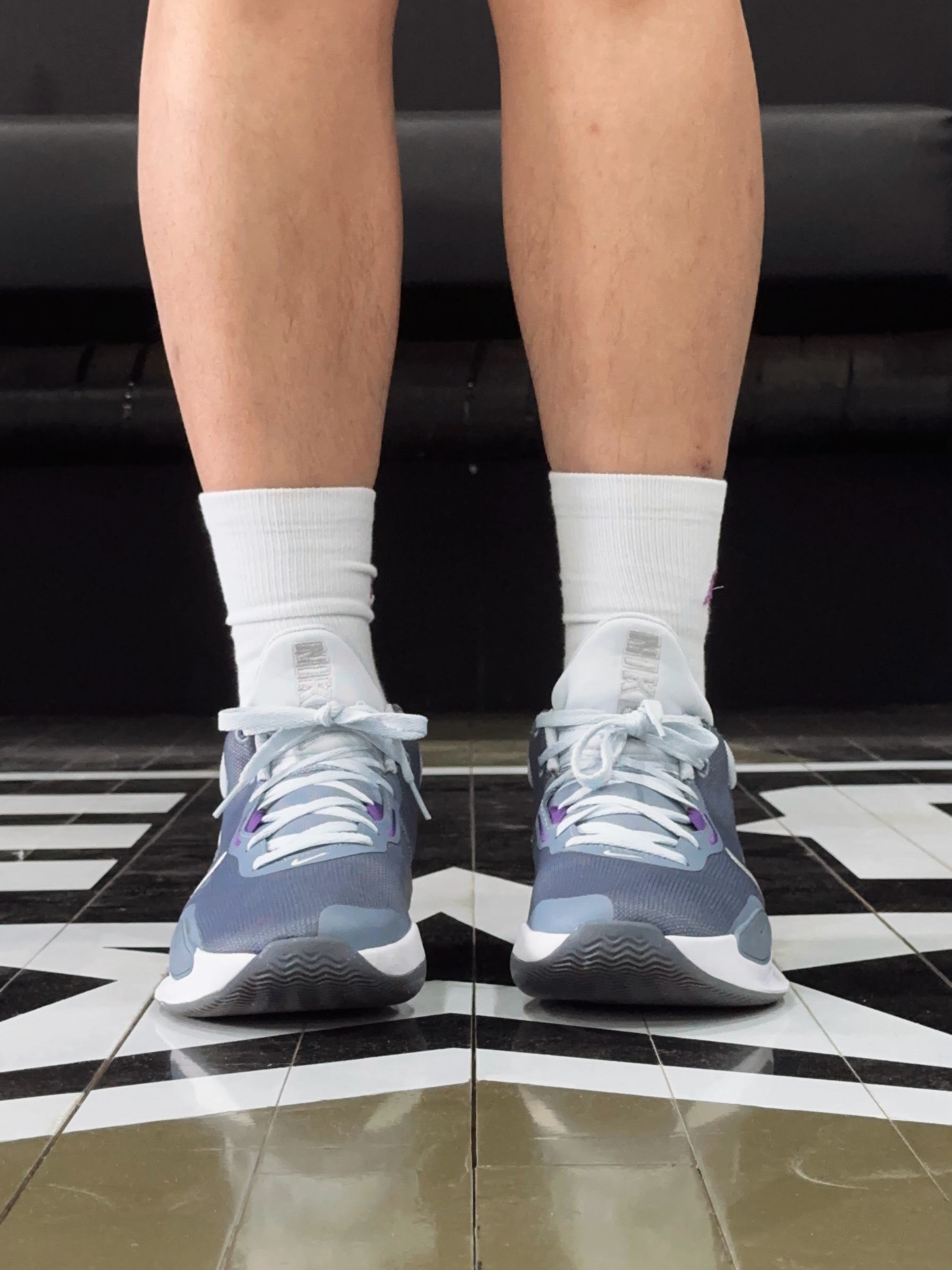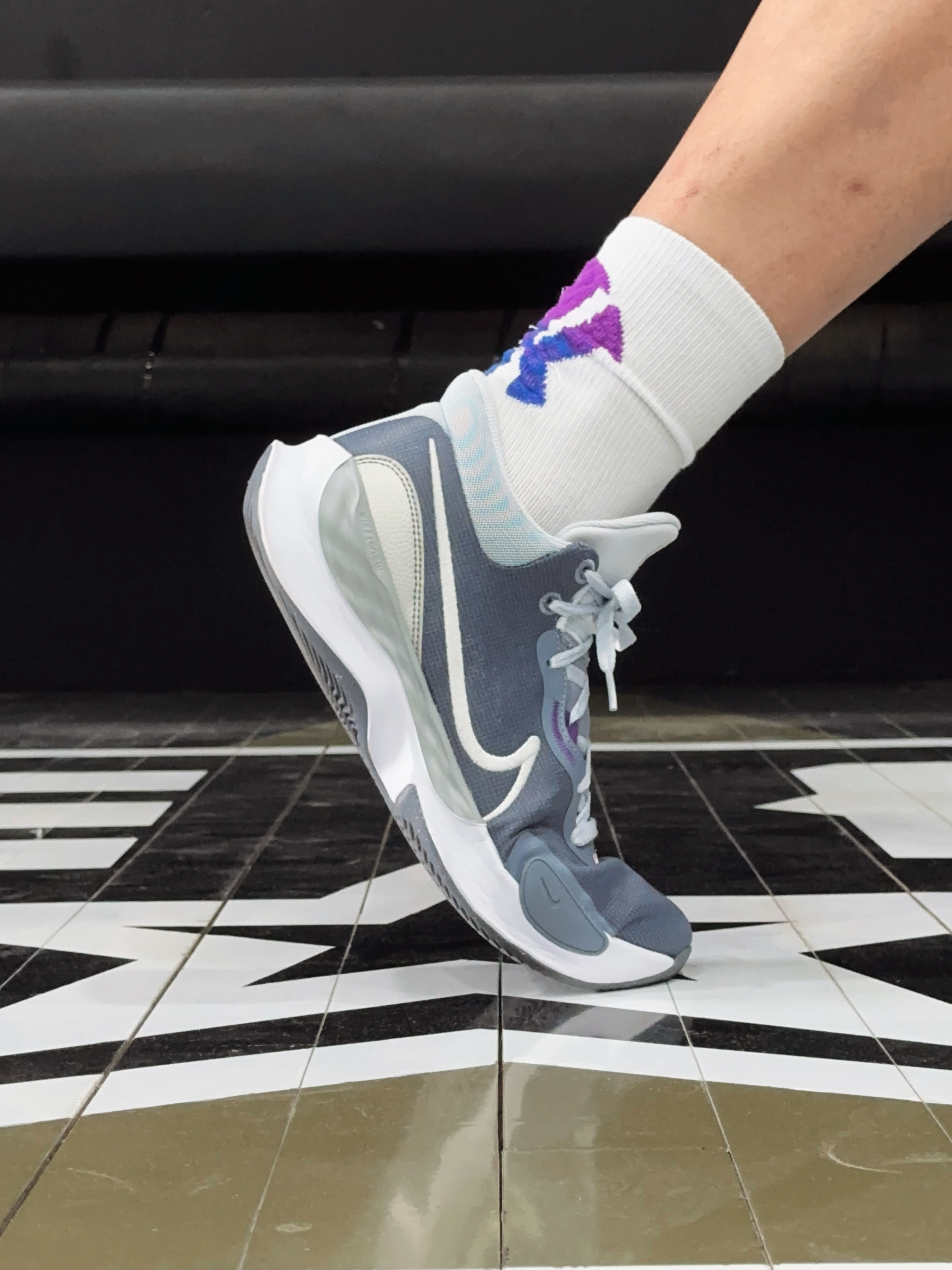 上脚以后我是 45 的 窄脚型 低脚背 扁平足,我穿 45 的鞋正合适,尺码正常不偏码,鞋楦做的偏窄高度合适,所以宽脚型就劝退了,让我觉得做的好的地方在于鞋头圆润,不戳脚趾,所以健康的穿着体验在如今的耐克鞋里比较难得了,静态穿着的时候呈现出前低后高的重心感受,不算低也不算高,适中的厚度是自然的,就算是日常穿着也没有影响! 缓震方面:那就是轻体重的范围内了,前掌落地能够感受到一点点的场地...