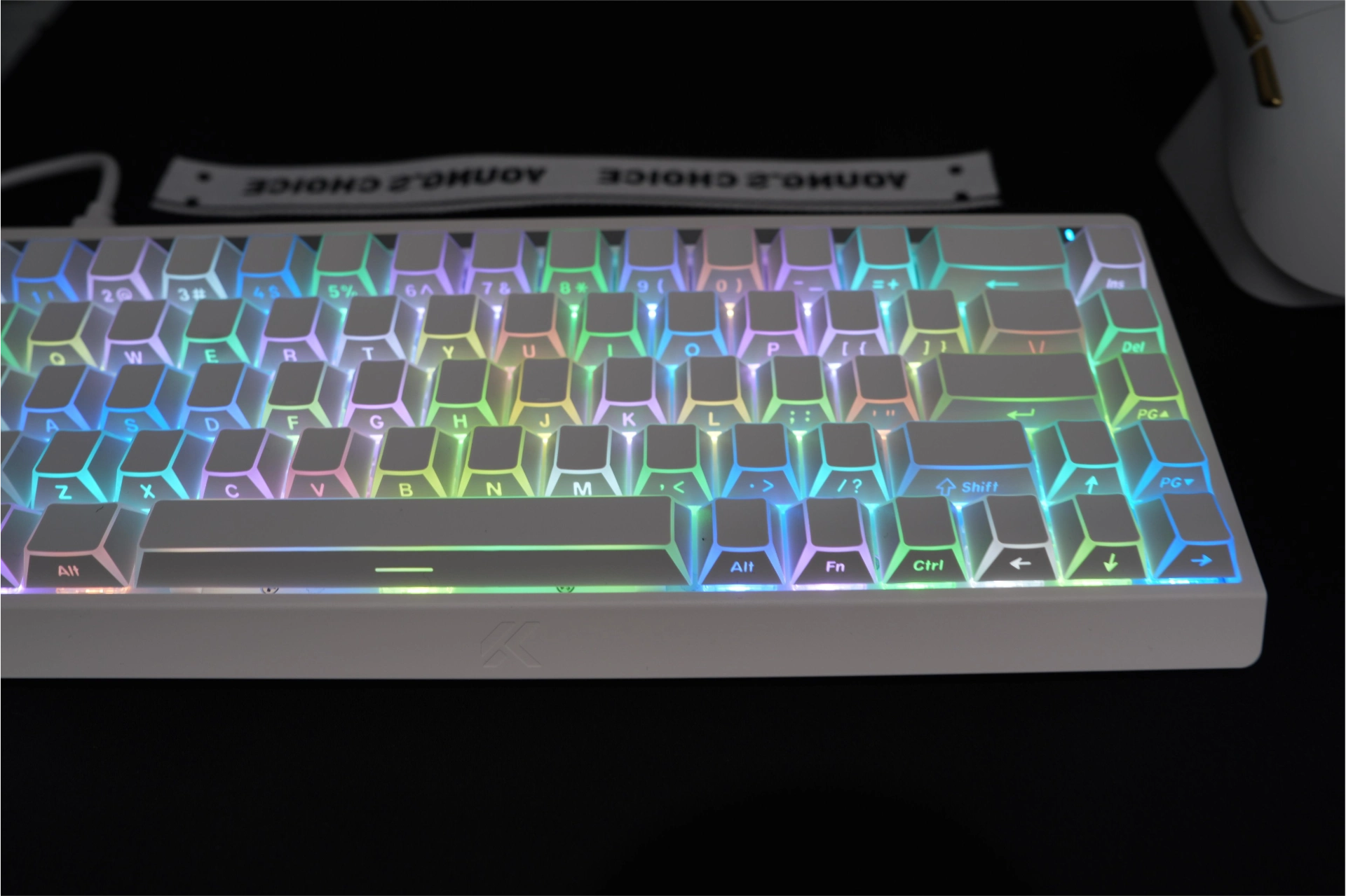 #数码创作淘金计划 白折影才是RGB玩家的本命键帽💡「折影」之名,源于几何折面控光设计——光线经棱面如棱镜折射,漫反射出有方向感的冰晶光影❄️,几何美感拉满,冷白半透键帽,开灯直接炸出满键霓虹⚡,每一颗按键都是一颗赛博彩虹糖🌈68配列紧凑利落,纯白机身干净利落,光影质感直接拉满,桌面潮度焊死 迈从ace68v2外观和迈从ace68基本没有太大的区别,左上角比ace68多了一个rt切换键,...