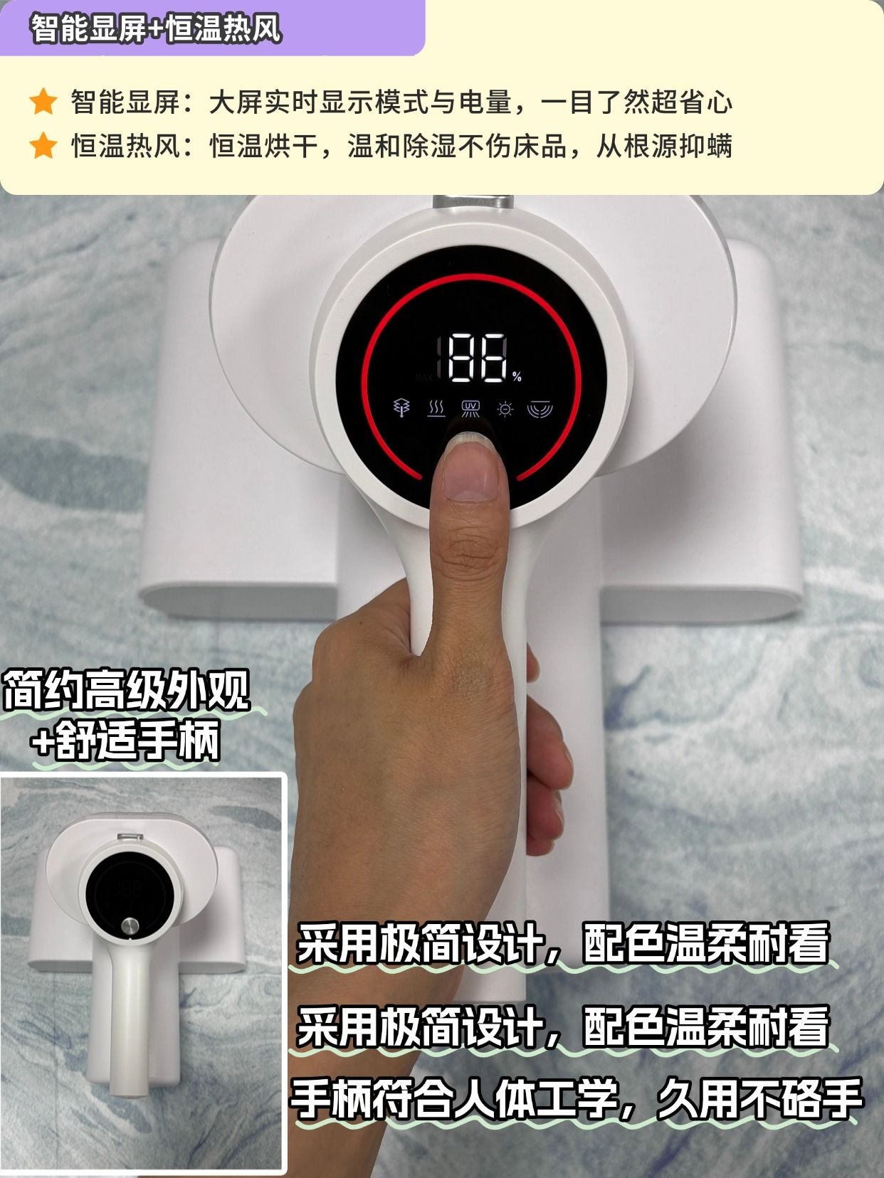 🌬 45°C恒温热风除湿,一边除螨一边烘干,床品、玩具蓬松度提升82.8%,潮湿天也不怕螨虫反复滋生。