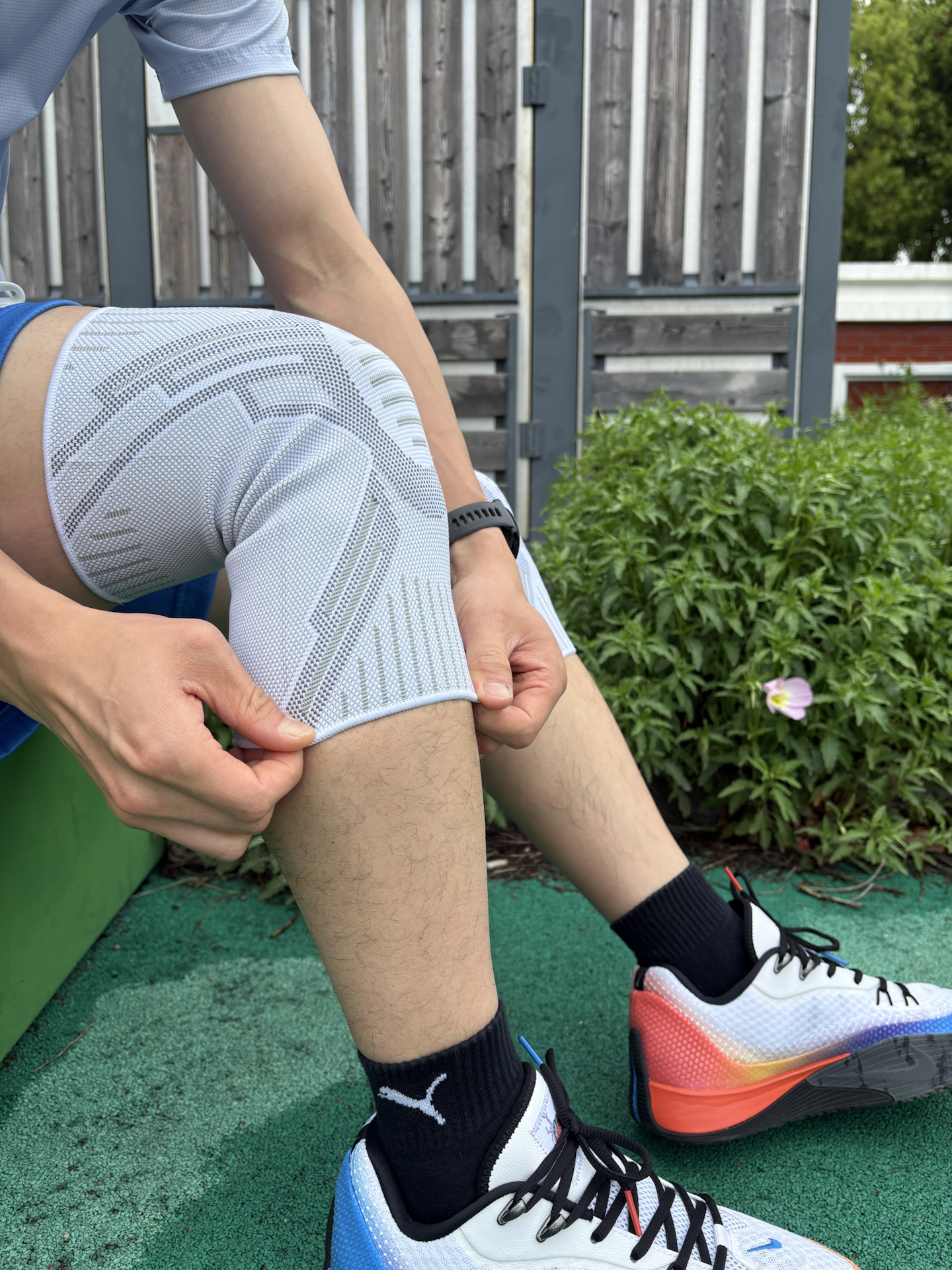 今日护具分享: 耐力克斯的专业运动护膝 透气高弹性的面料设计到位 很适合穿戴着进行各种运动 即使夏季也不怕闷汗 整体都是比较适当的加压 对膝盖和周围肌肉都有保护作用 运动防护少不了!