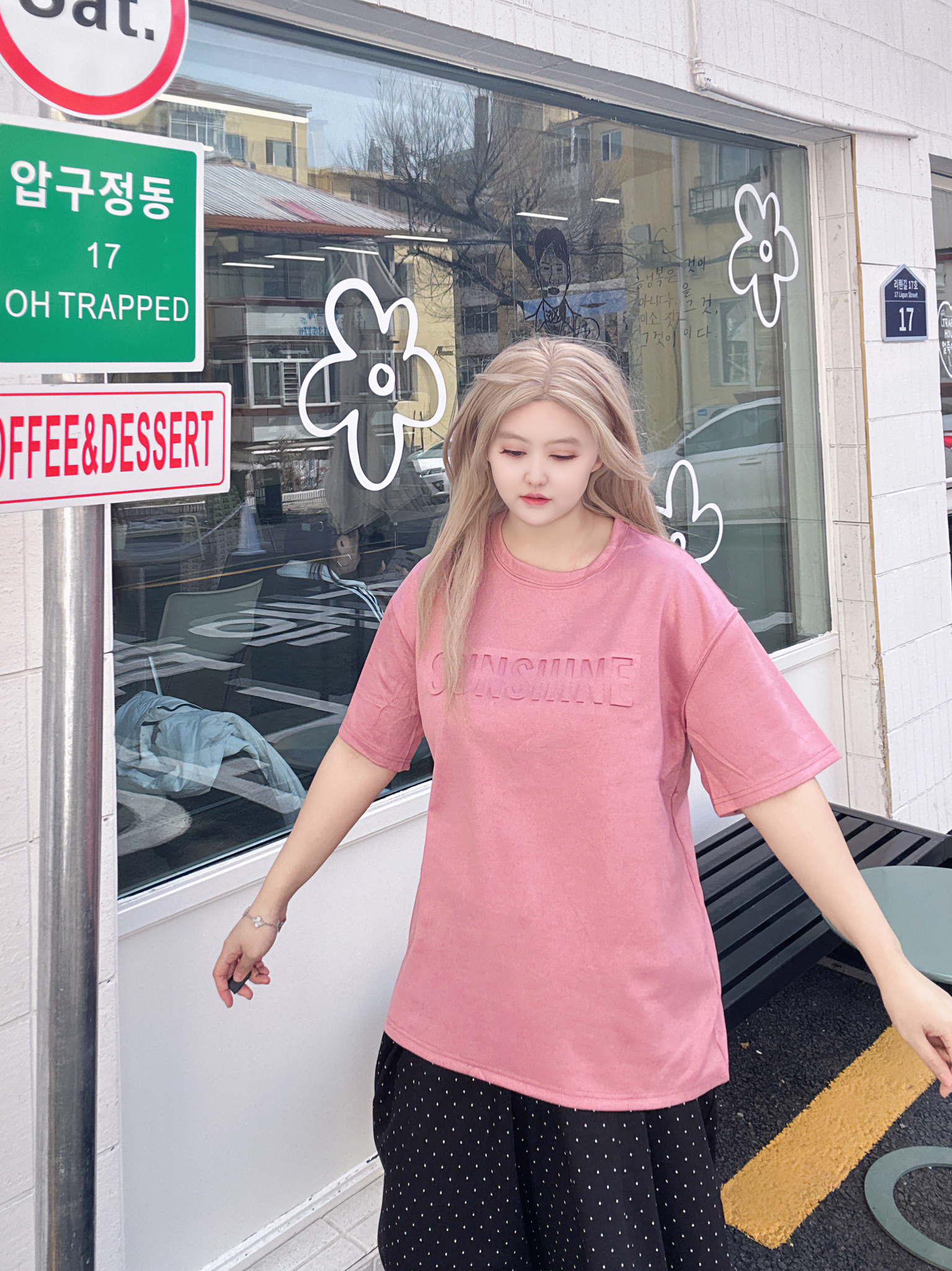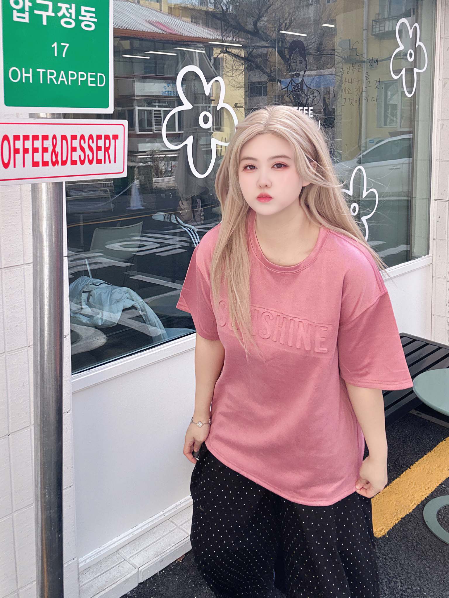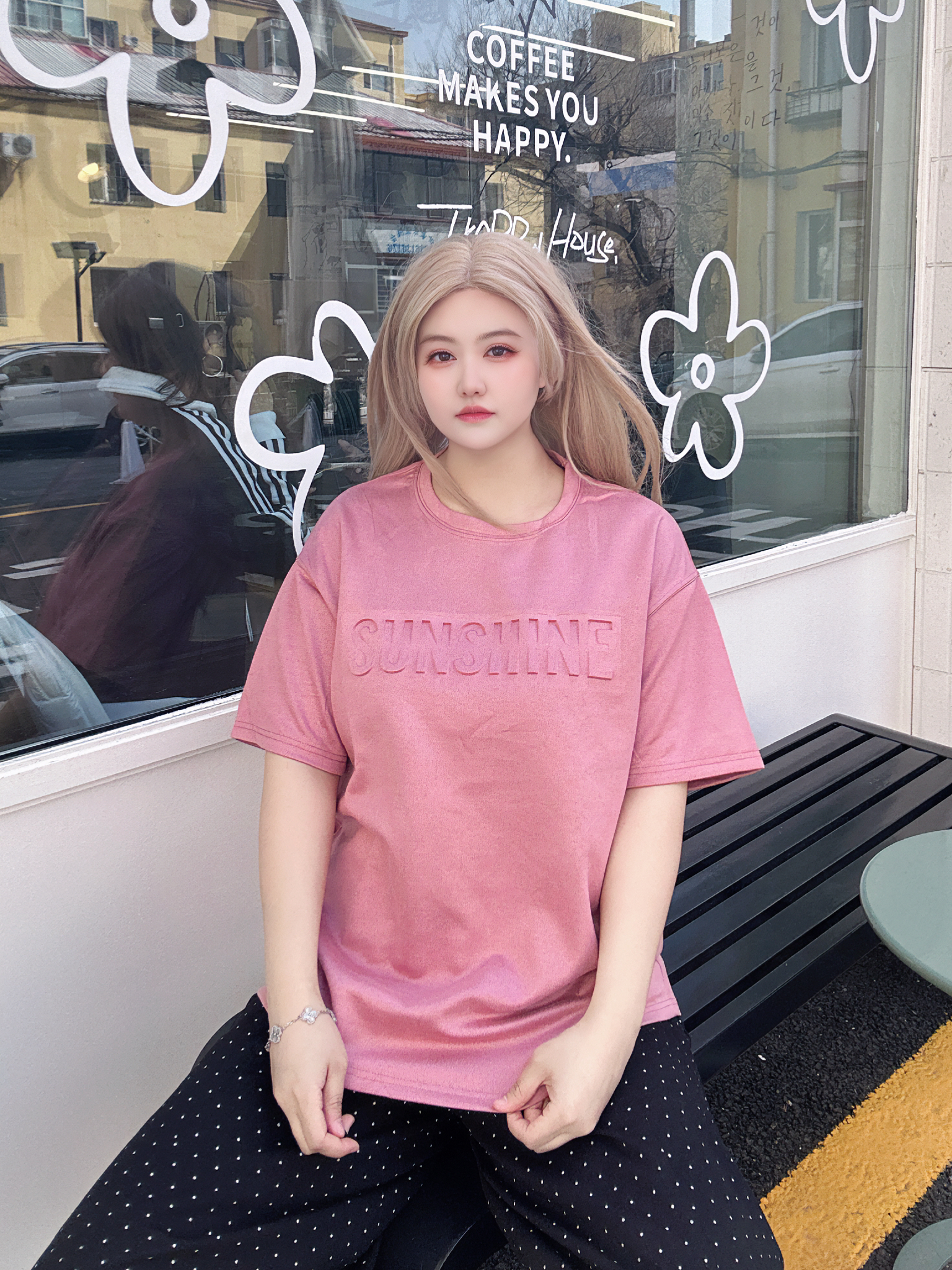 好喜欢我的粉色短袖啊! 配色也太亮眼了,一整个抓人眼球! 搭牛仔裤工装裤休闲裤都OK!! 春夏好难拒绝粉色下~ 上身好减龄~ 而旦宽宽松松的版型又很藏肉肉~不仅很好搭上身也不会显黑! 170/120/