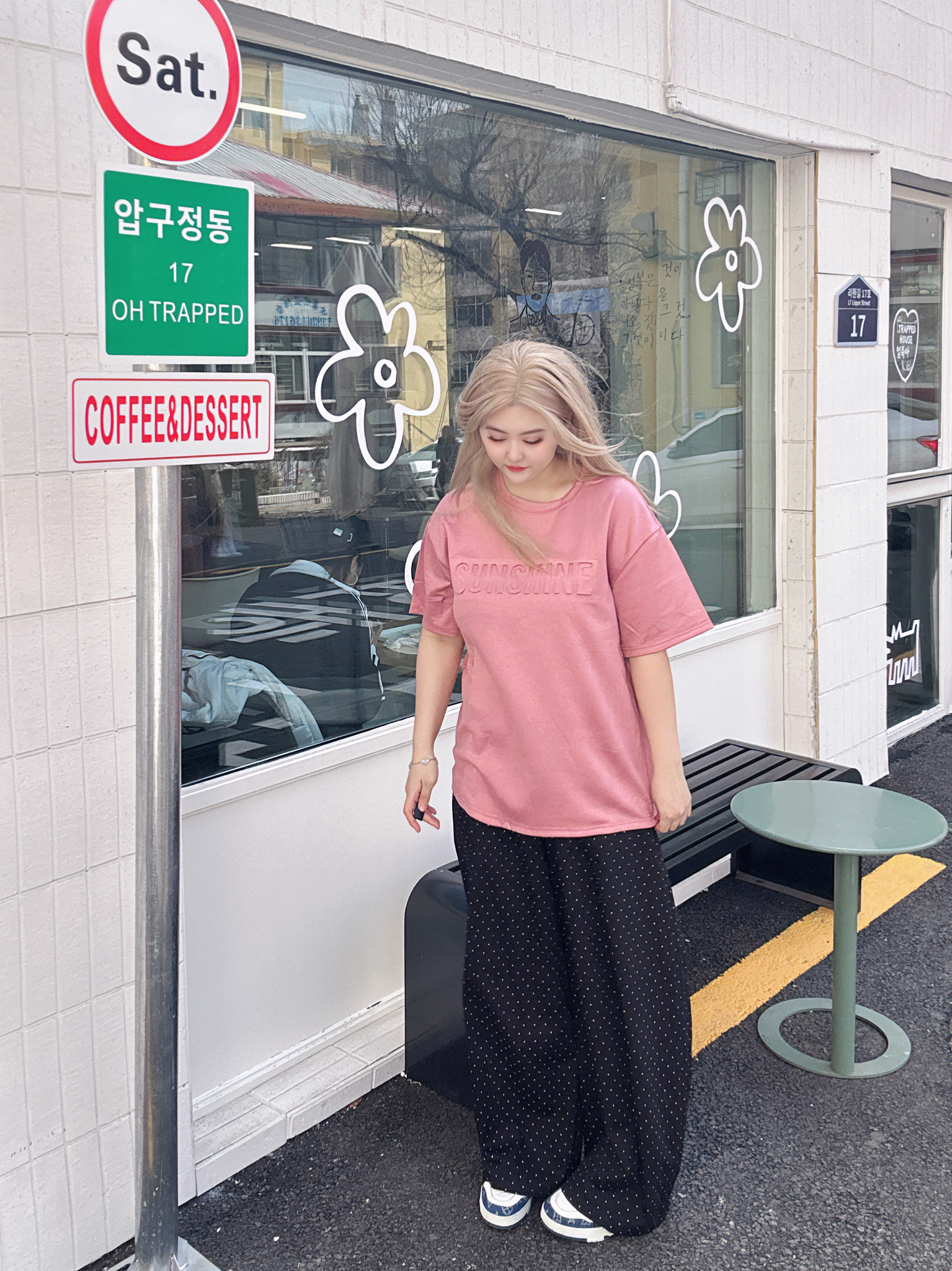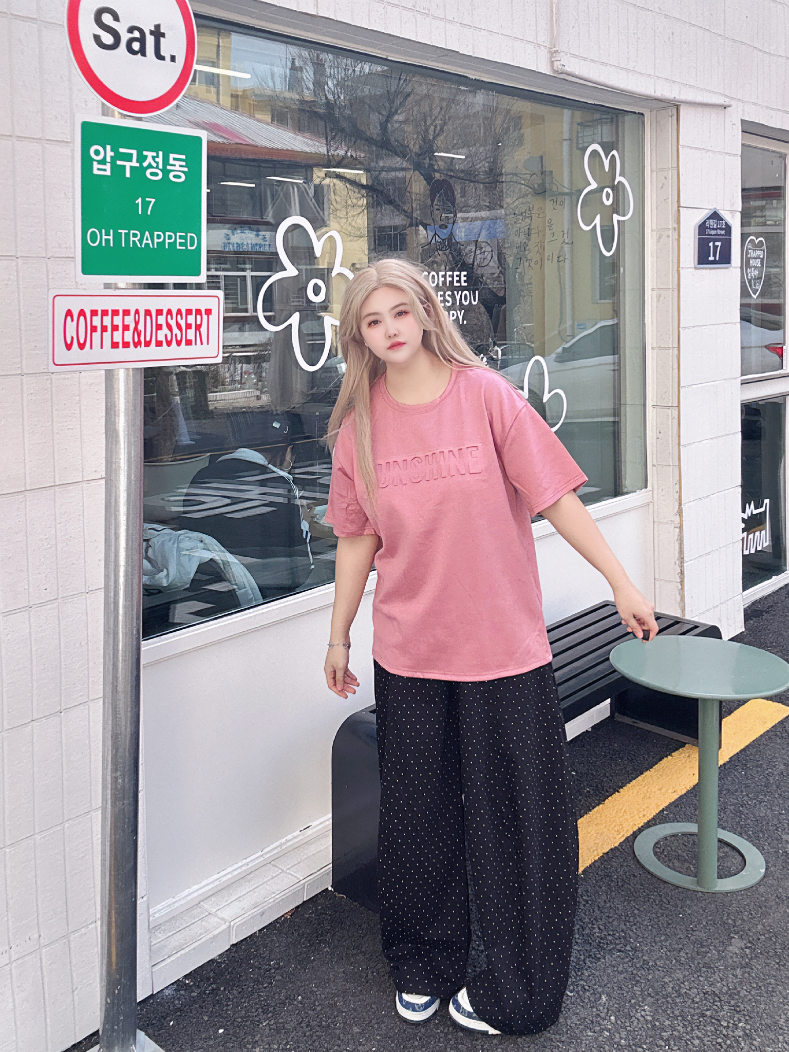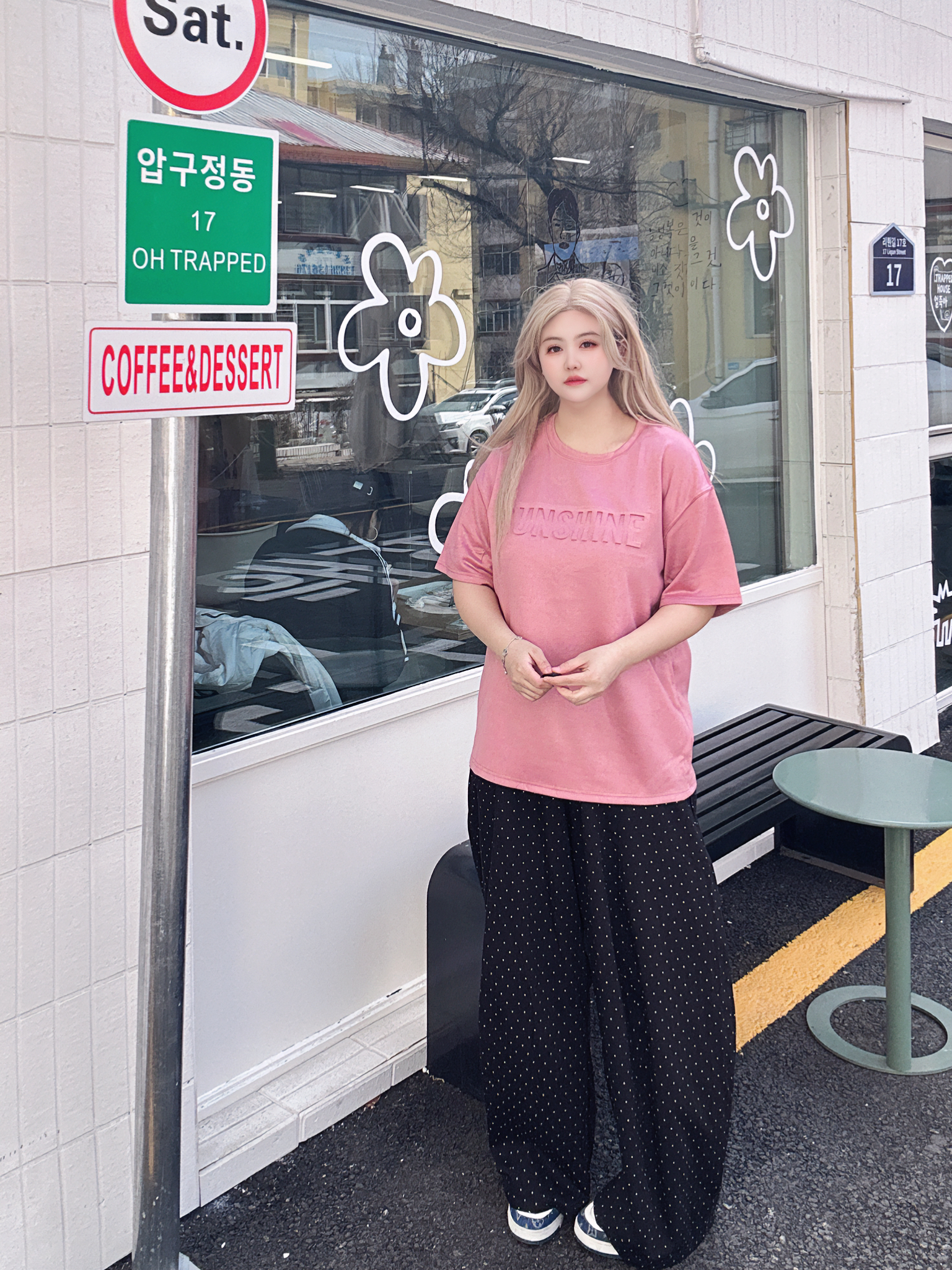 好喜欢我的粉色短袖啊! 配色也太亮眼了,一整个抓人眼球! 搭牛仔裤工装裤休闲裤都OK!! 春夏好难拒绝粉色下~ 上身好减龄~ 而旦宽宽松松的版型又很藏肉肉~不仅很好搭上身也不会显黑! 170/120/