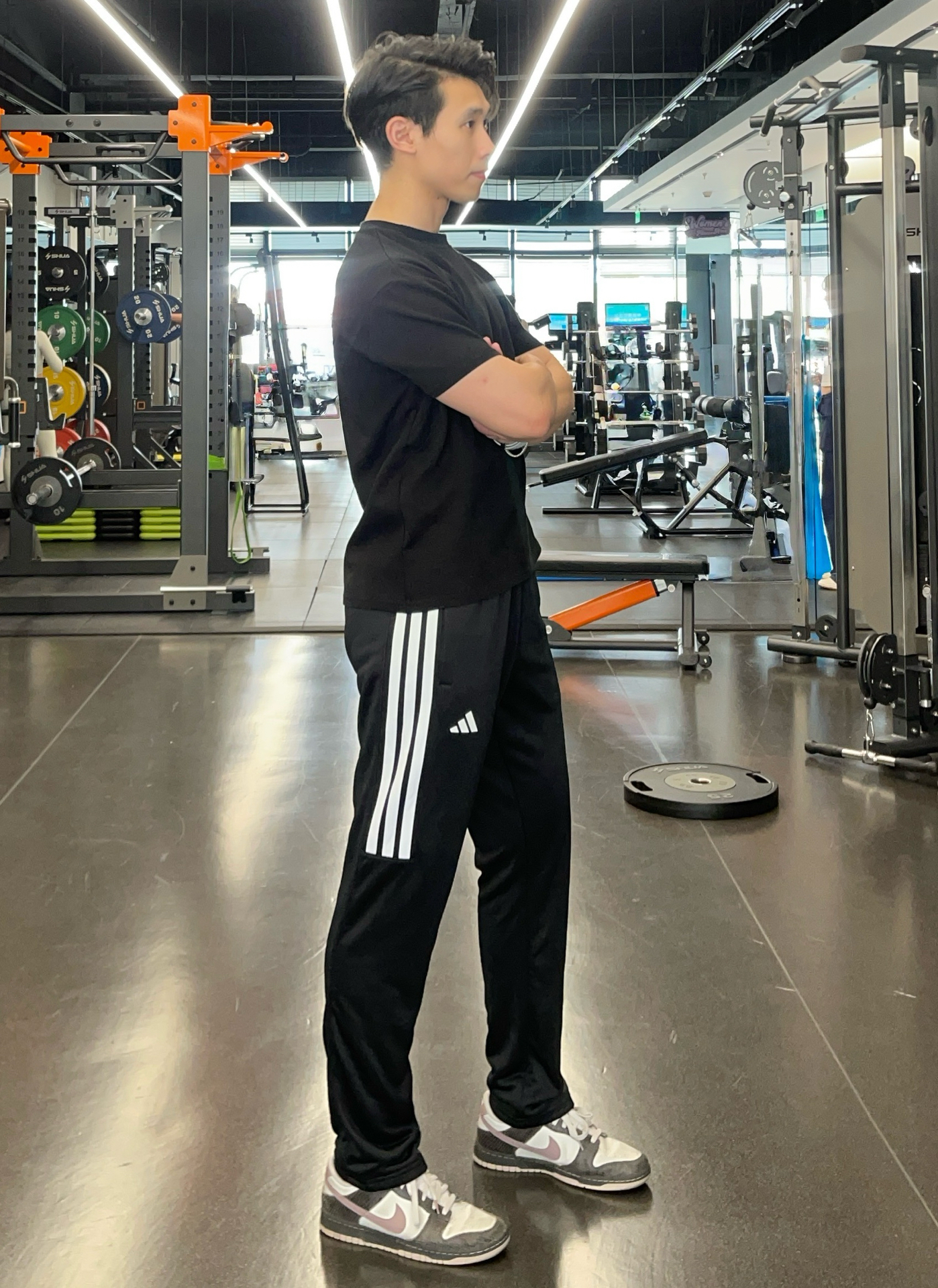 健身穿搭就要舒舒服服 今天上升的是阿迪达斯条纹长裤 经典的款式三条杠永远不会过时 上身柔软舒适, 穿搭日常搭配休闲鞋或者运动板鞋都是不错的选择 尺码正好,裤脚也是直筒版型,摆脱精神小伙小脚裤形象 身高 180|体重 76|鞋码 43 👕:运动长袖 👖: 运动长裤 👟:耐克dunk