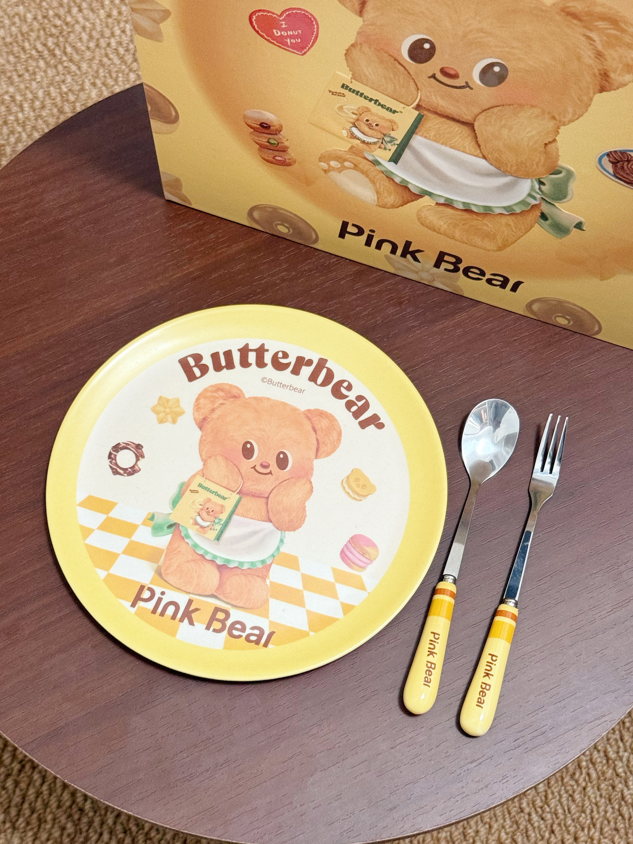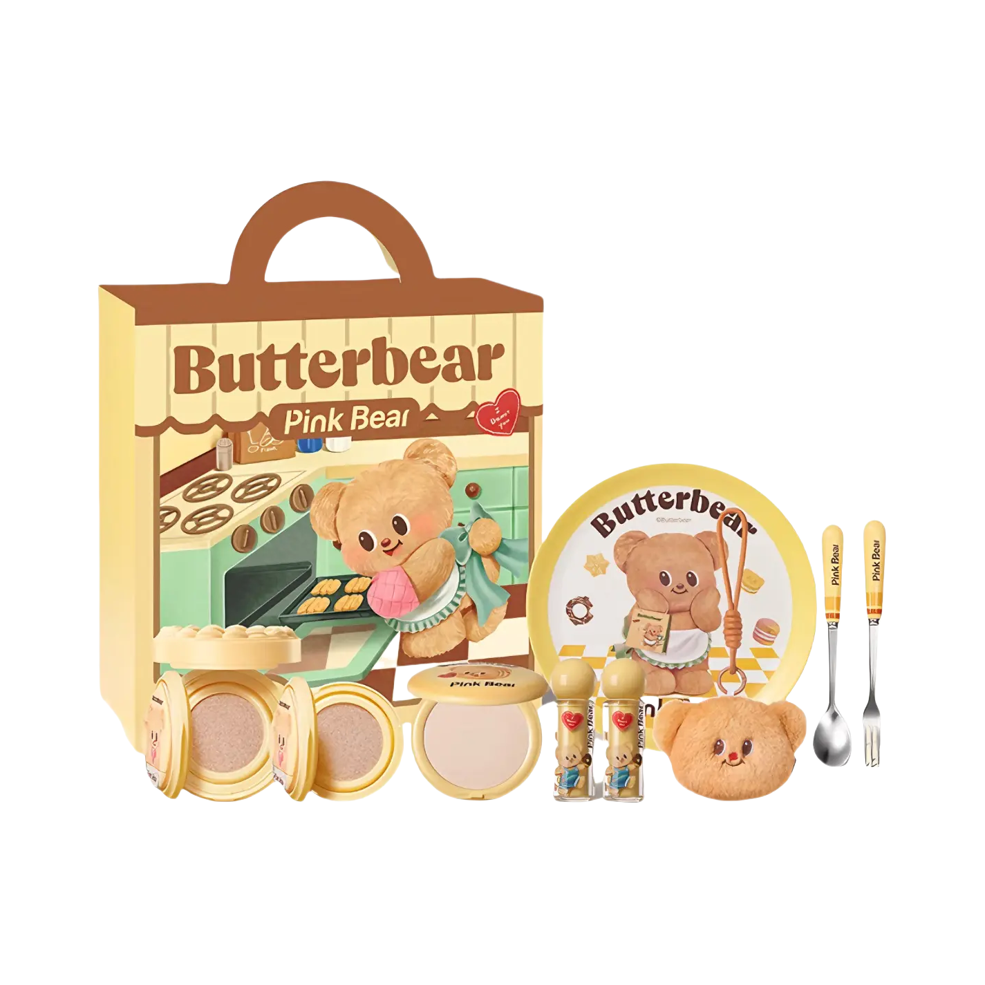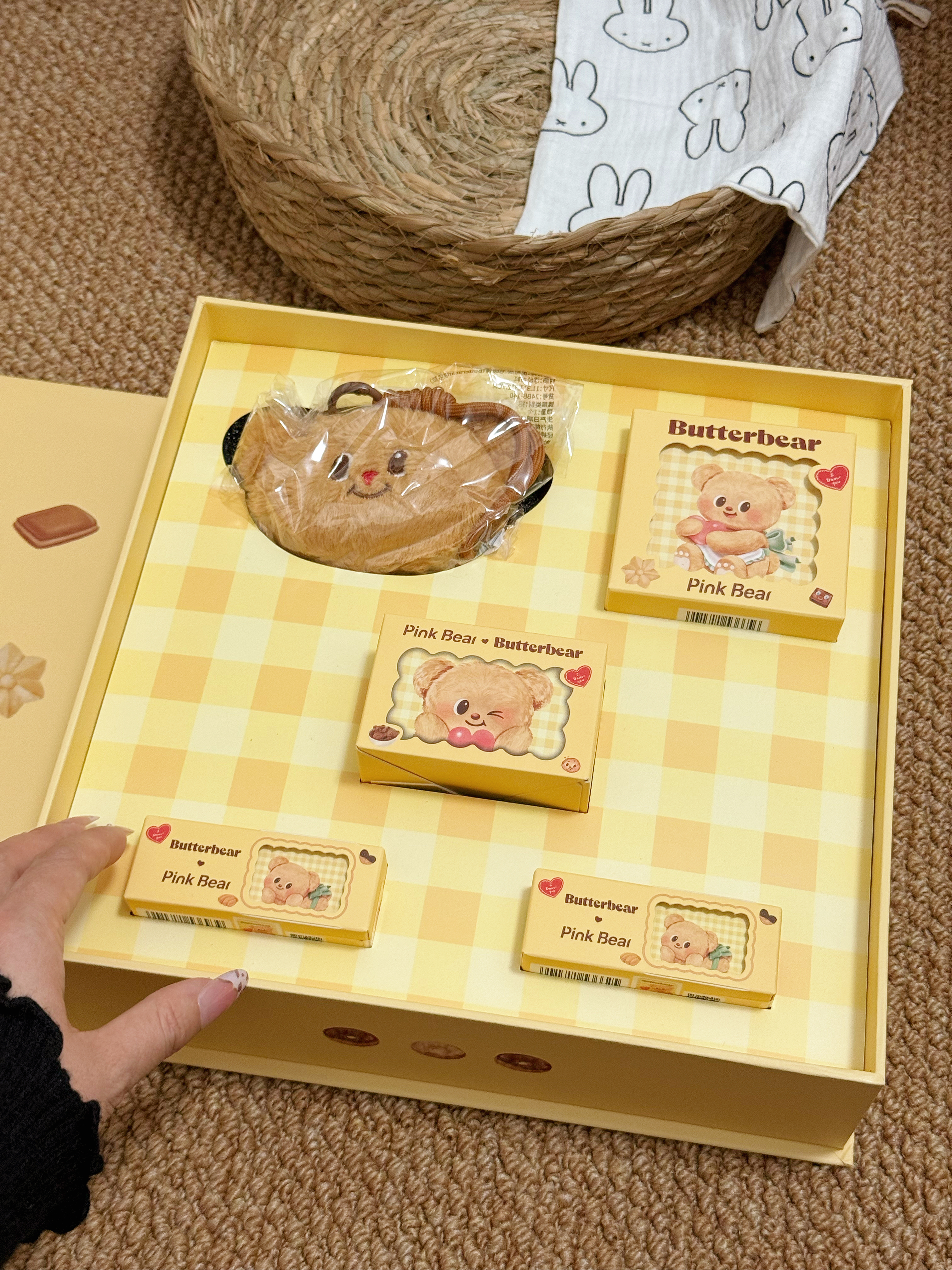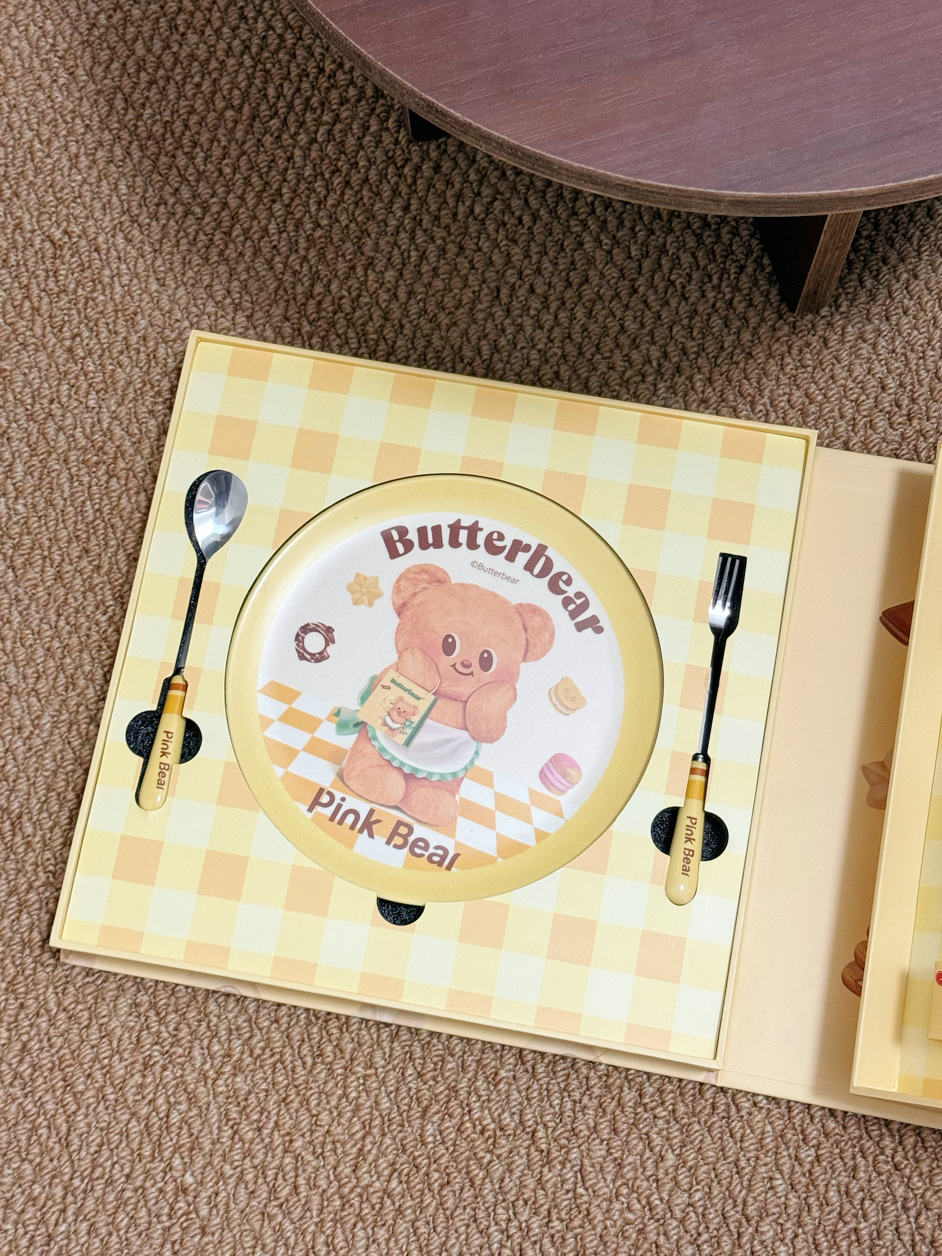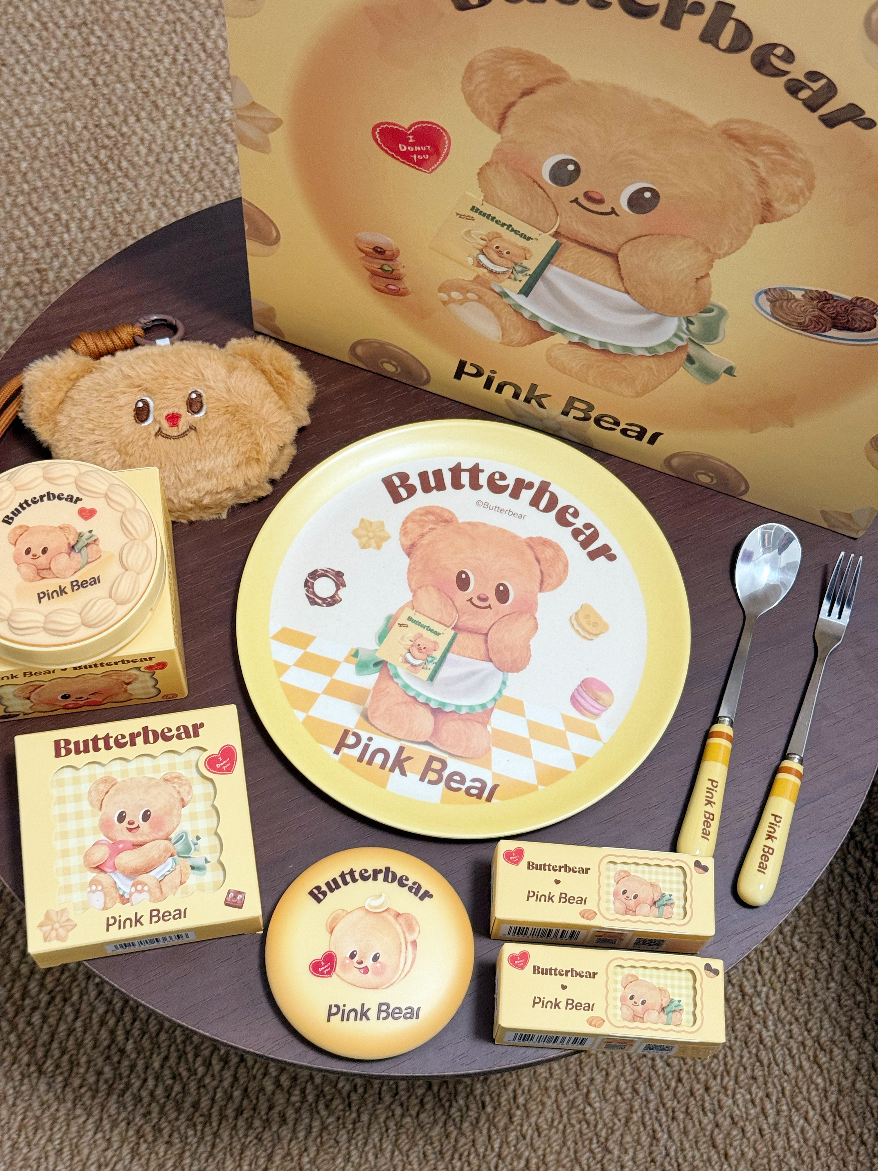 哇喔 居然和黄油小熊联名了耶 可可爱爱的包装萌化了 里面还配了同款餐盘和餐勺 是个底妆礼盒呦 平时化妆的话底妆用它就可以搞定啦 礼盒包装 当礼物也敲适合哒