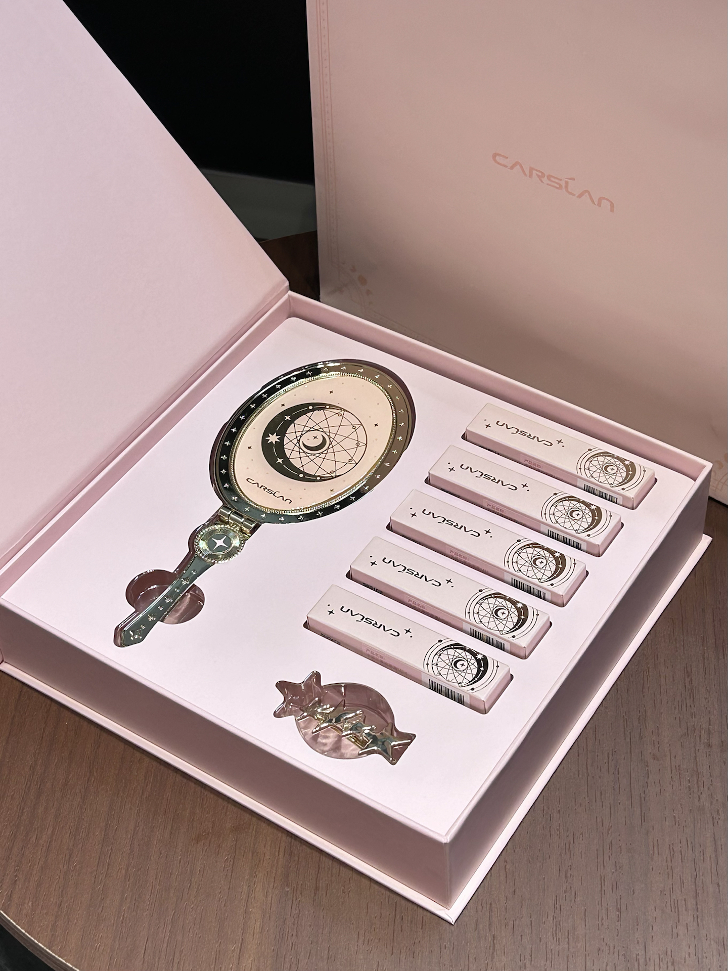 卡姿兰你真的美到我啦 介个魔法雾限定口礼盒好讨女孩欢心 粉粉的星月设计好有少女心 里面有五支口红,还有手持镜和发夹 口红质地还蛮好推开的 显色度也不错。 不同色号覆盖日常、通勤、约会各种场景 镜子质感好好,出门补妆很方便 整套拿来送礼我觉得女孩子会敲心动呢 礼盒