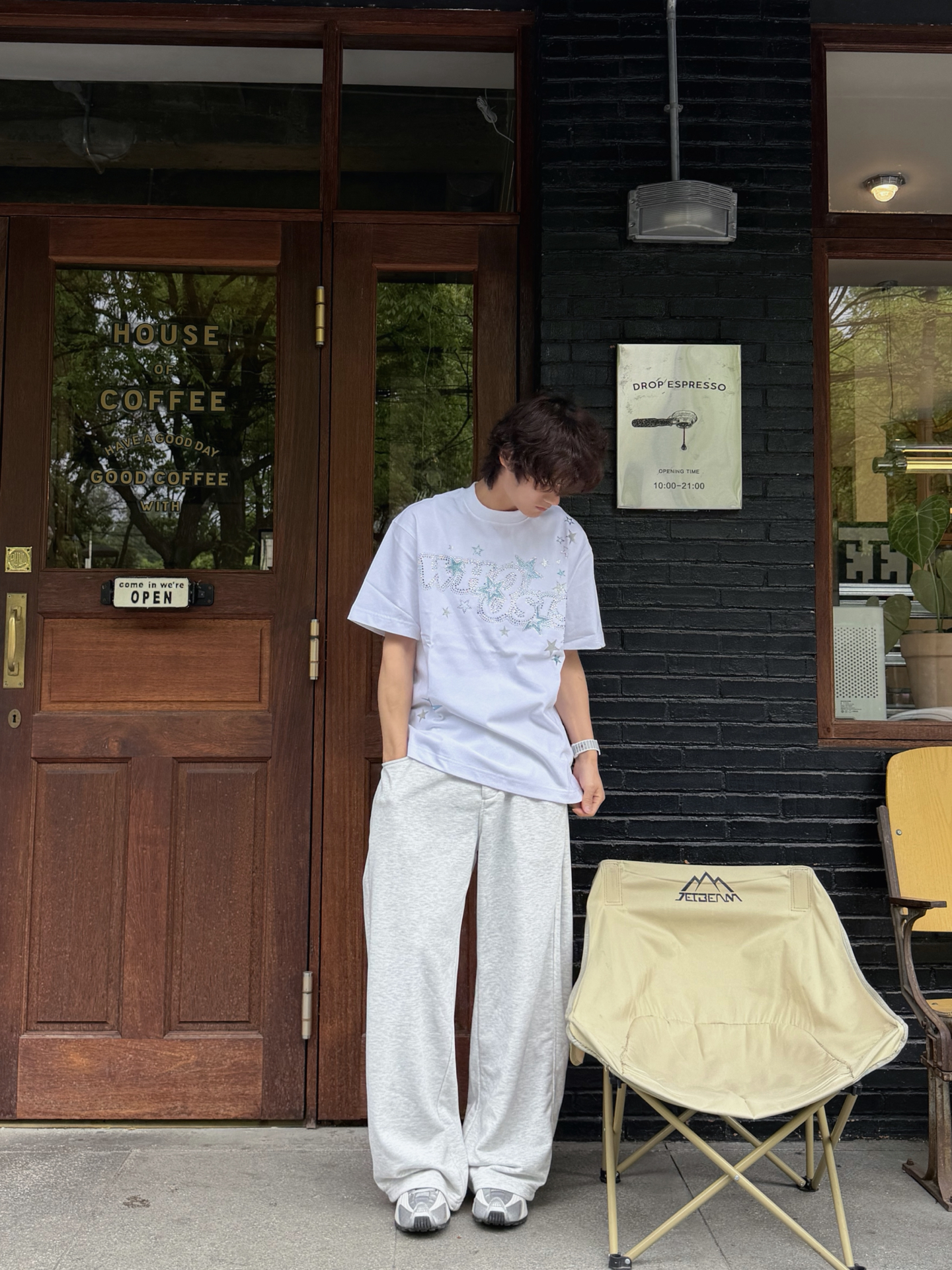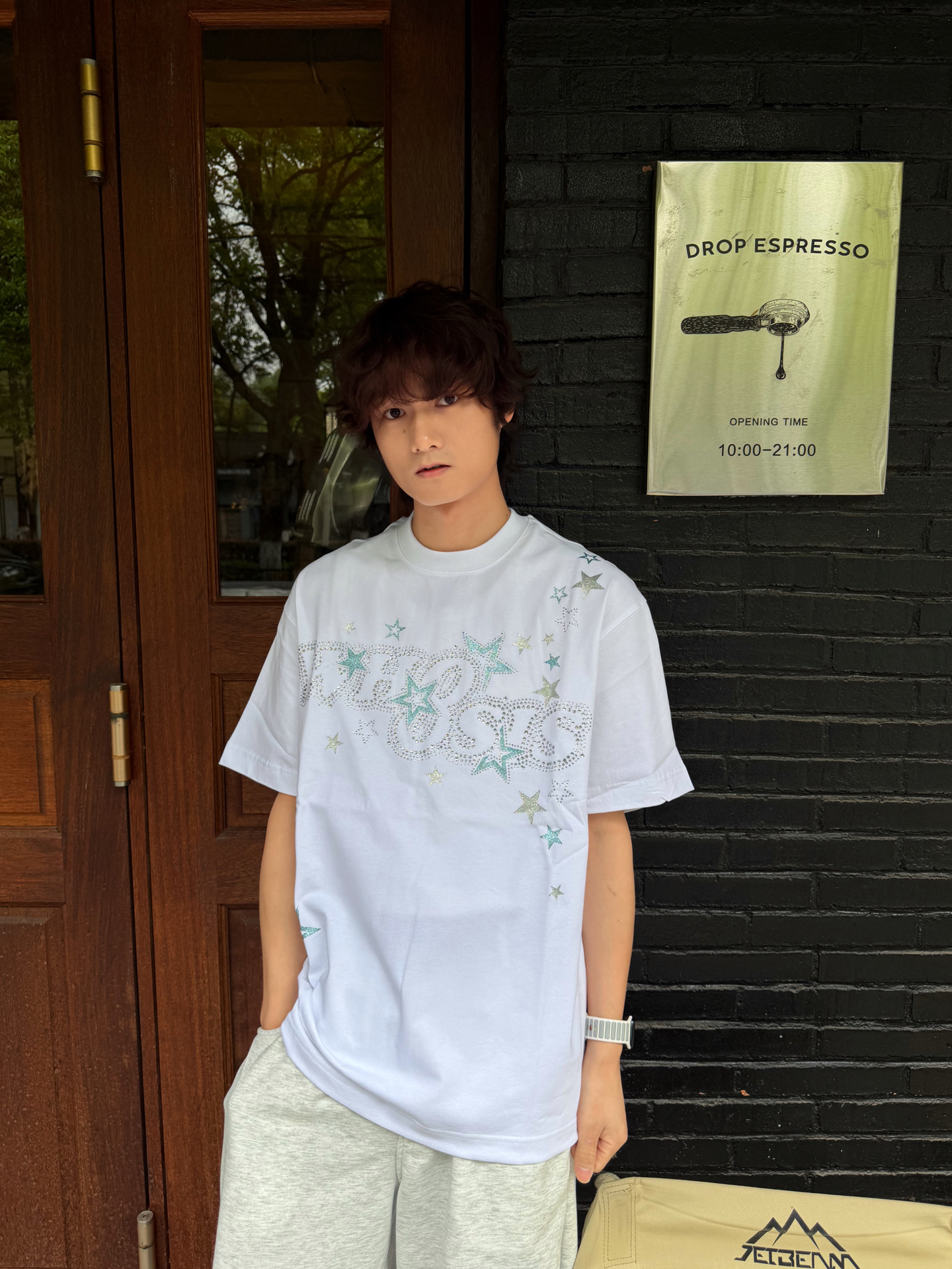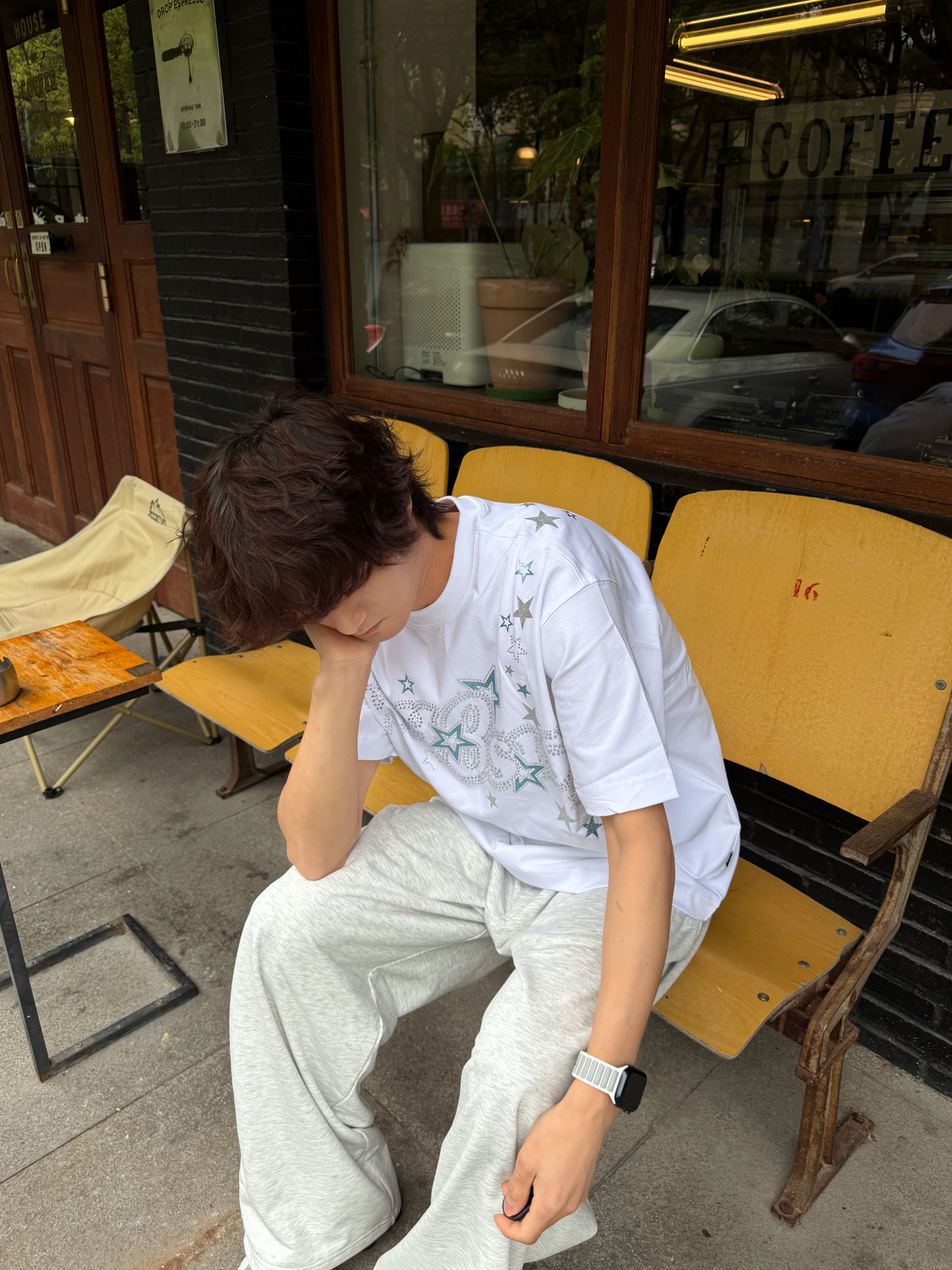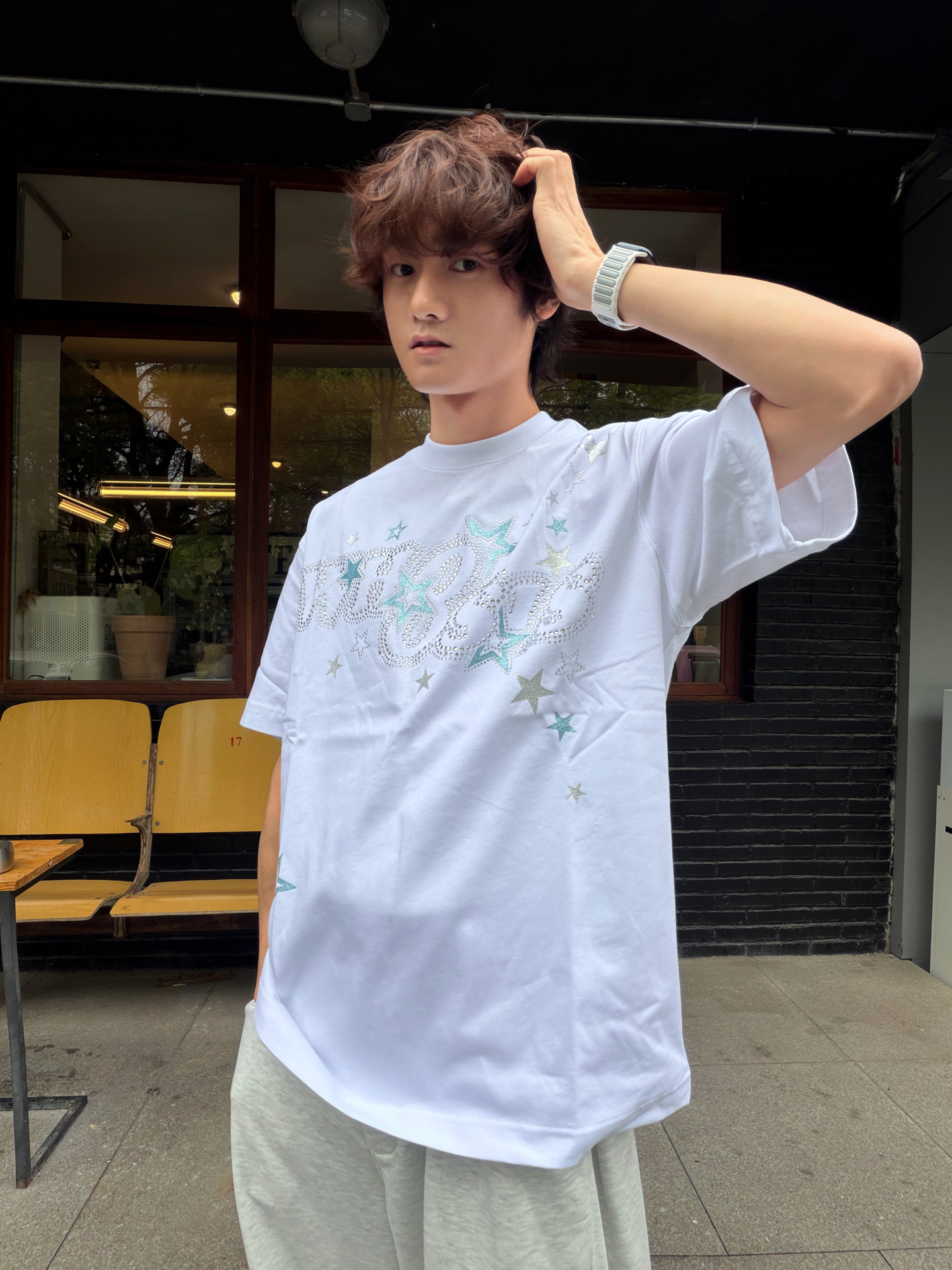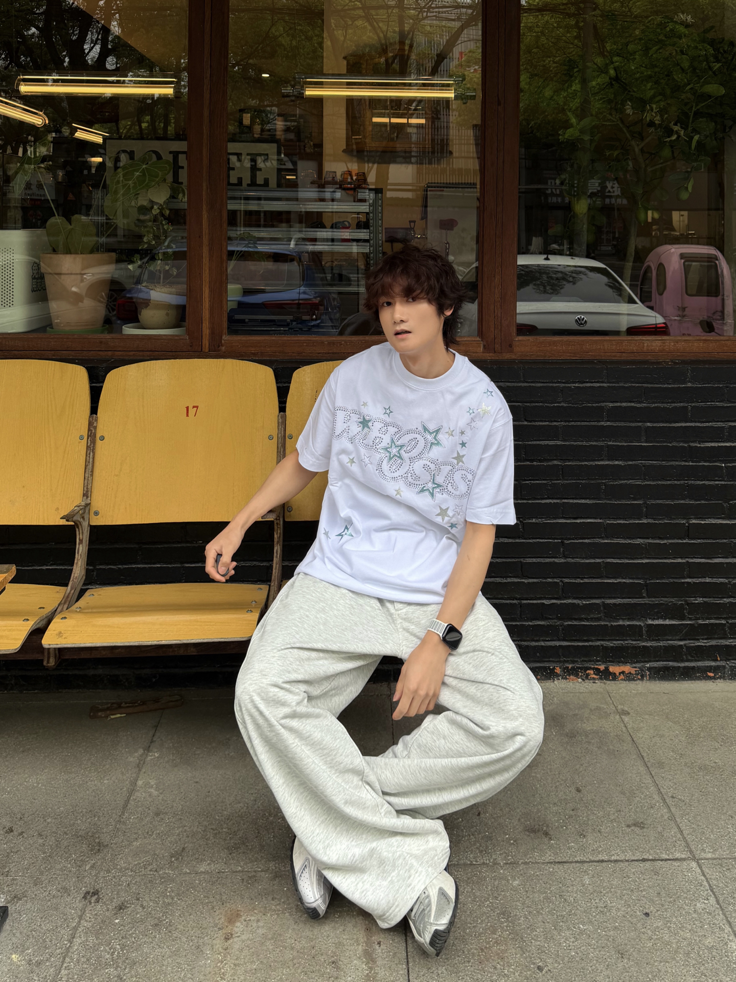 干净色系真的太治愈了 今天穿的是 闪闪惹人爱✌️ 重磅白T软糯亲肤,上身质感在线 星星烫钻小设计,低调精致不单调 搭配浅灰垂感阔腿卫裤 松弛慵懒氛围感直接拉满 不费力的帅气,日常通勤逛街都适配 舒服又耐看,男生春夏穿搭标准答案✨ @WHOOSIS