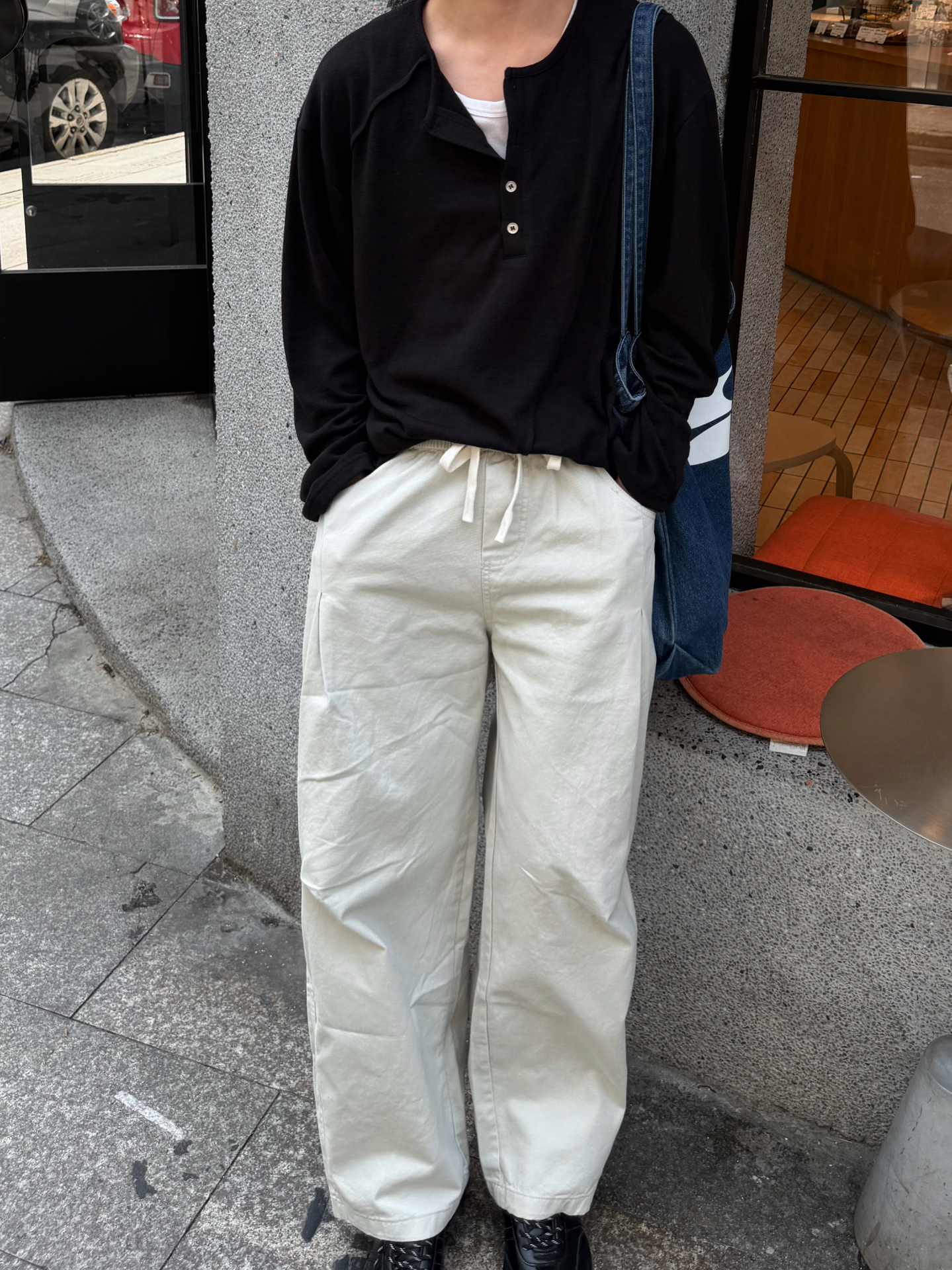悟了!男生穿搭越简单越高级 一身黑上衣+米白裤,经典不出错配色 亨利领小设计弱化单调感, 面料软糯贴身,上身舒服又显瘦 抽绳阔腿裤自由度超高, 百搭好看,搭配一些户外的衣服也不错 低饱和色系自带温柔清冷气质 日常通勤出游一套搞定,懒人穿搭福音🍂 不用费心搭配,随手穿都很有格调
