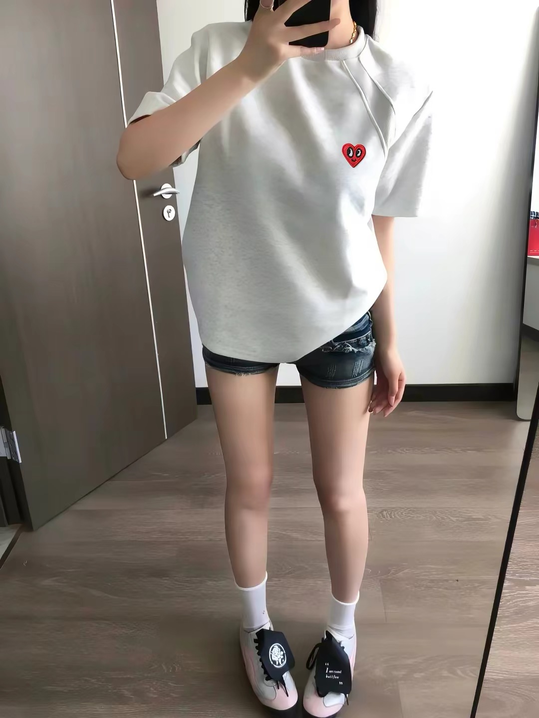 衣服的版型很不错~上身尊的很显瘦! 平时上学和逛街都很合适😍 松弛感拉满! 背后的图案简约又高级💕 拍照尊滴很出片