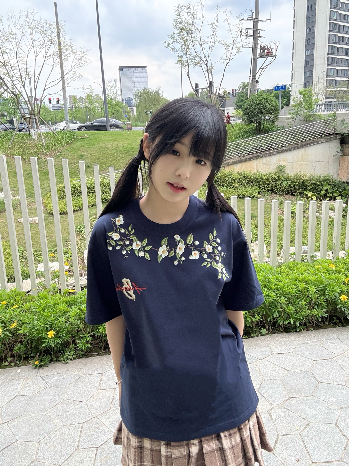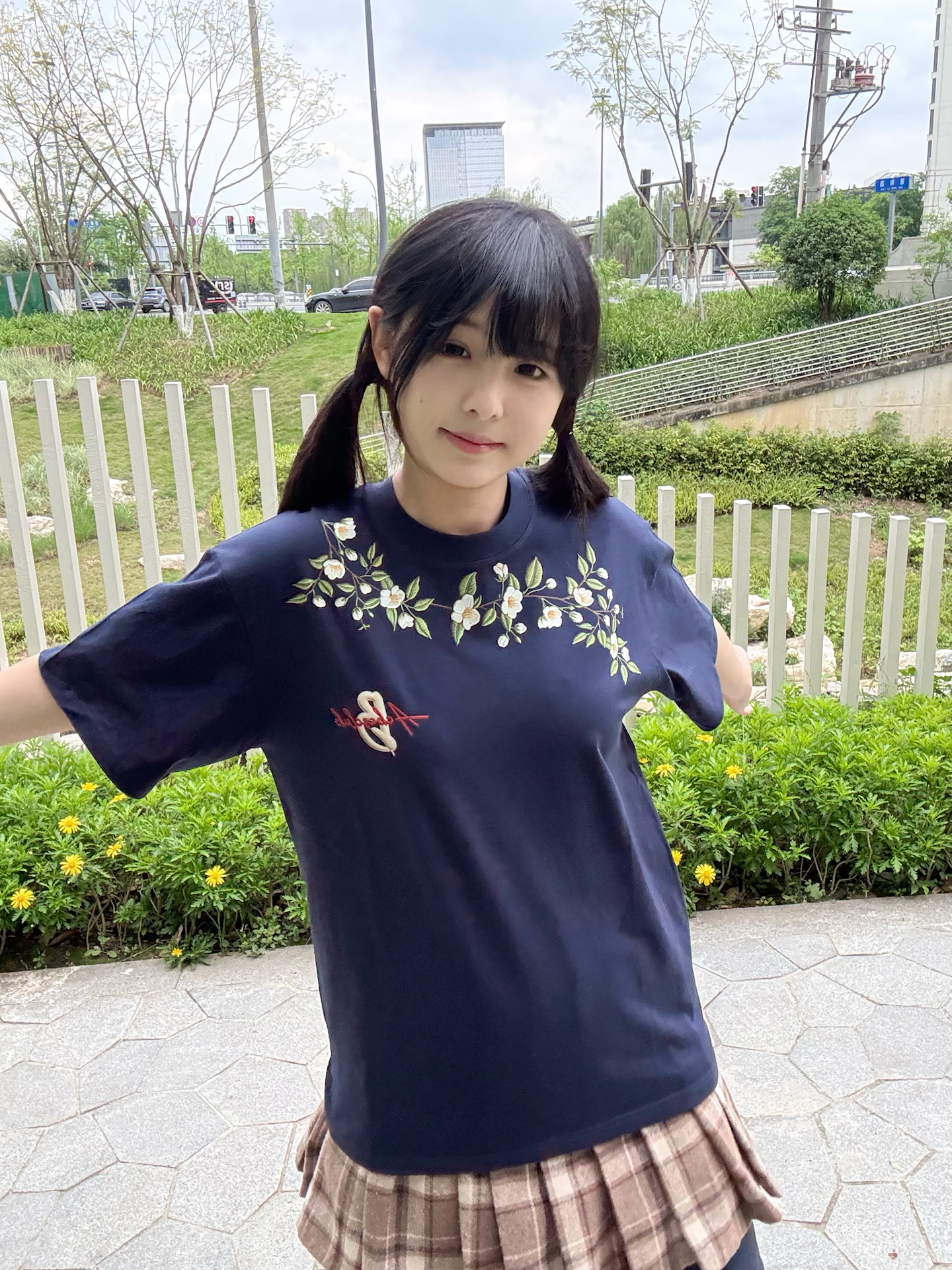 耐看百搭的藏青色调调上身好显白!! 仿真刺绣花朵看起来很细腻 版型日常合身一点都不挑身材💪 日常通勤 出门闲逛都超好搭配 穿搭松弛感直接拉满啦~