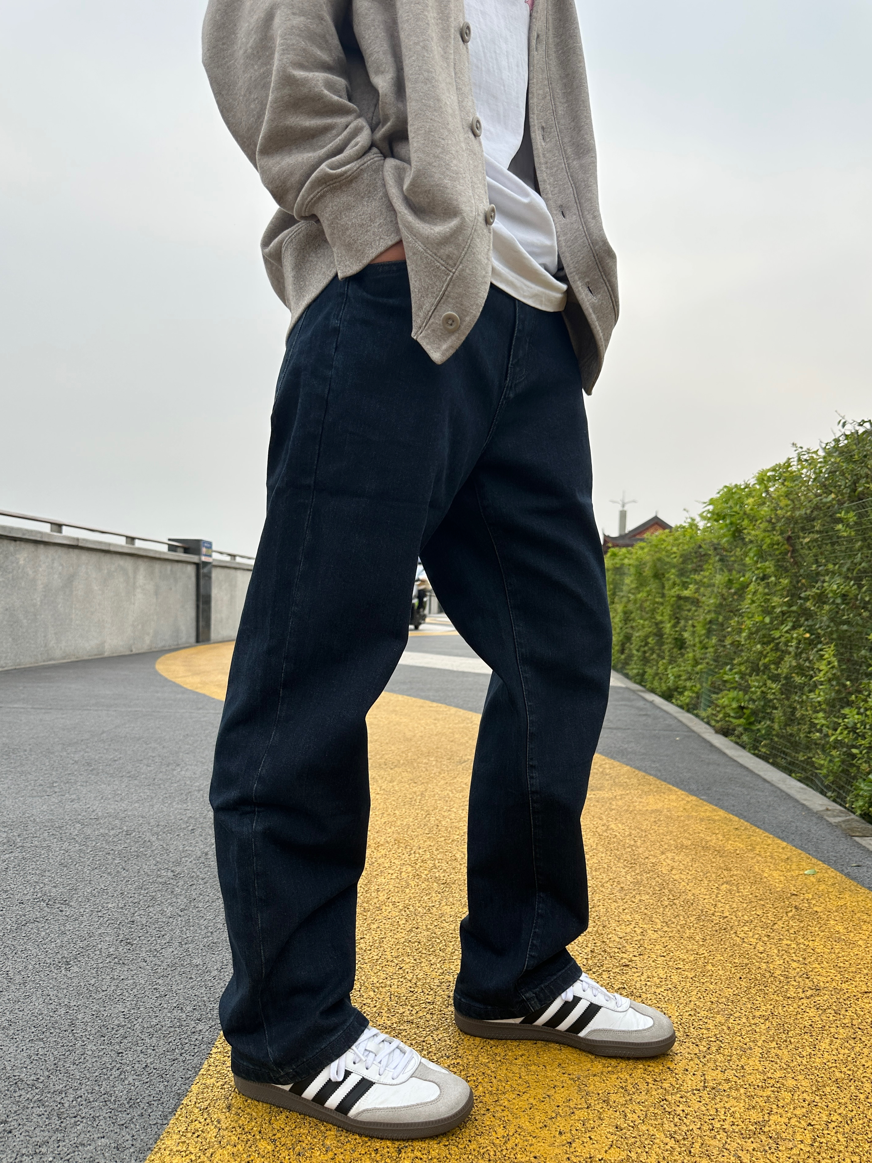上身就是那种很舒服的松弛感,直筒阔腿的版型对腿型超友好,腿粗腿不直都能悄悄藏住,秒变顺直大长腿的既视感🦵 面料软乎乎的很亲肤,垂感也刚刚好,不会软塌塌贴腿,日常穿完全没有束缚感,春夏穿也不闷汗🌿 深牛仔蓝的颜色巨耐看,不挑搭配,搭白T、开衫、卫衣都很有少年感,通勤、出街、约会穿都合适~ 博主身高175/体重60kg,穿的是30码,喜欢的宝子们可以来看看呀👀~