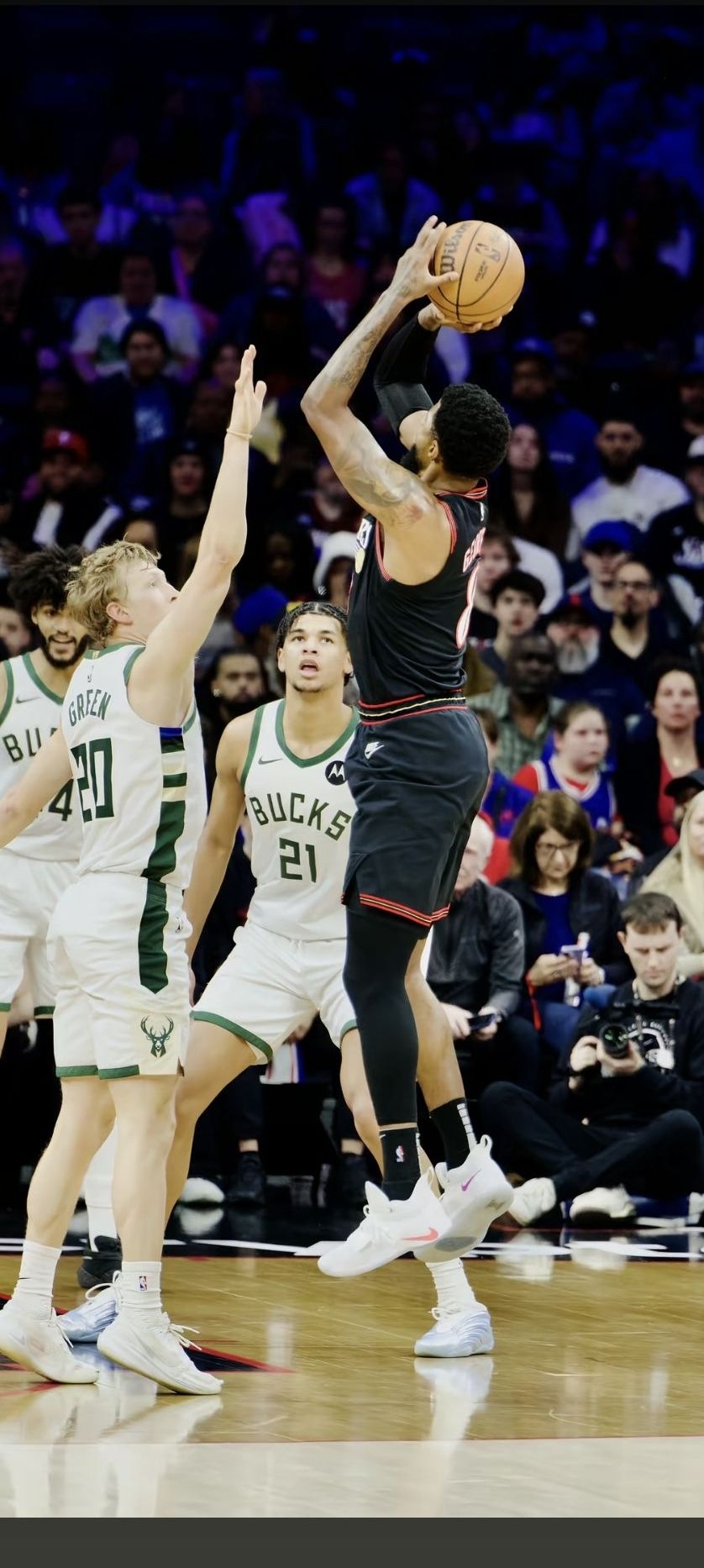 前掌:搭载 10mm加厚扇形Zoom Air气垫,去除了中间的隔层,脚感非常软弹直接。启动爆发时蹬地反馈清晰,属于“弹射起步”级别的体验,非常适合突破党。 后掌:纯Phylon泡棉,偏偏硬。落地时震感较明显,不适合大体重(>80kg)球员抢篮板,更适合轻体重玩家。