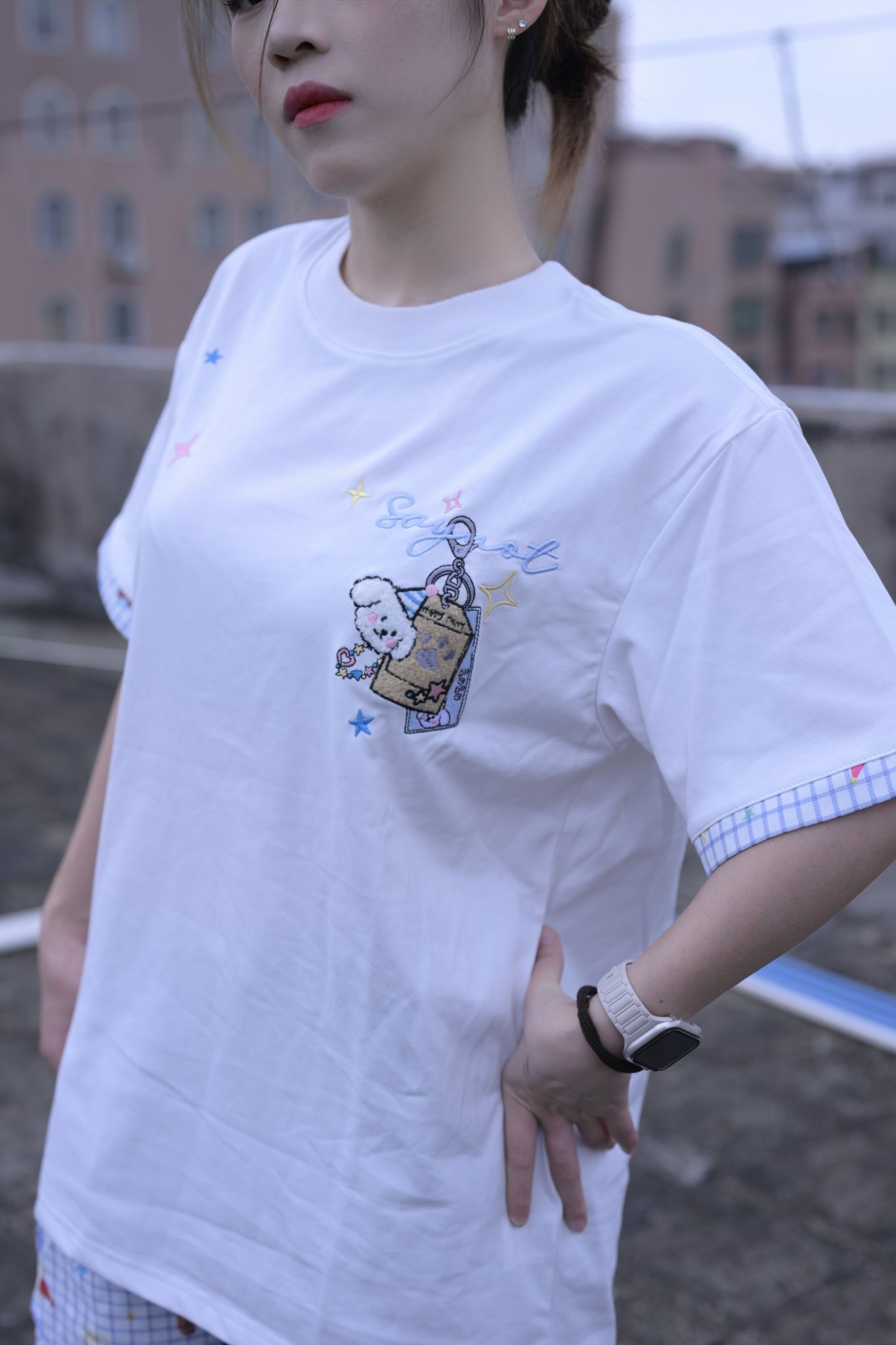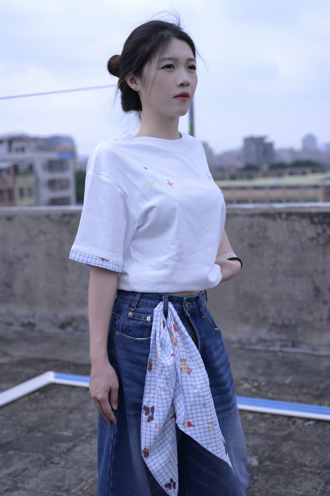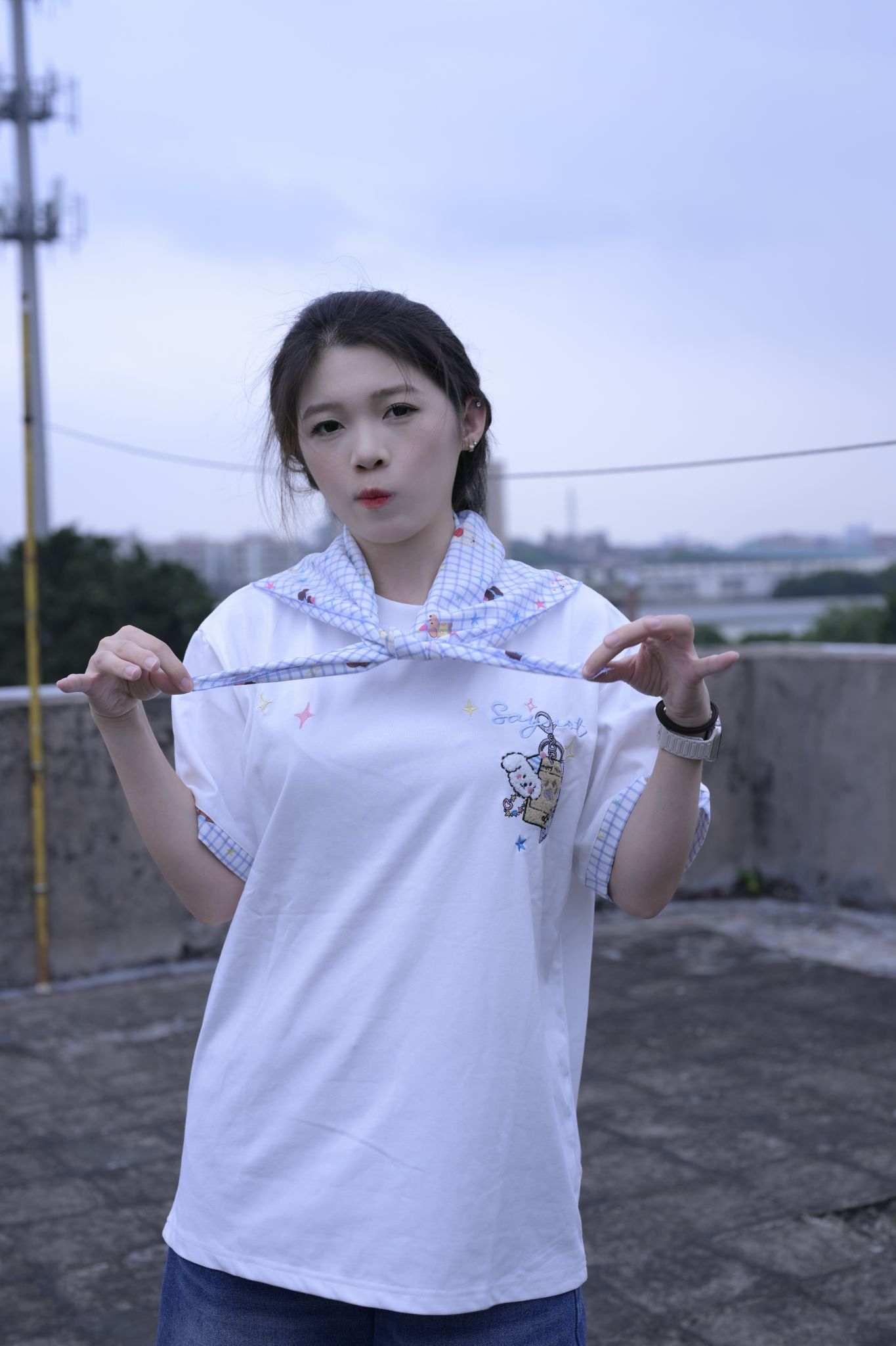 夏日穿搭公式:白T + 牛仔 = 永远的松弛感☁️ 这件海军风拼接白T真的很绝,格纹领的设计打破了基础款的单调,既保留了白T的干净清爽,又多了几分俏皮灵动。 宽松的版型不挑身材,日常通勤或休闲出街都很合适,柔软的面料亲肤透气,夏天穿毫无负担。 简单的一件单品,就能轻松穿出属于自己的风格,这大概就是基础款的魅力吧~