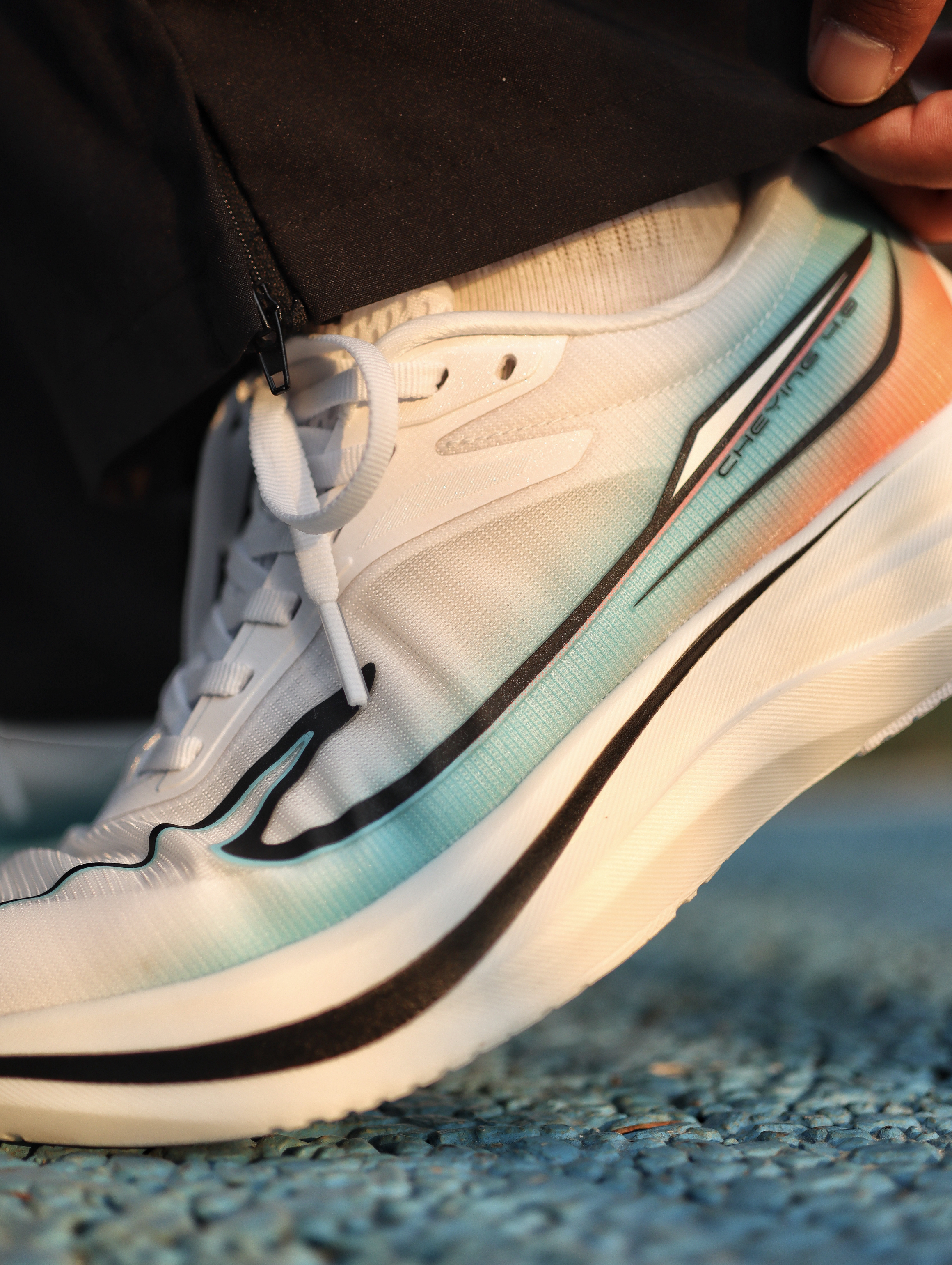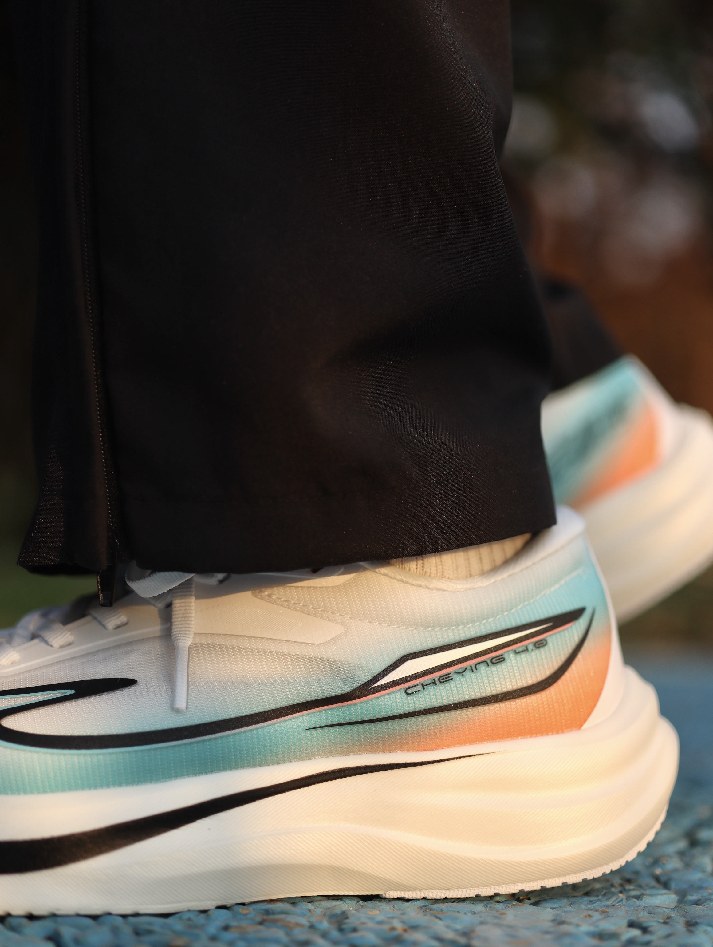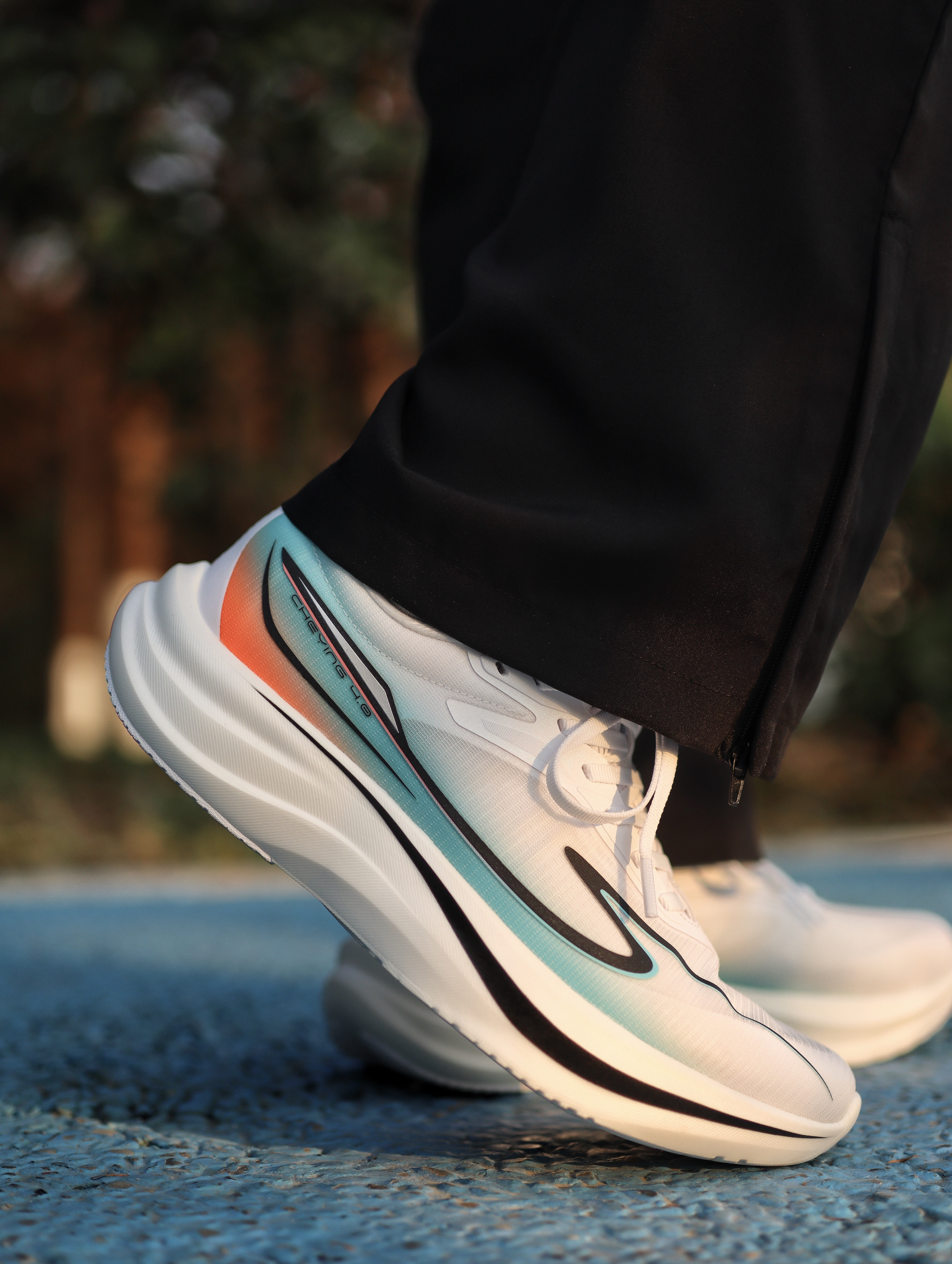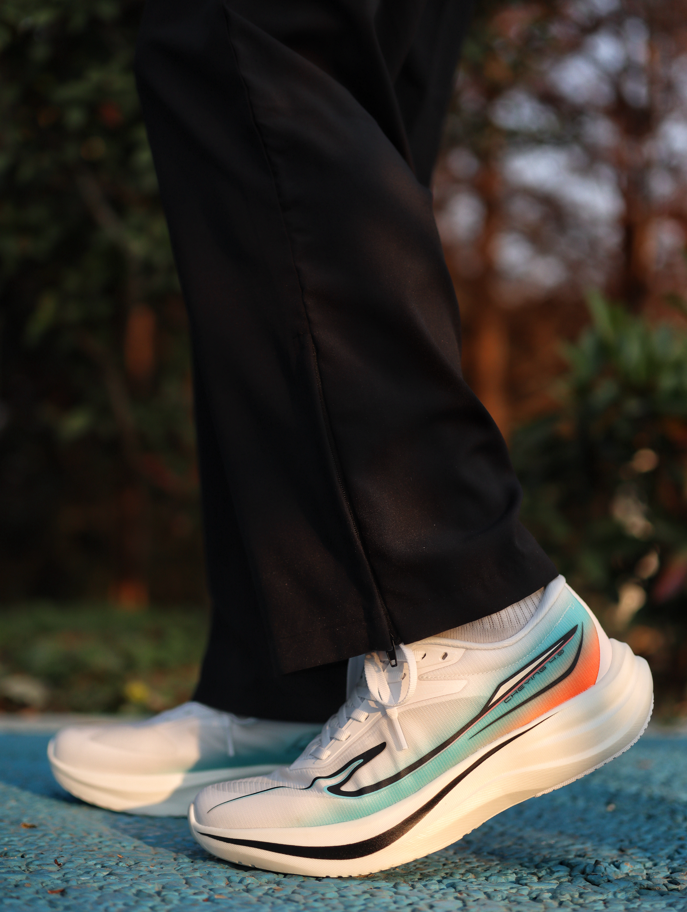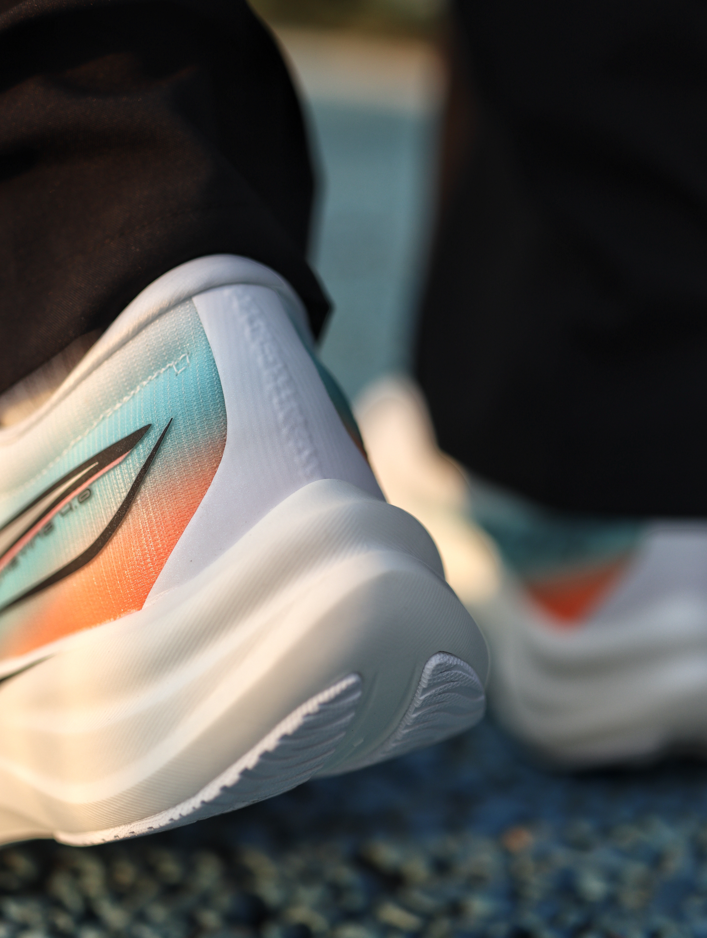 不少朋友跟我一样,第一眼看到这双挚影4的时候以为是一双很激进的跑鞋,直到我今天上脚才发现它是一双日常通勤兼顾慢跑的鞋子。 我是正常尺码选的,鞋楦偏宽,穿起来大小也刚好,脚感属于偏软弹,日常通勤上班还是蛮舒服的,但是鞋子透气性很好,需要穿厚袜子,不然还是有点冻脚😂,像我145斤,日常跑步缓震还是可以,没有震脑现象。